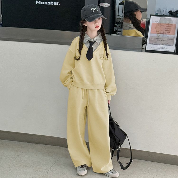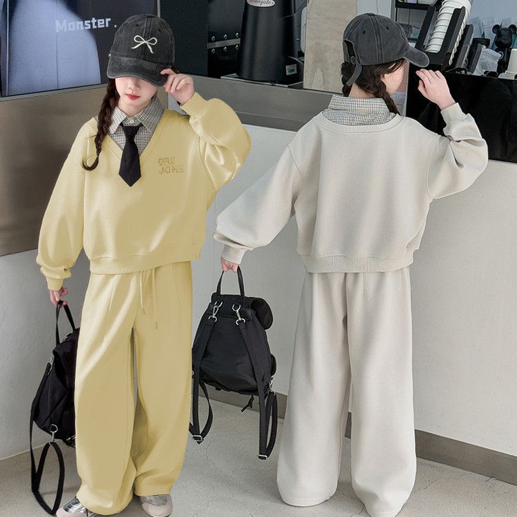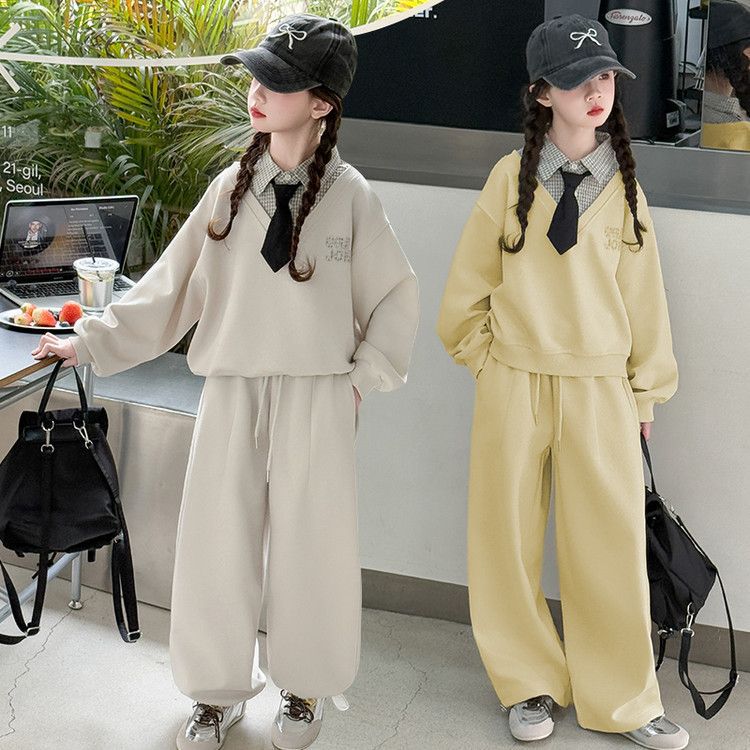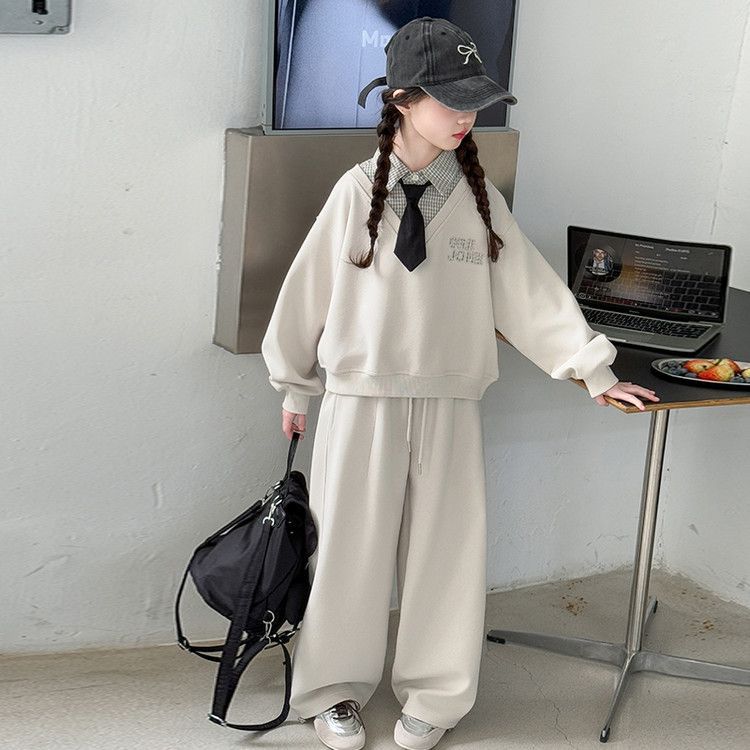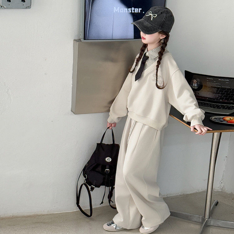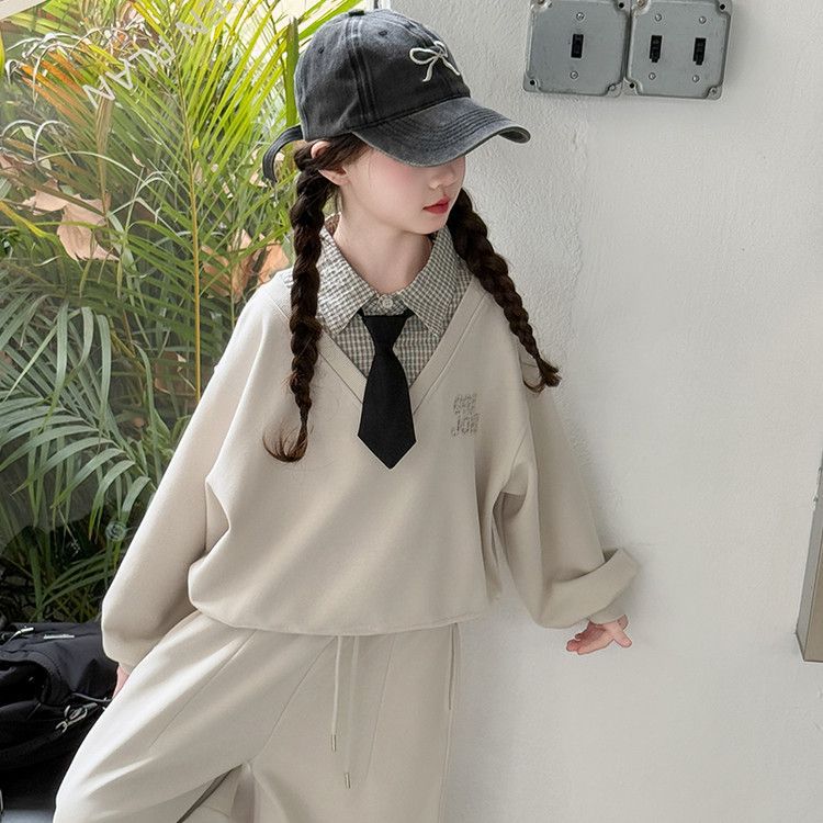 소녀 스웨트 셔츠 세트 봄과 가을 2025 새로운 서양식 어린이 운동복 착용 소녀의 봄 원피스 투피스 세트스토어 가기