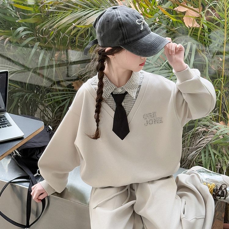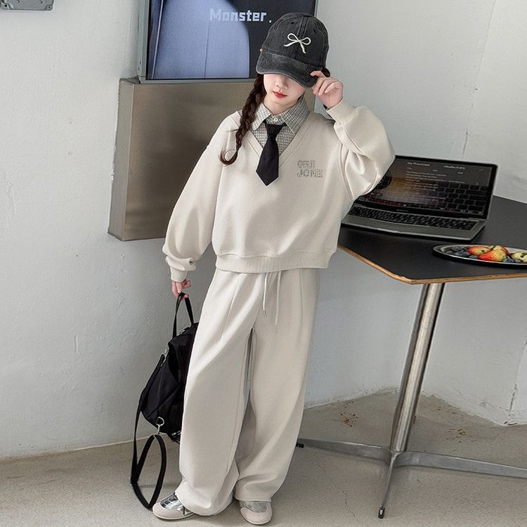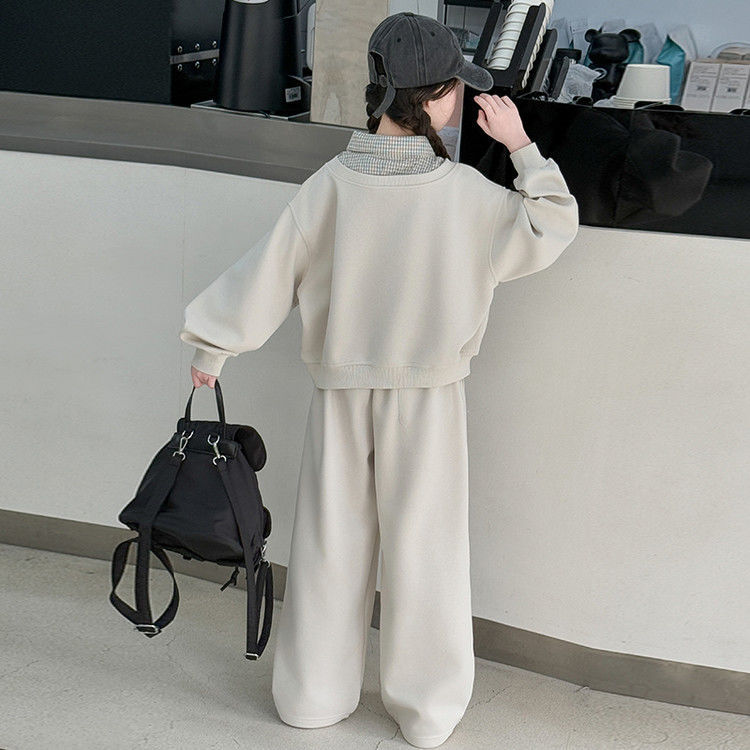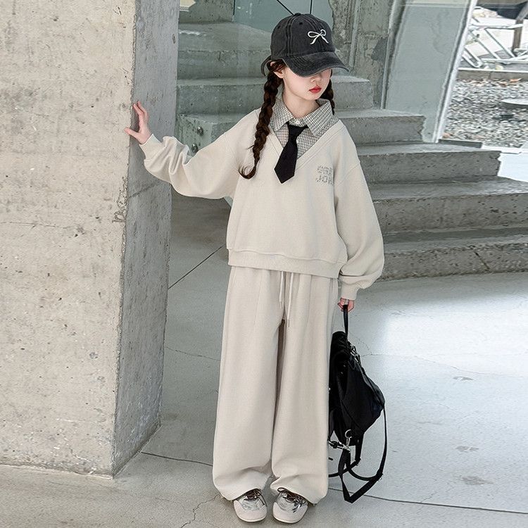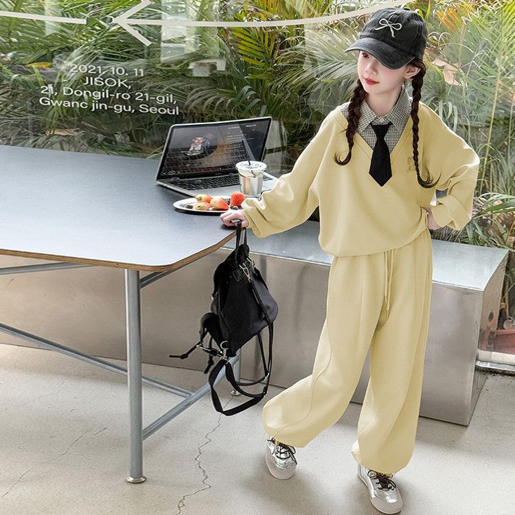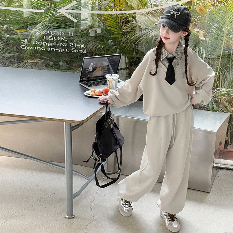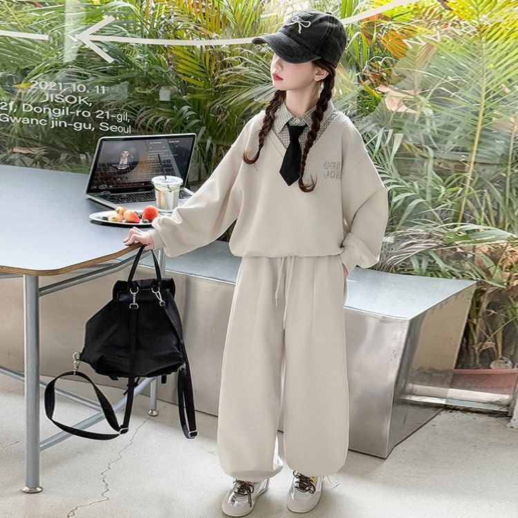 소녀 스웨트 셔츠 세트 봄과 가을 2025 새로운 서양식 어린이 운동복 착용 소녀의 봄 원피스 투피스 세트스토어 가기