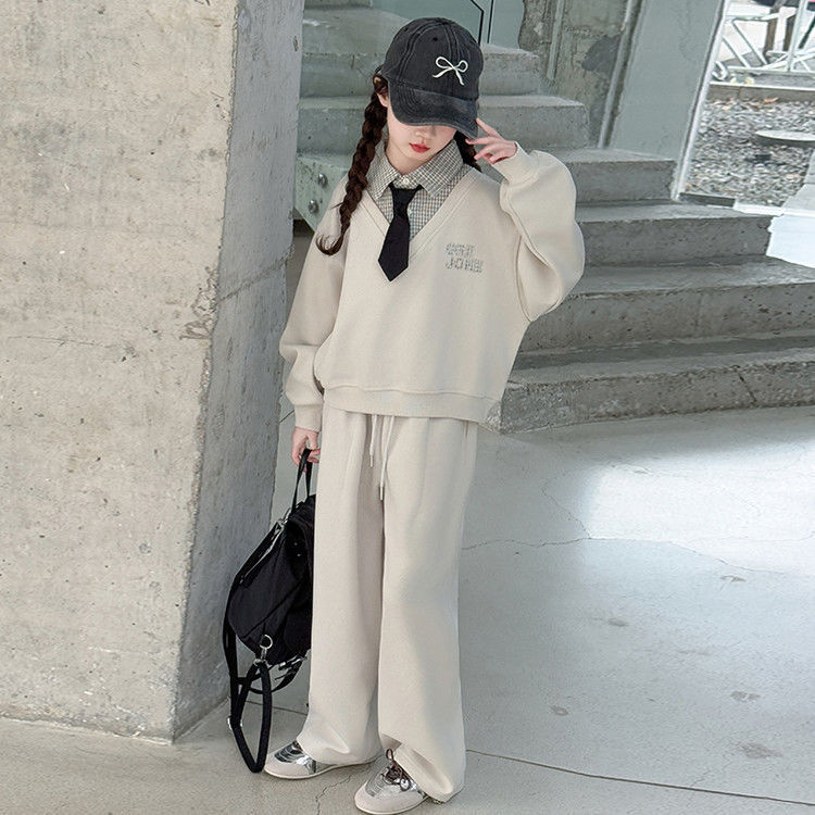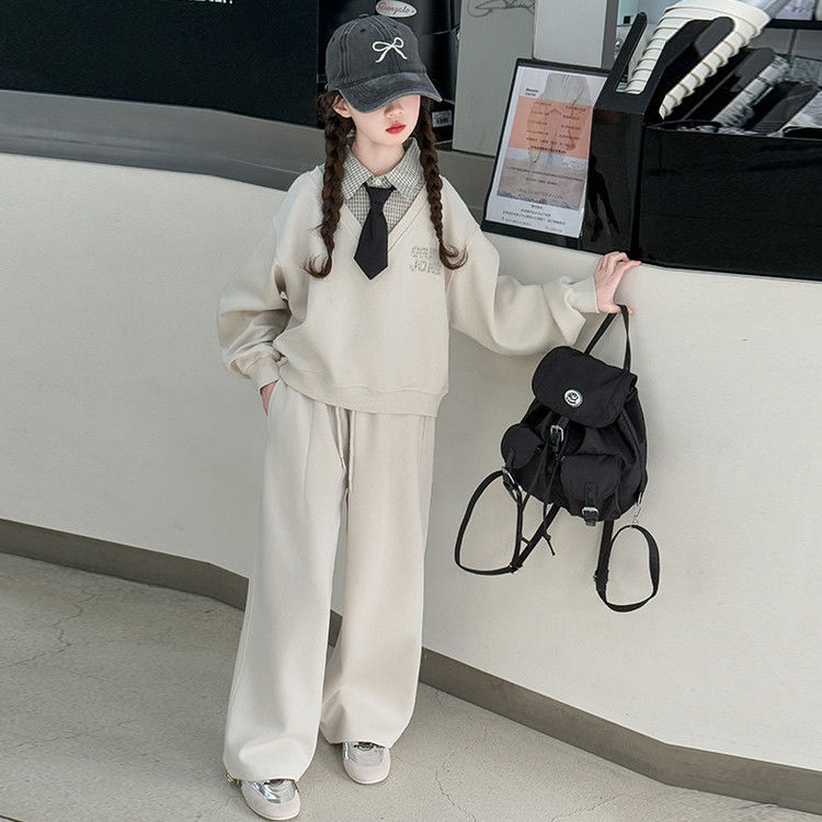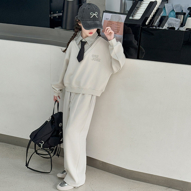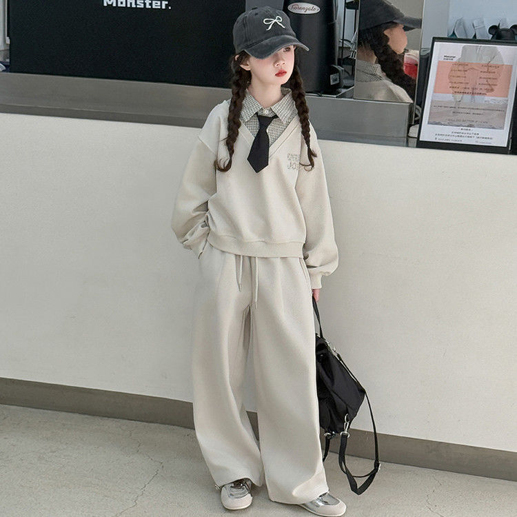 소녀 스웨트 셔츠 세트 봄과 가을 2025 새로운 서양식 어린이 운동복 착용 소녀의 봄 원피스 투피스 세트
