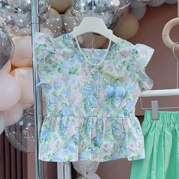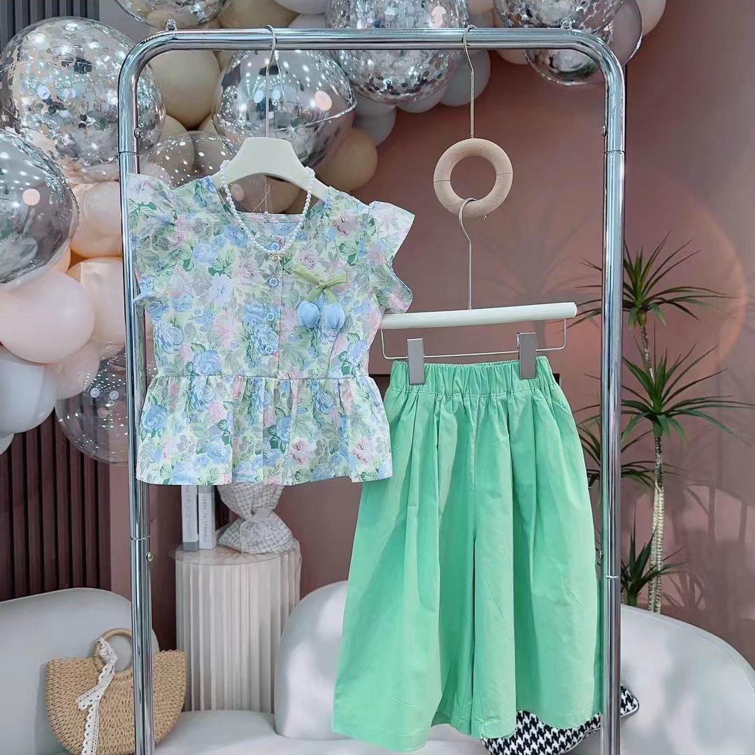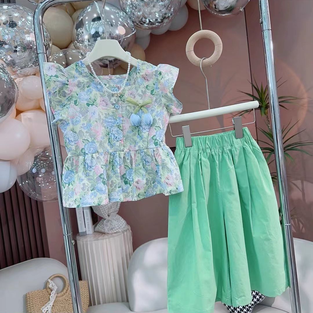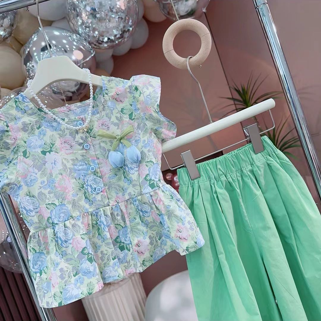 소녀 여름 원피스 세트 2024 새로운 서양식 어린이 여름 인터넷, 어린 소녀를위한 세련된 2 피스 민소매 세트 기념스토어 가기