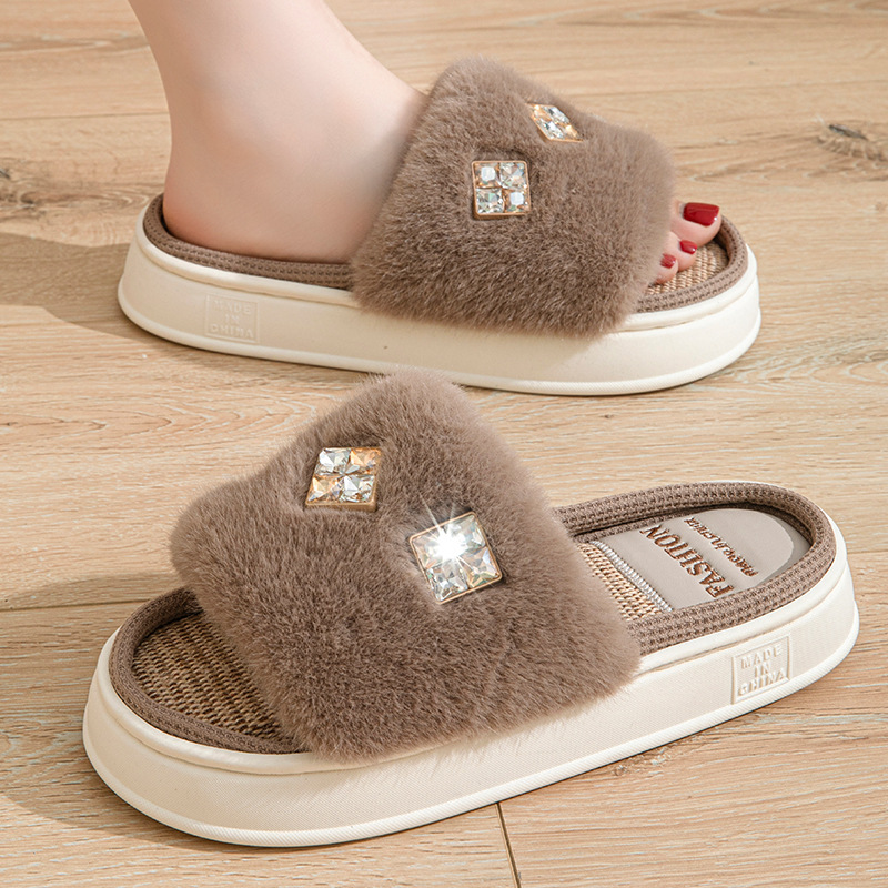 새로운 모조 다이아몬드 봄과 여름 새로운 단색 패션 울 플러시 외부 착용 홈 린넨 한국 여성의 4 시즌 드래그스토어 가기
