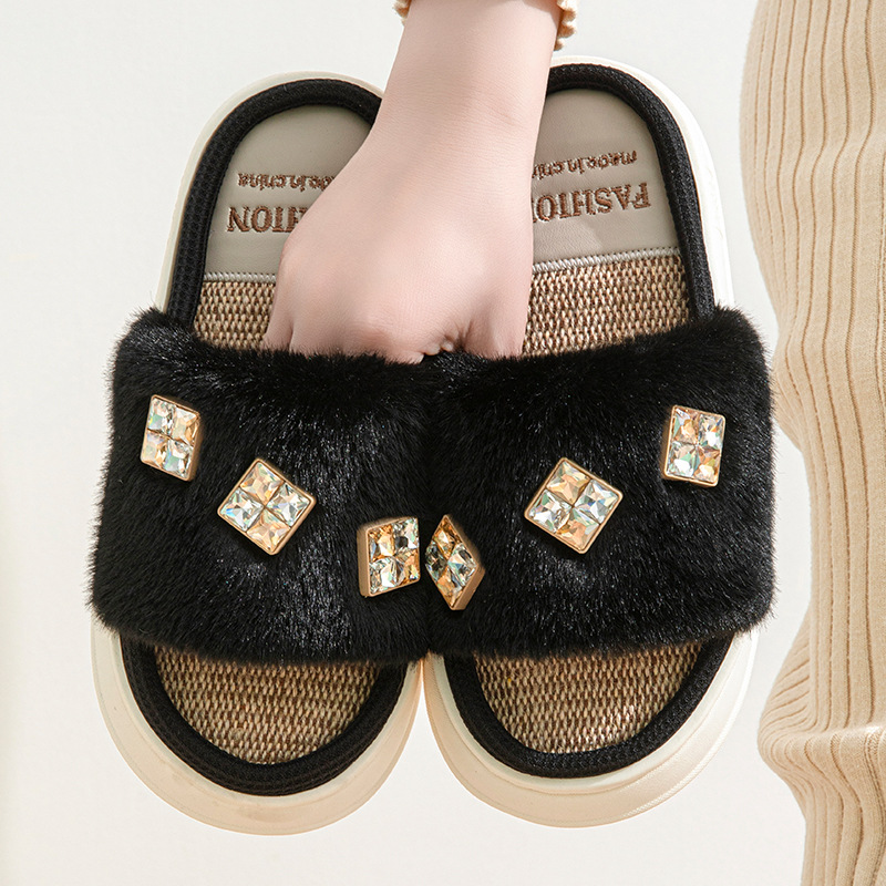 새로운 모조 다이아몬드 봄과 여름 새로운 단색 패션 울 플러시 외부 착용 홈 린넨 한국 여성의 4 시즌 드래그