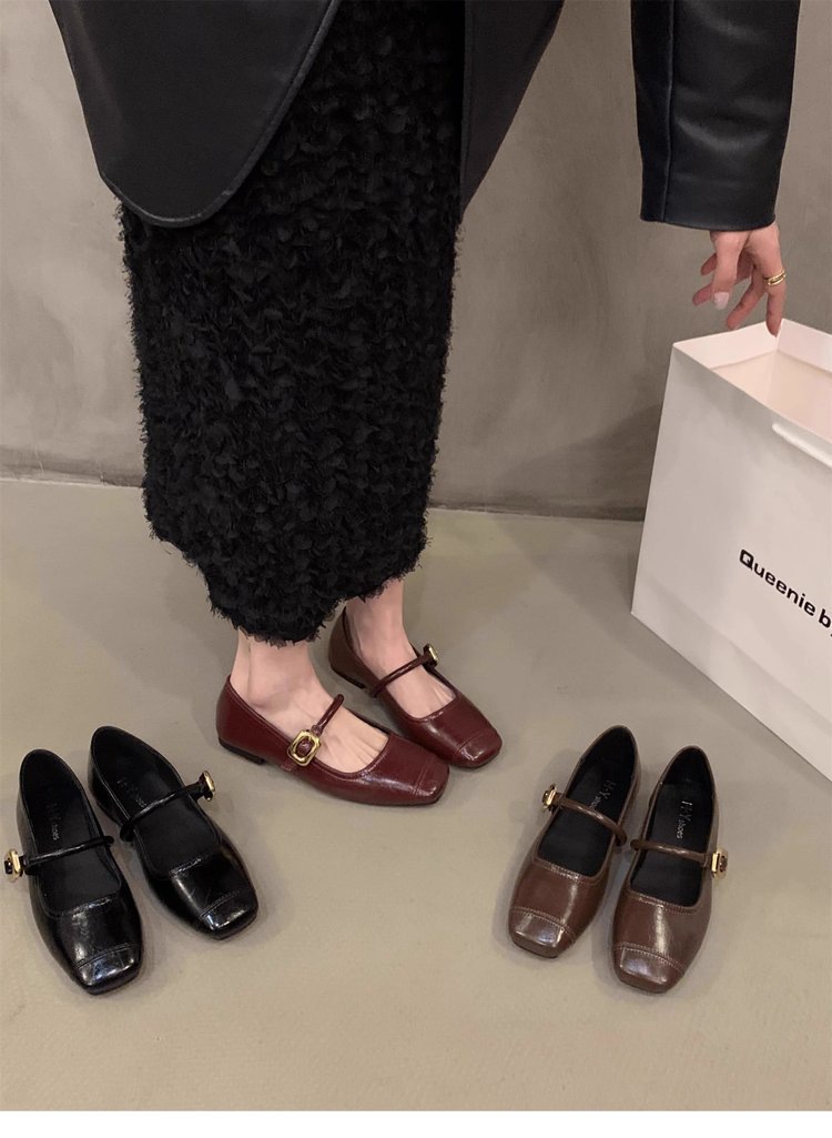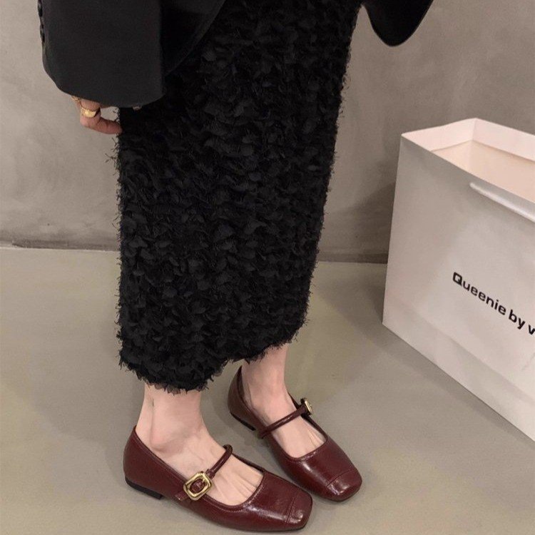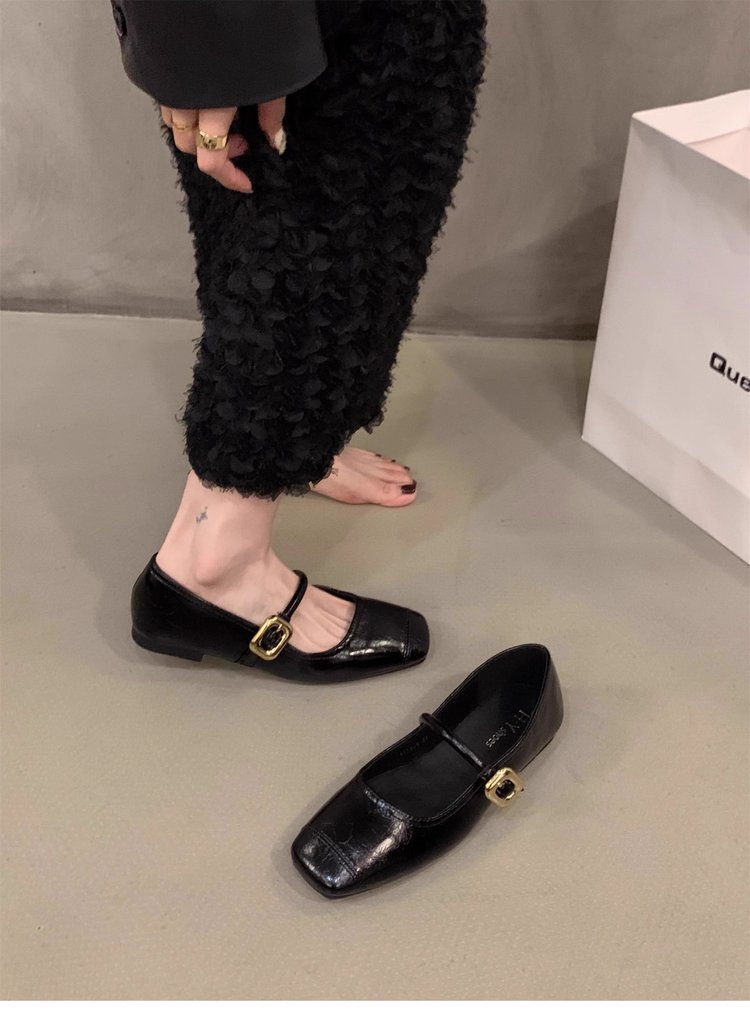 실버 스퀘어 발가락 부드러운 밑바닥 얕은 입 메리 제인 신발 여성 2025 년 새 봄과 여름 한 단어 레트로 프렌치 플랫 슈즈스토어 가기