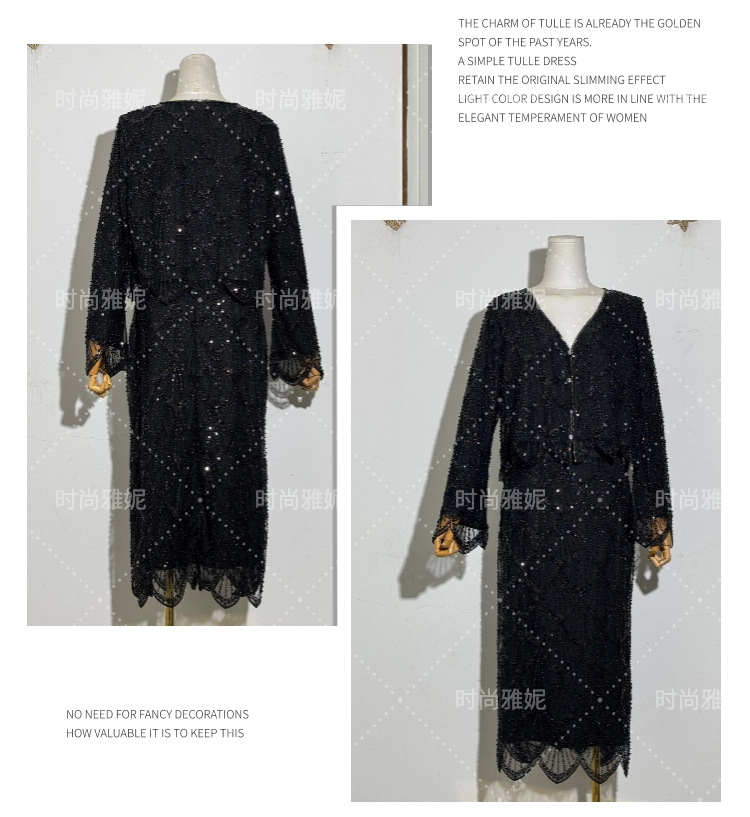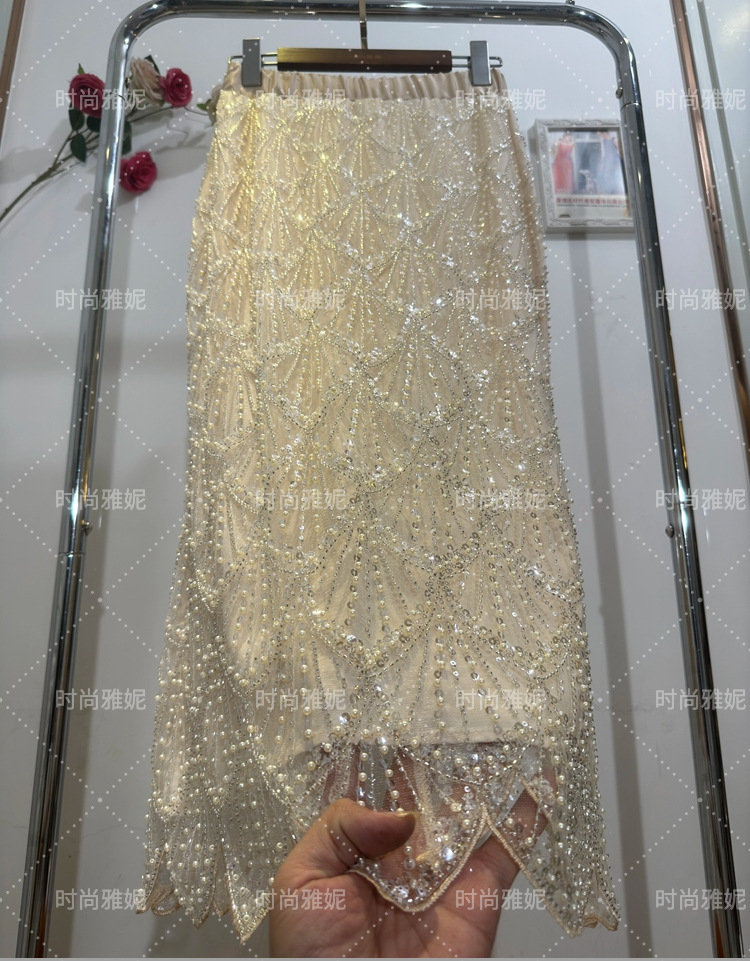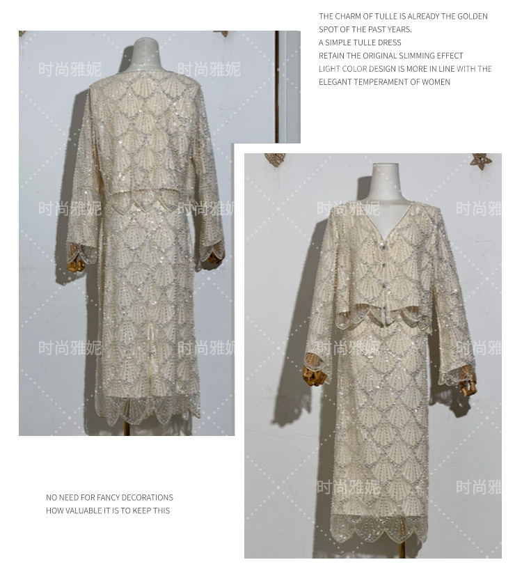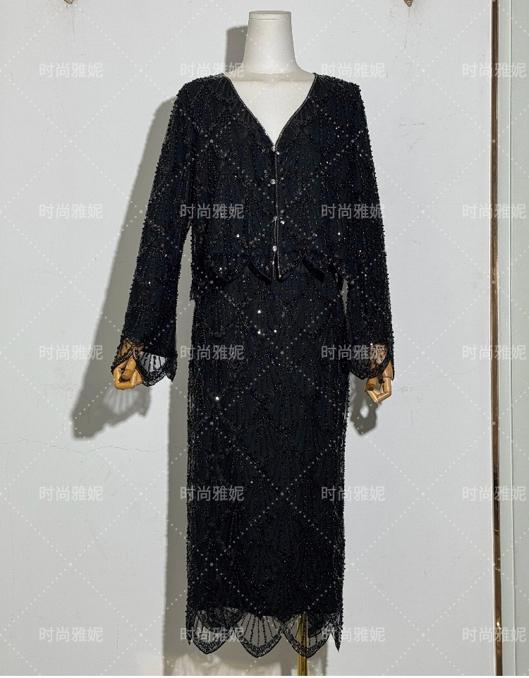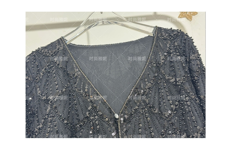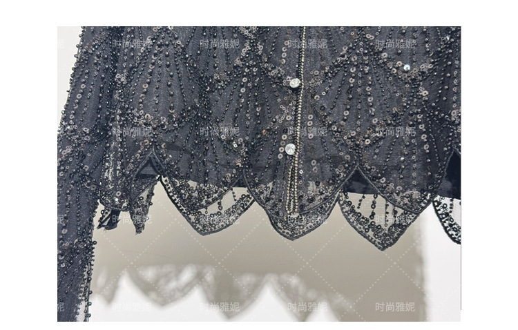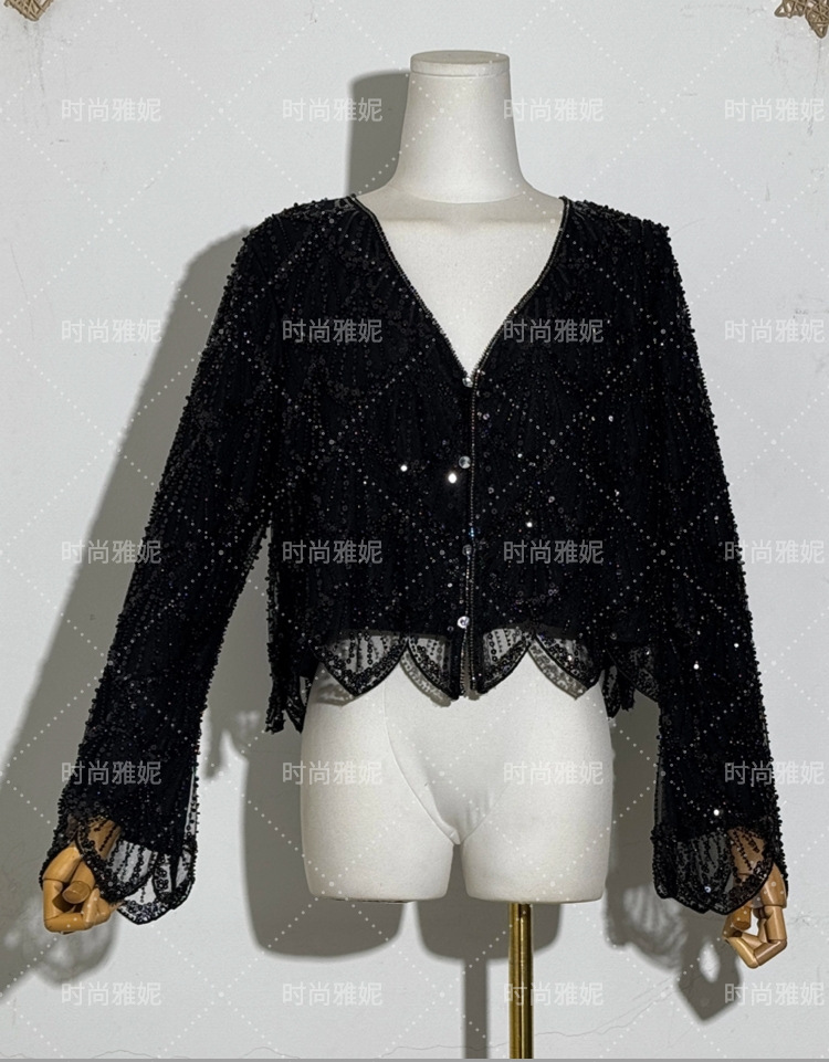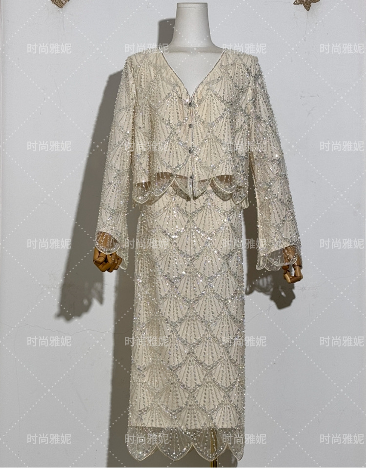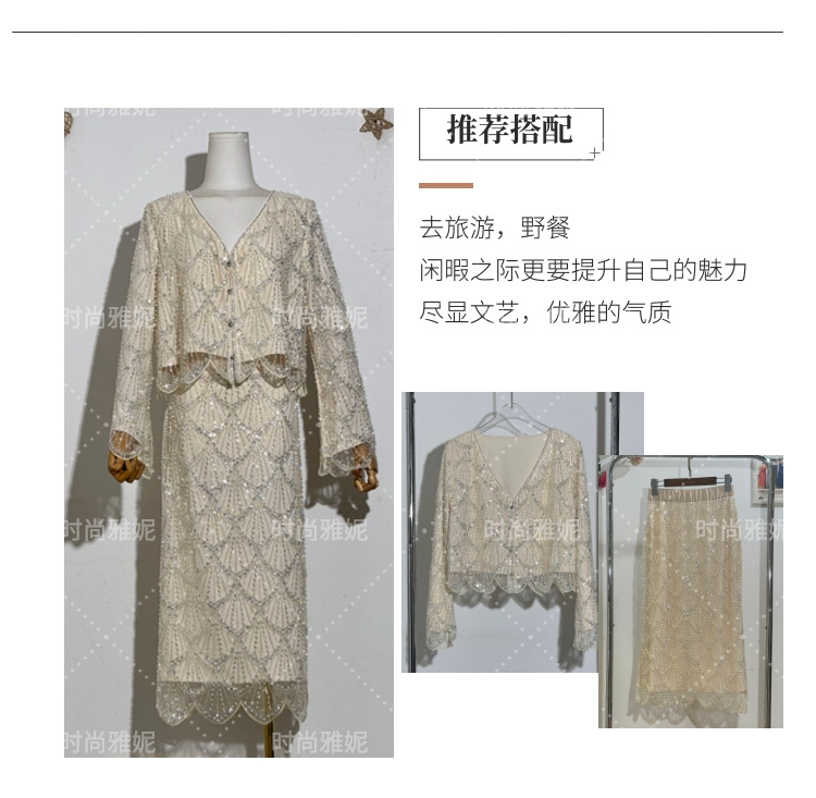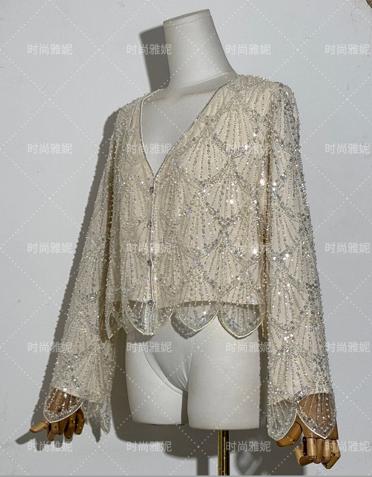 패션 야니 새로운 도착 긴 소매 재킷 탑 틈새 중공업 스커트 스팽글 진주 구슬 카디건 여성스토어 가기