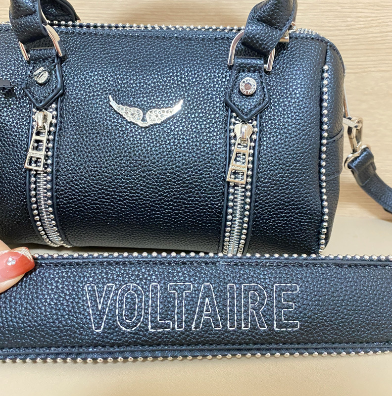 국경 간 독점 ZV2025 새로운 블랙 리치 패턴 여성 가죽 원 숄더 크로스 바디 핸드백 버킷 백스토어 가기