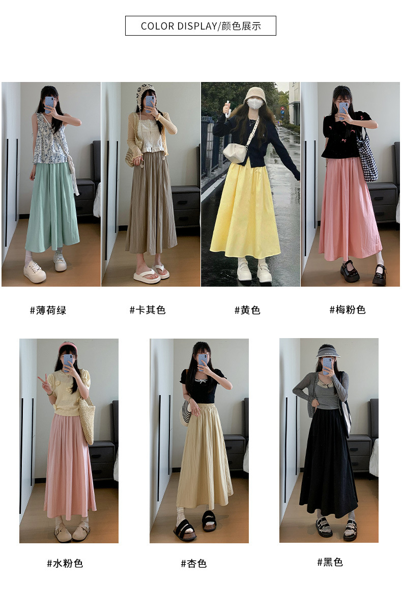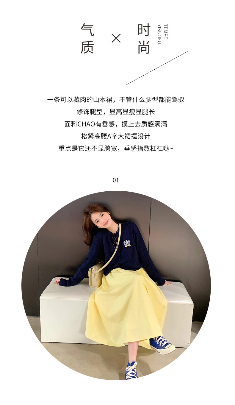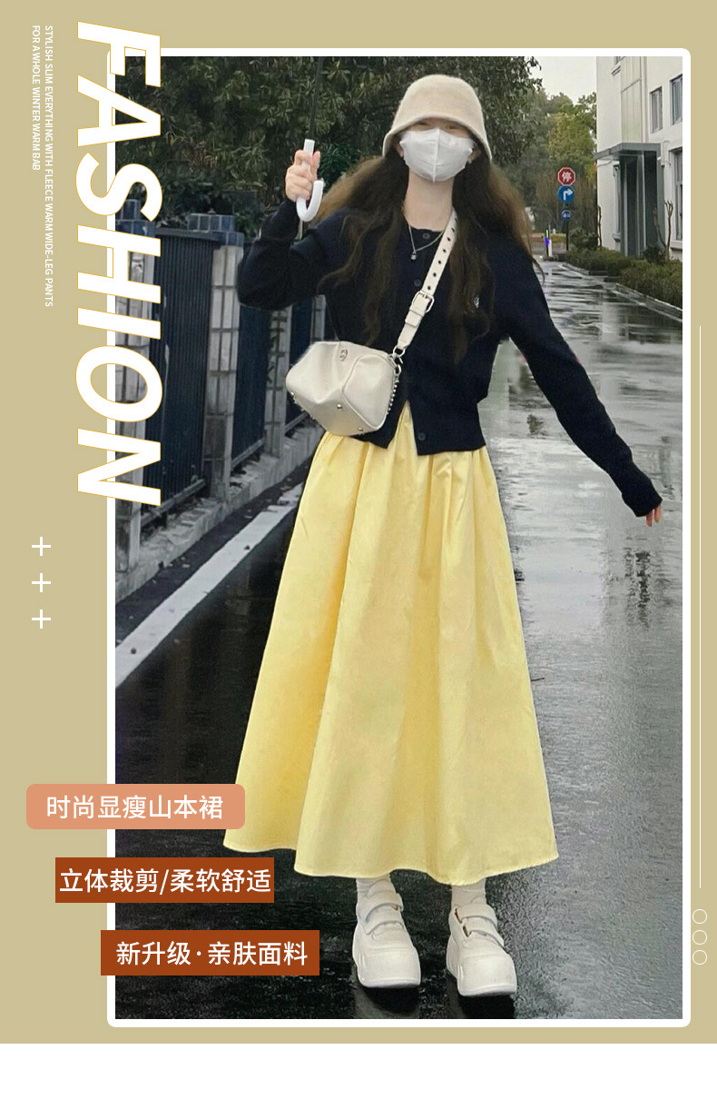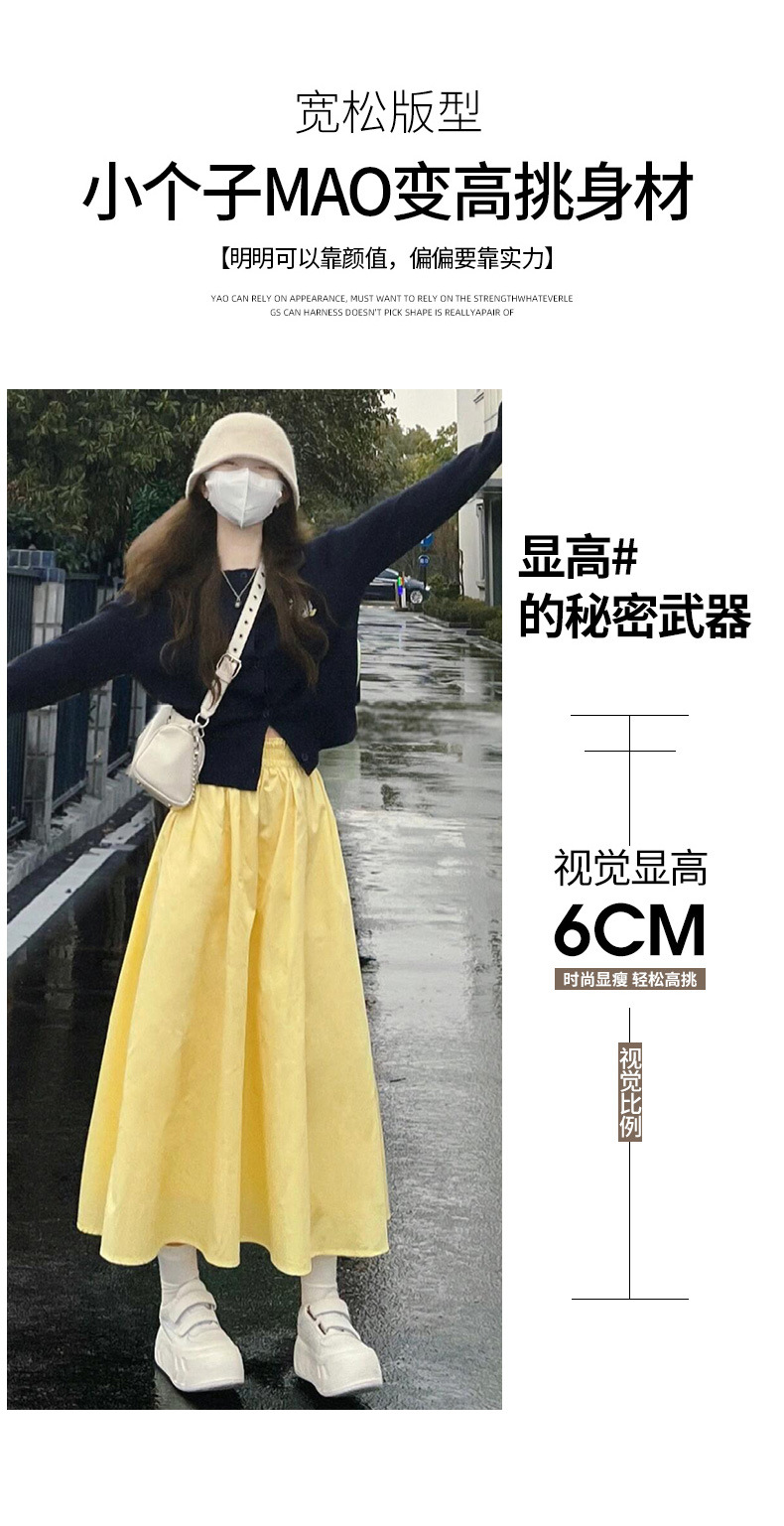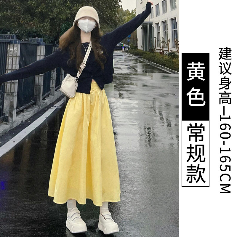 노란색 도파민 스커트 여성의 봄과 가을 2025 새로운 도착 A-라인 롱 스커트 헵번 스타일 우산 스커트 야마모토 스커트스토어 가기