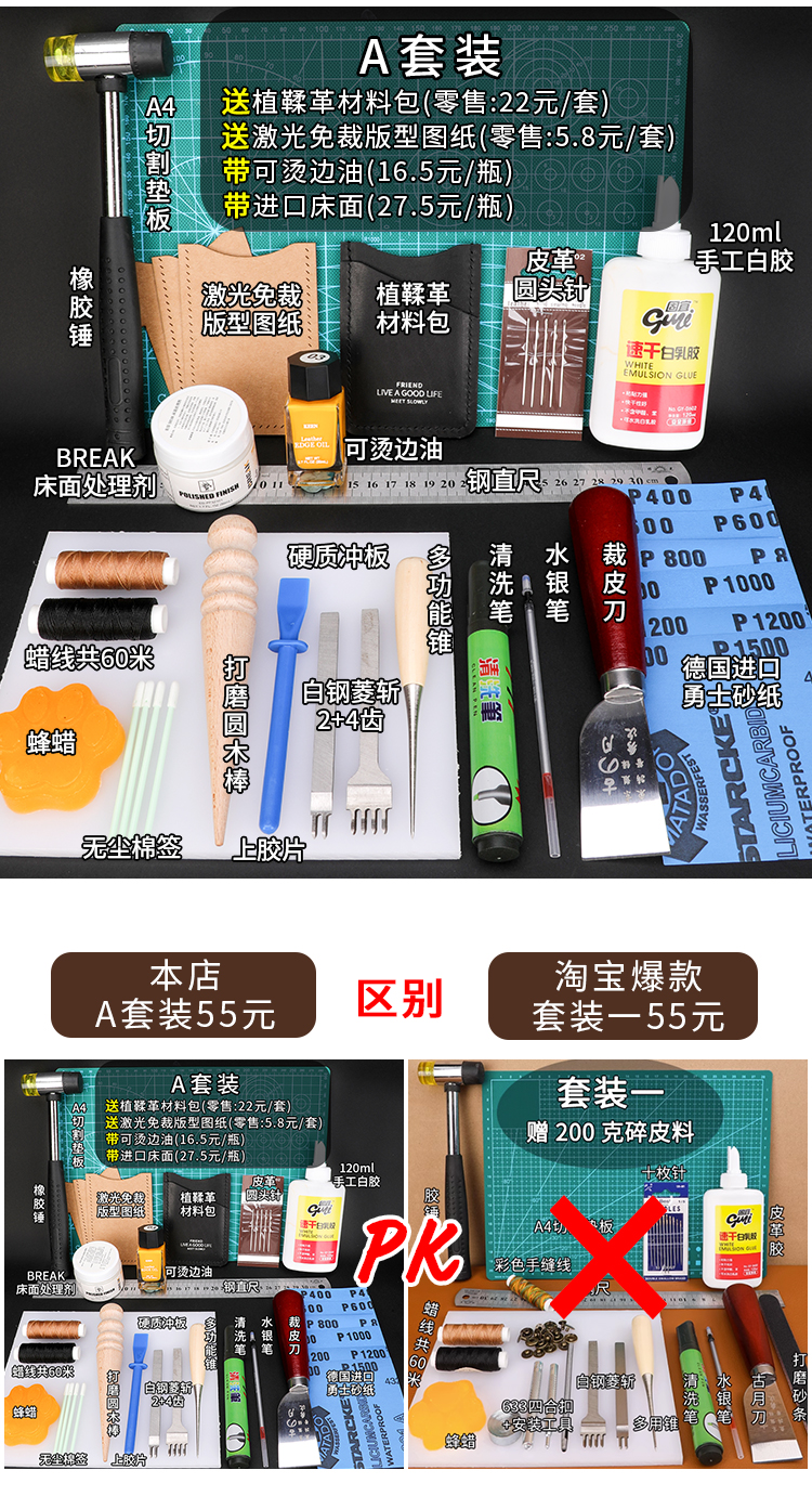 • 21개 세트 (가장자리 다림질 오일 + 수입 침대 표면 포함) [식물성 무두질 가죽 소재 패키지]
