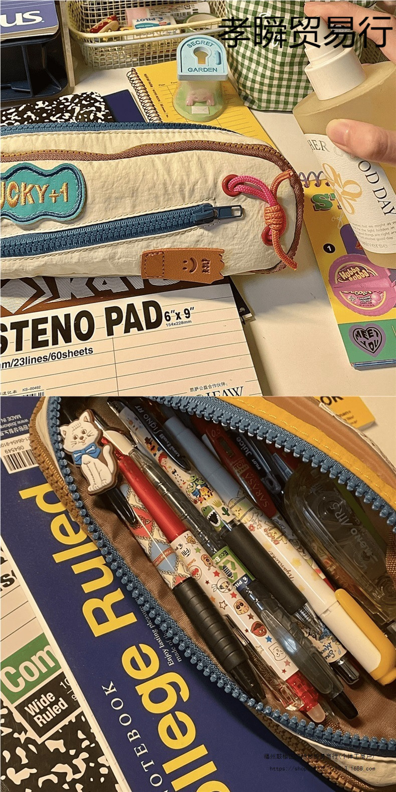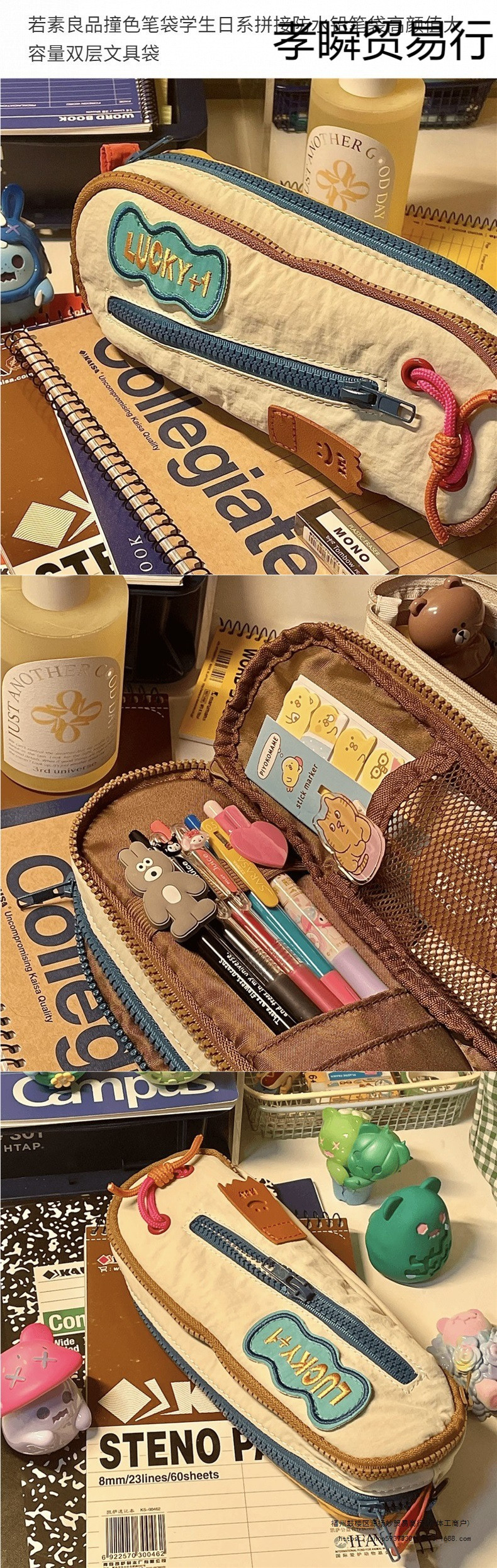 Su Liangpin 대비 컬러 연필 가방 학생 일본어 접합 방수 연필 가방 높은 색상 가치 대용량 더블 레이어 연필