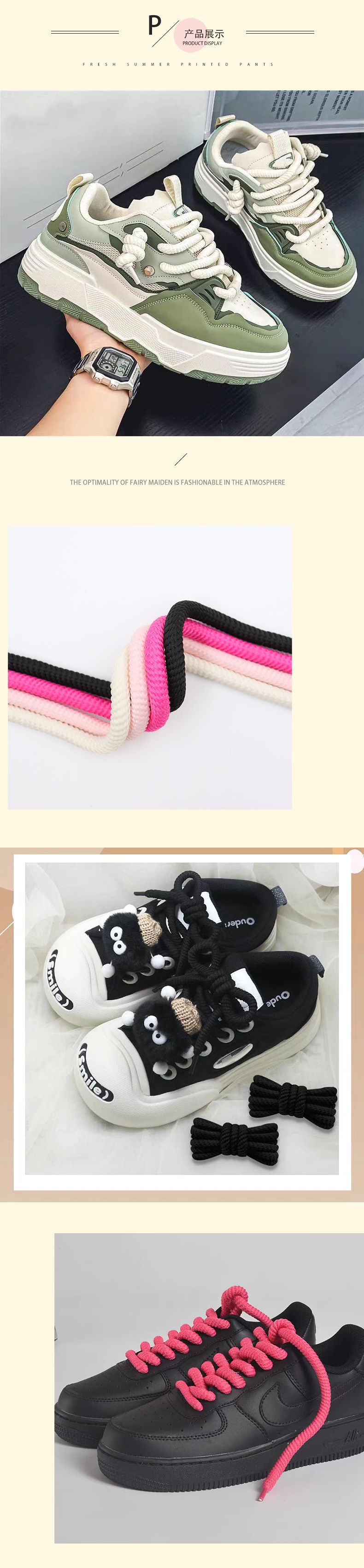 거친 스레드 미끄럼 방지 내마모성 신발 끈 두꺼운 인장 멀티 컬러 옵션 매일 캐주얼 운동화 빵 신발 흰색 신발스토어 가기