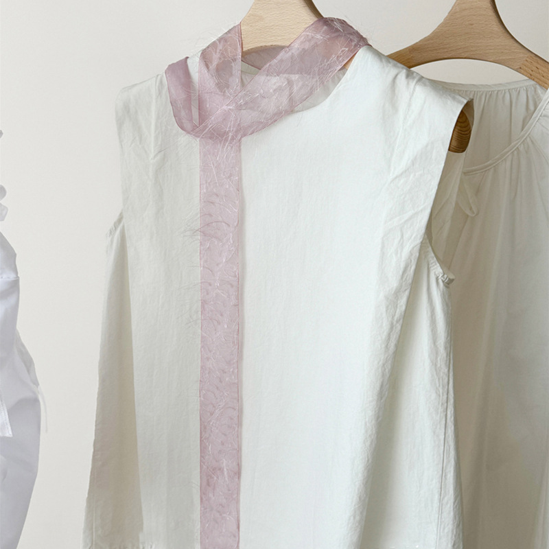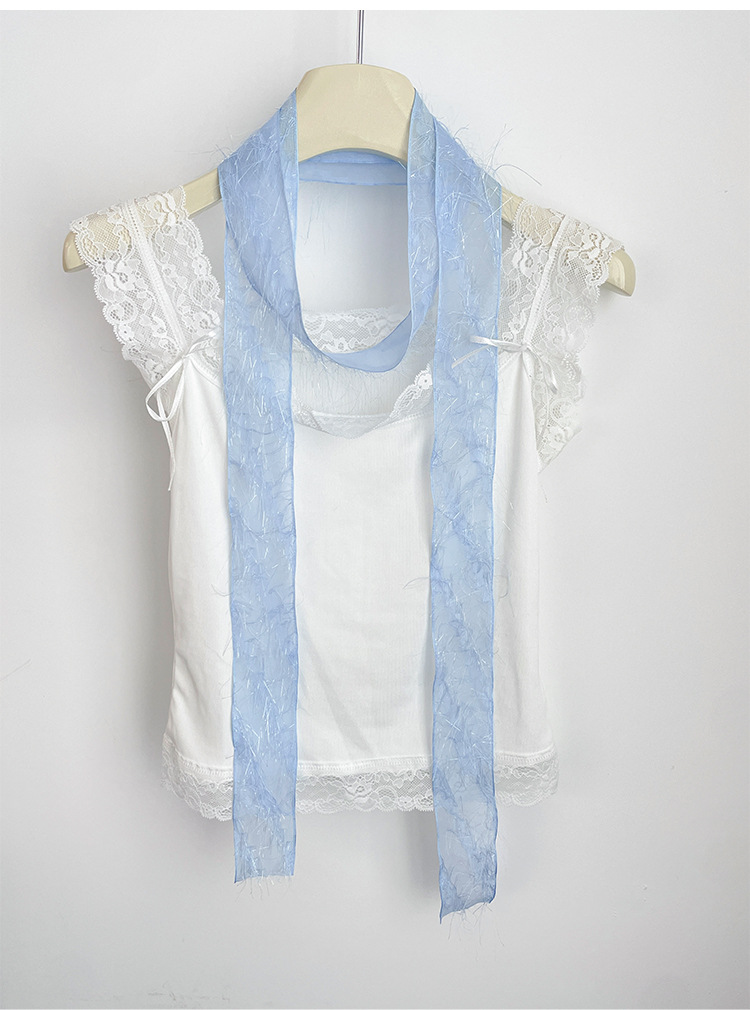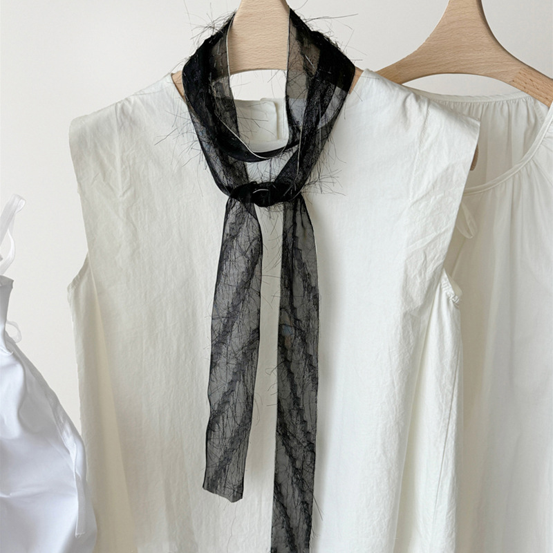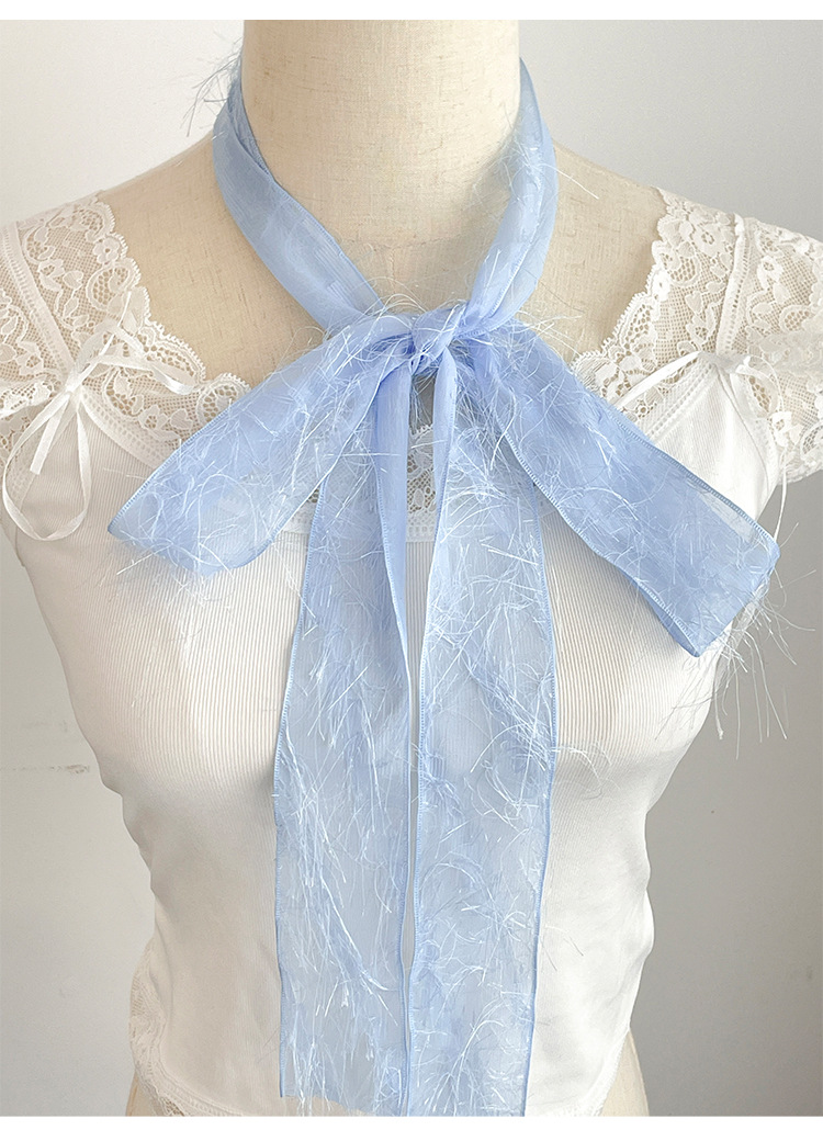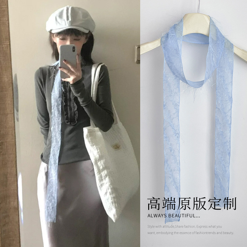 휴식 느낌 빠른 모래 긴 실크 스카프 리본 여성의 봄과 여름 달콤한 스타일 파란색 작은 장식 스카프 액세서리 슈퍼 롱스토어 가기