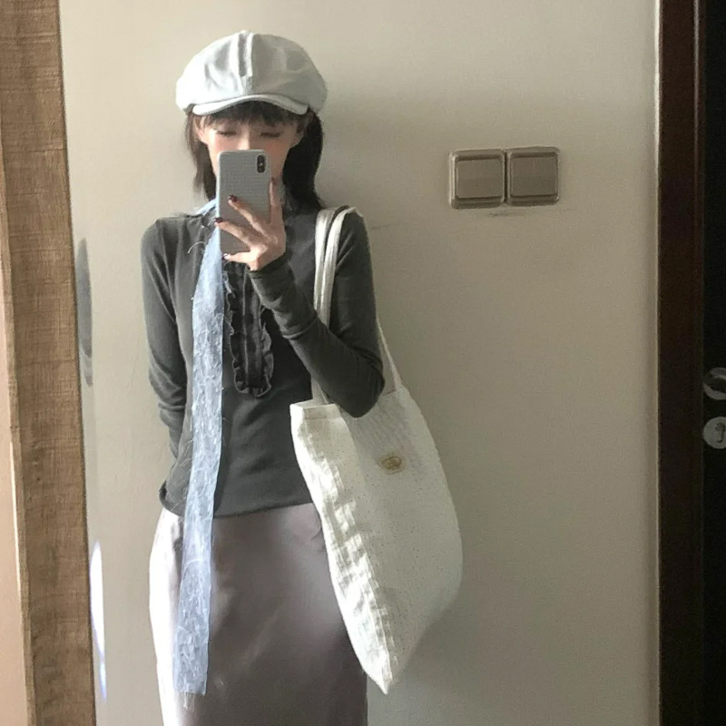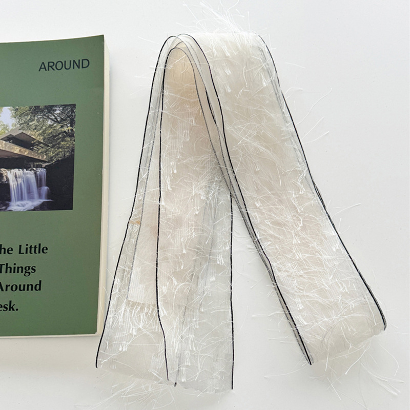 • 오프화이트 색상의 유사 롱 실크 스카프