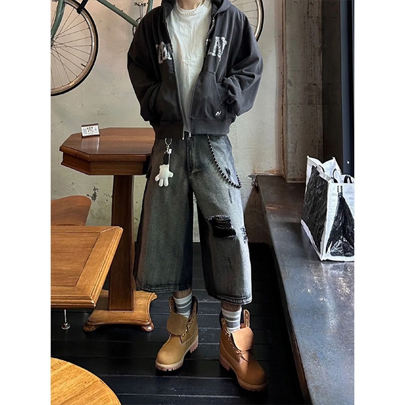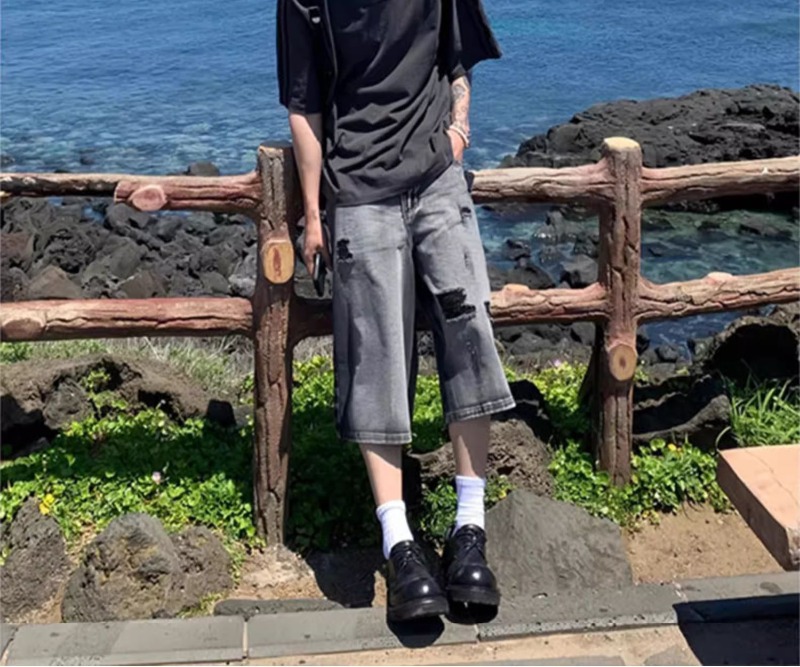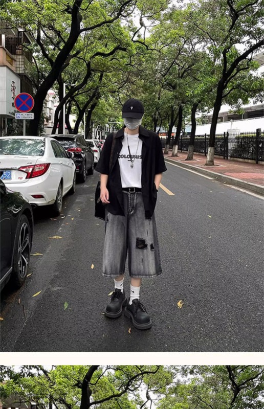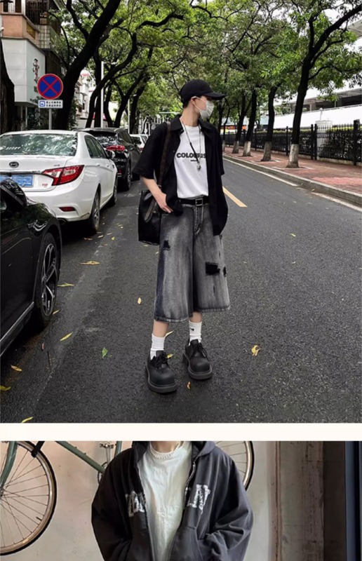 아메리칸 스타일 레트로 옐로우 머드 염색 데님 반바지 남자 여름 바이브 패션 브랜드 루즈 하이 스트리트 캐주얼 올 매치 바지스토어 가기