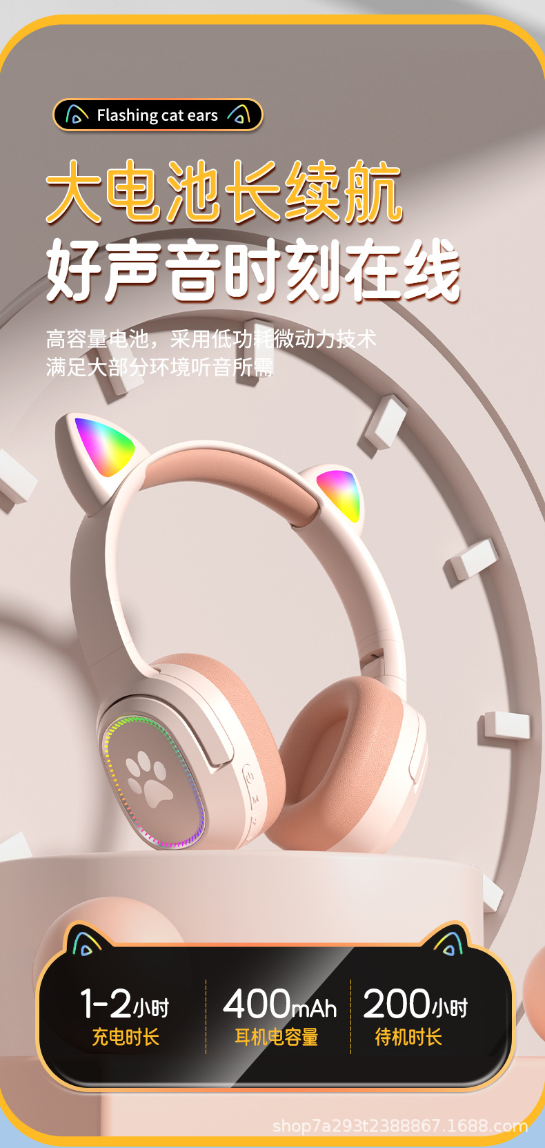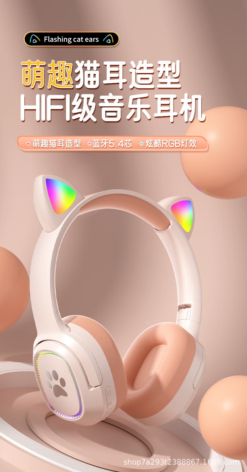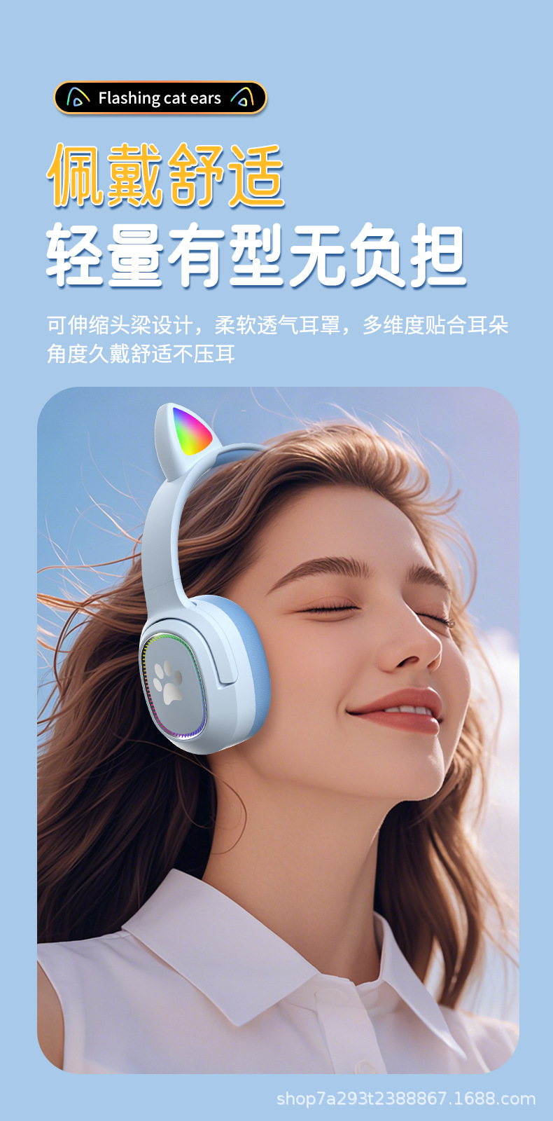 공장 직접 새로운 귀여운 빛나는 고양이 귀 헤드셋 무선 블루투스 헤드셋 접이식 게임 범용 헤드셋스토어 가기