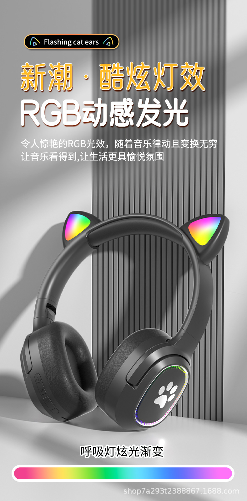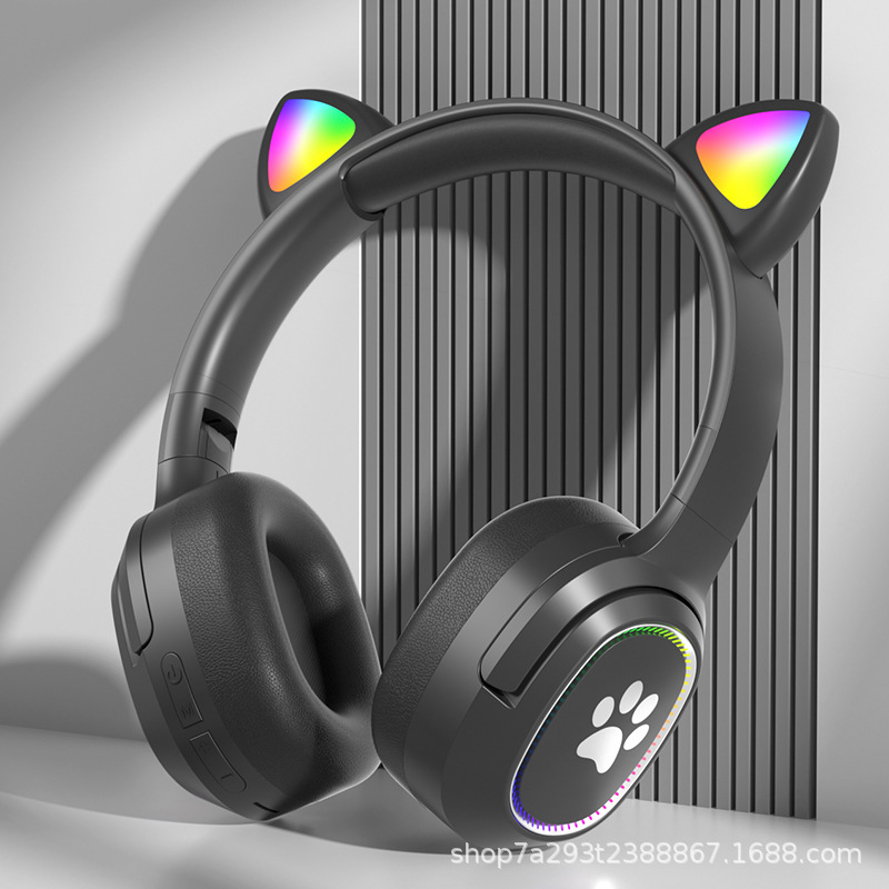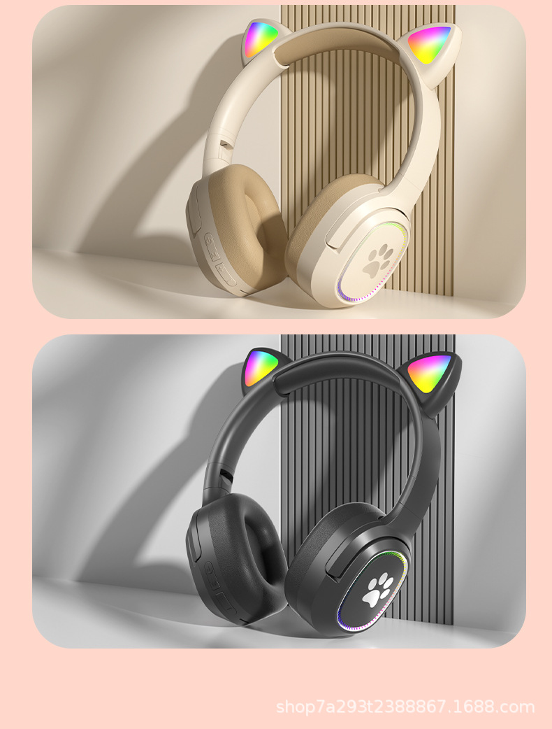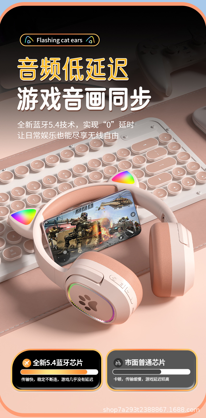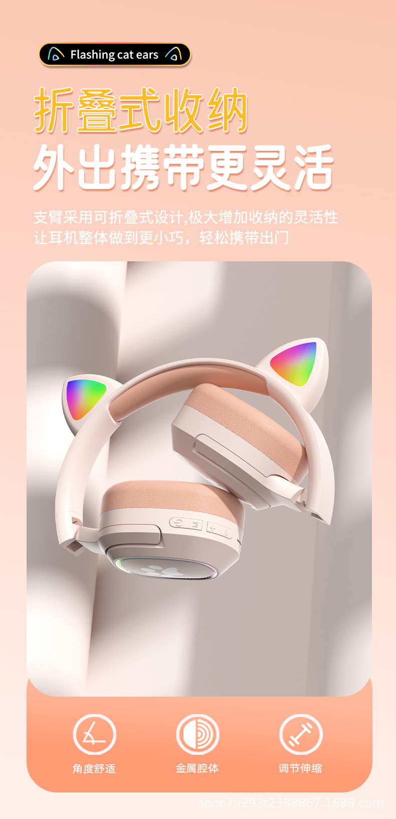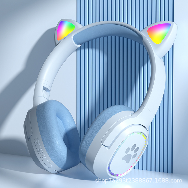 공장 직접 새로운 귀여운 빛나는 고양이 귀 헤드셋 무선 블루투스 헤드셋 접이식 게임 범용 헤드셋