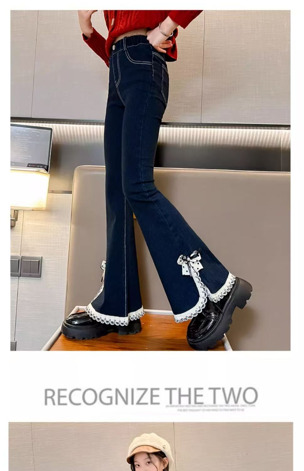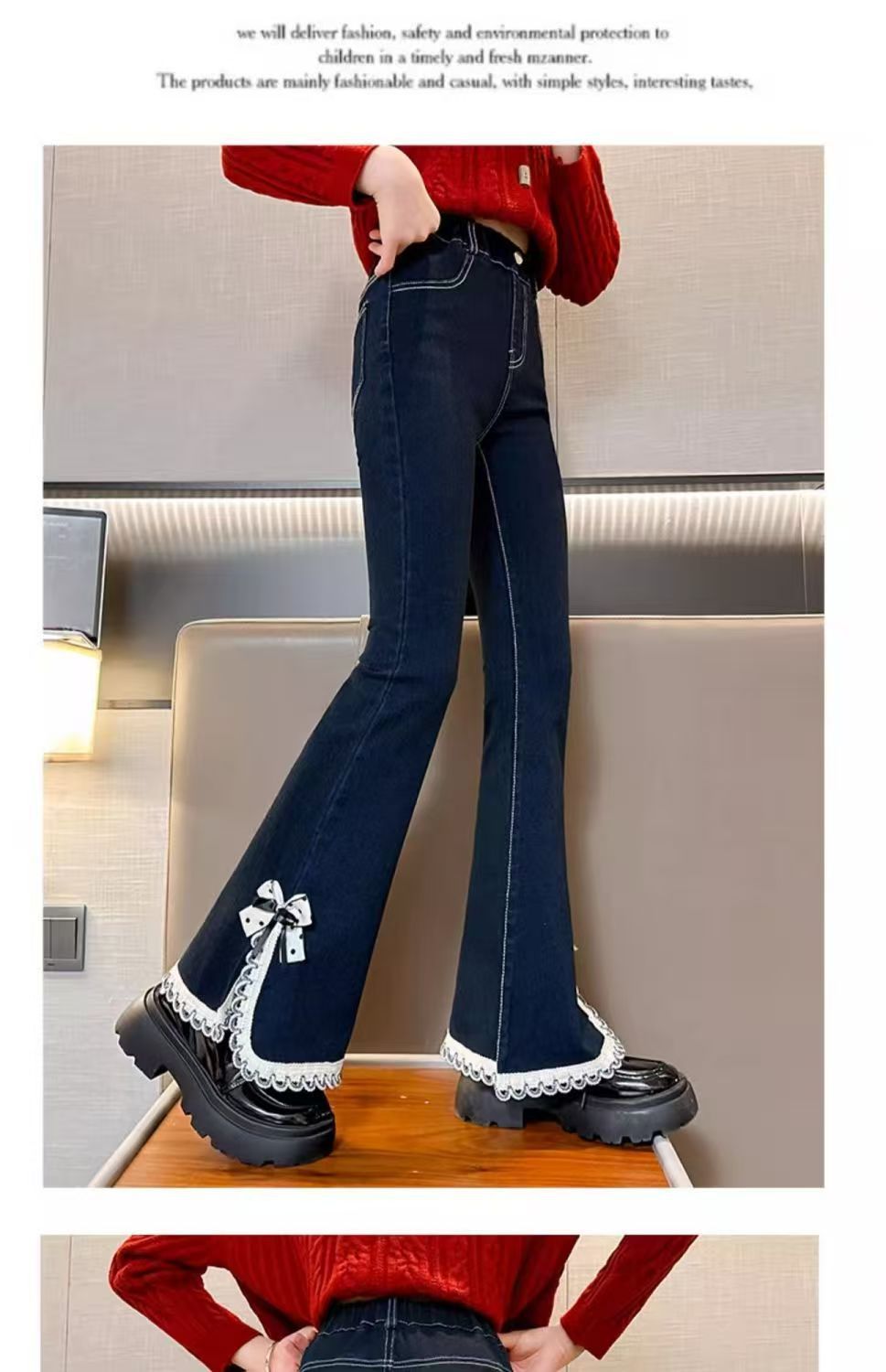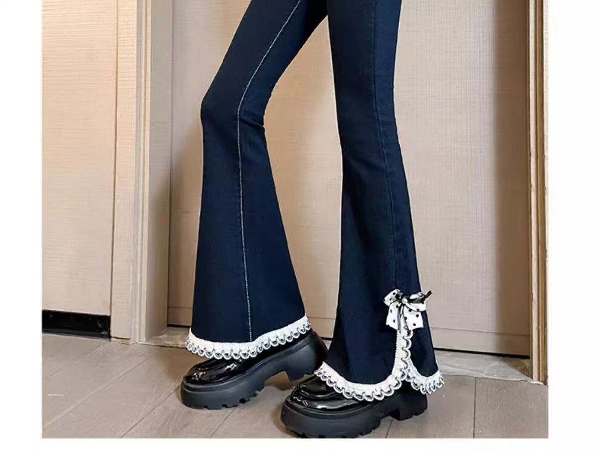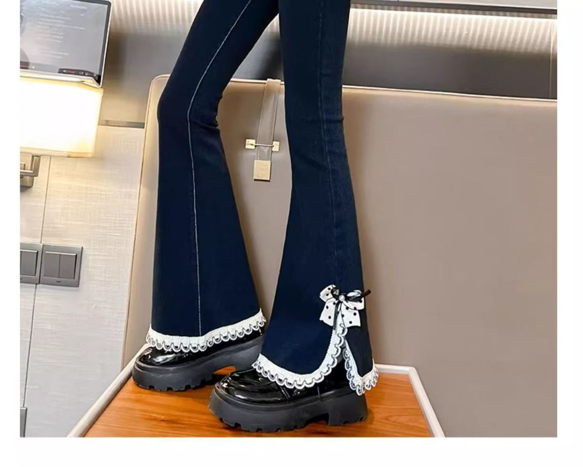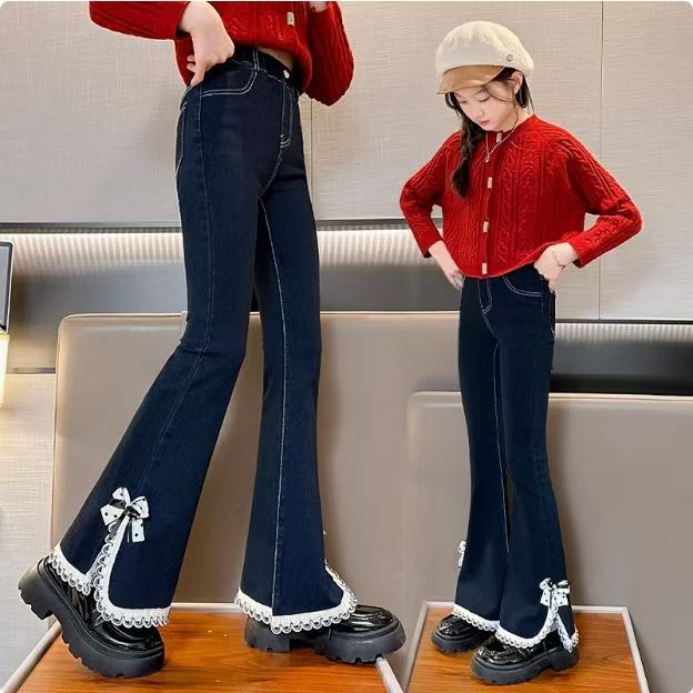 소녀들의 봄 데님 꽃 바지 2025 새로운 스타일 소녀의 활 분할 바지 어린이를위한 유행 유행 바지스토어 가기