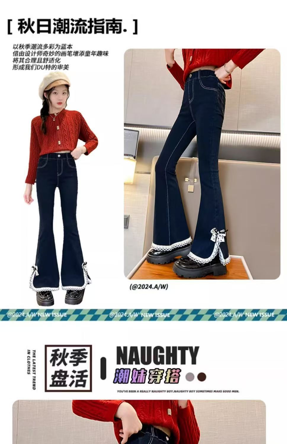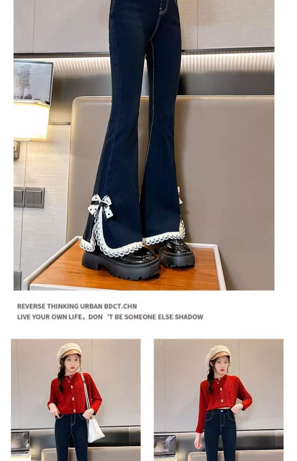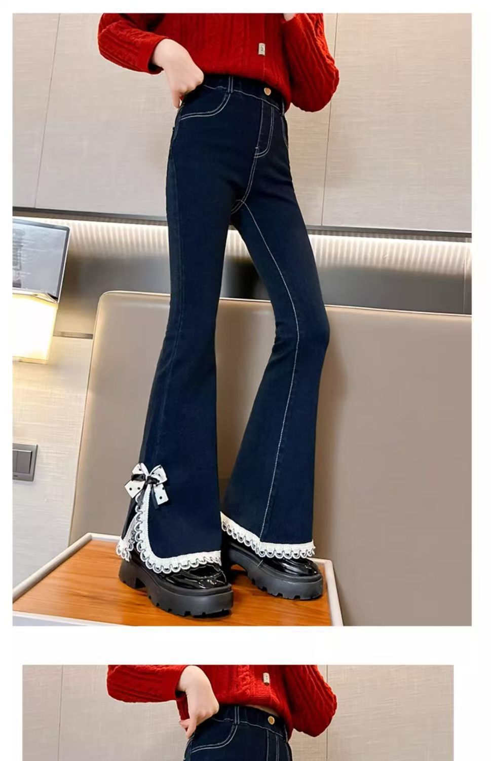 소녀들의 봄 데님 꽃 바지 2025 새로운 스타일 소녀의 활 분할 바지 어린이를위한 유행 유행 바지스토어 가기