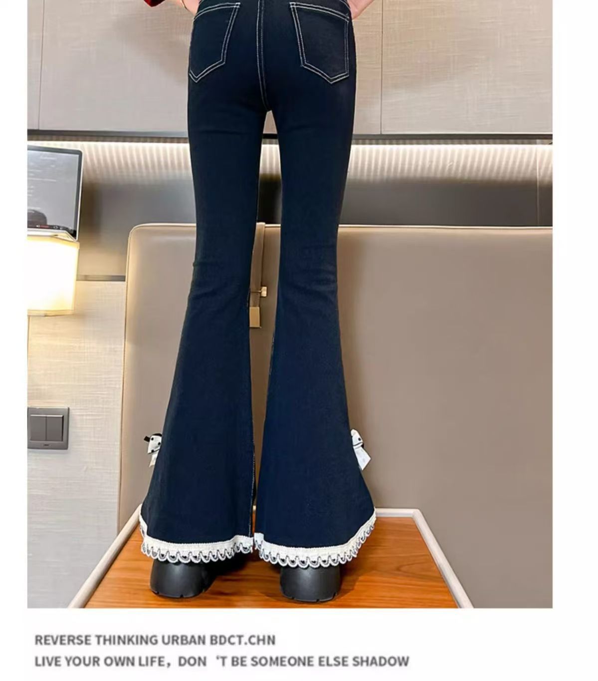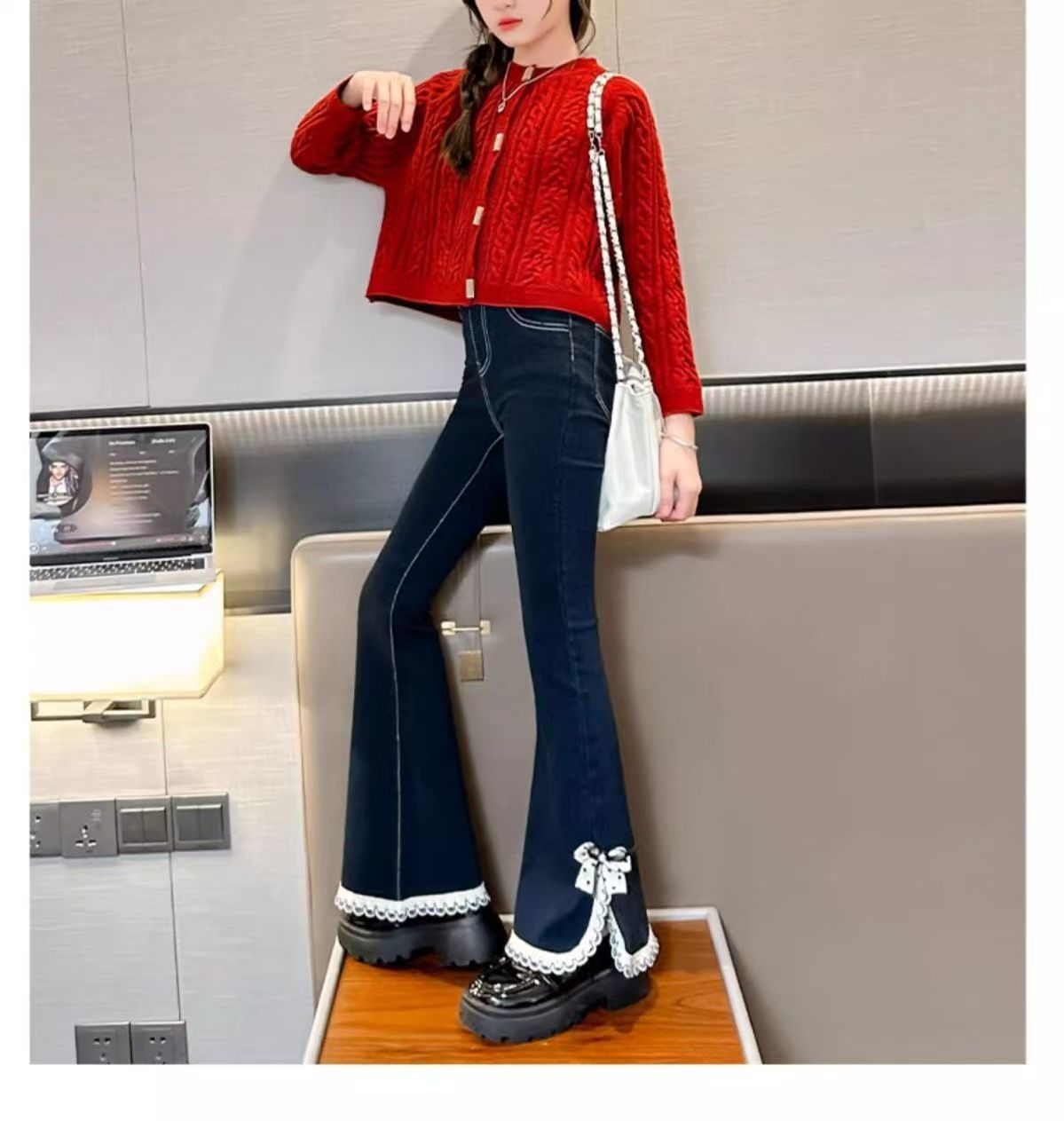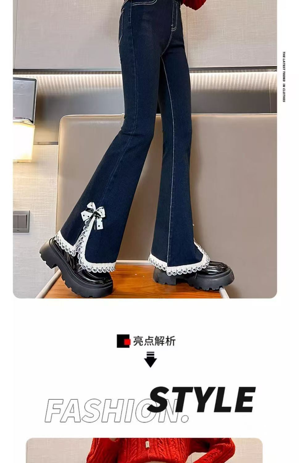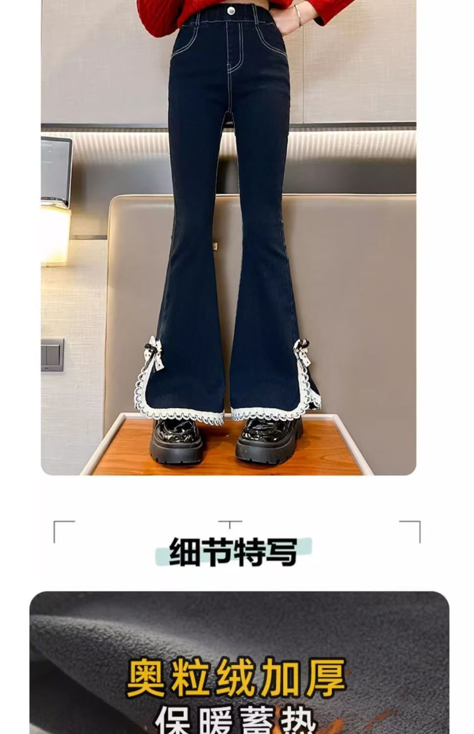 소녀들의 봄 데님 꽃 바지 2025 새로운 스타일 소녀의 활 분할 바지 어린이를위한 유행 유행 바지스토어 가기