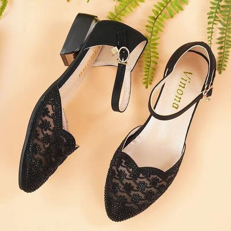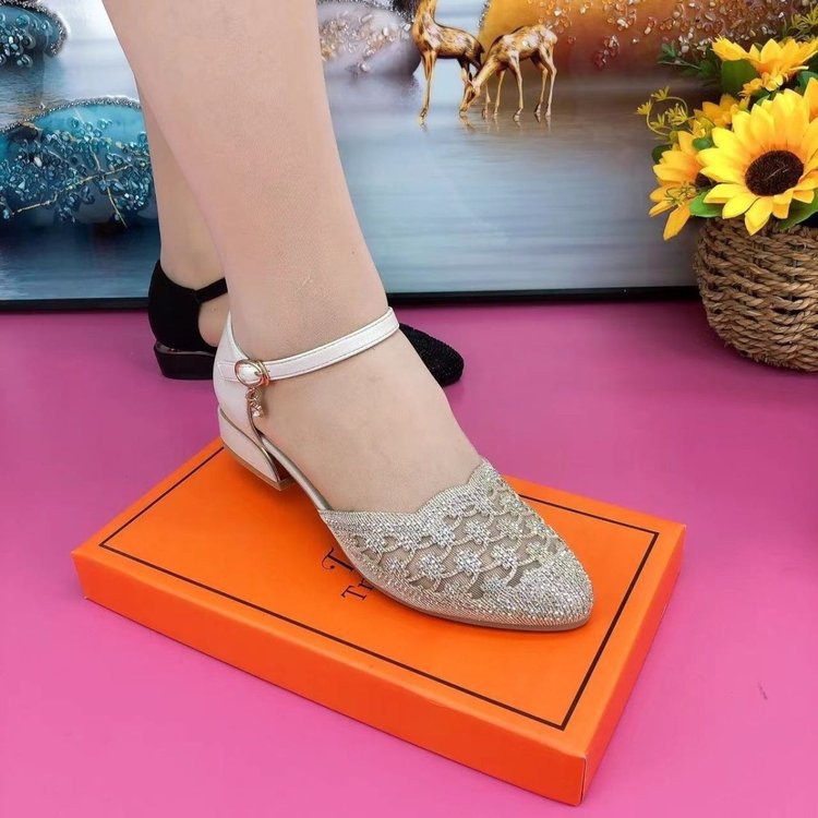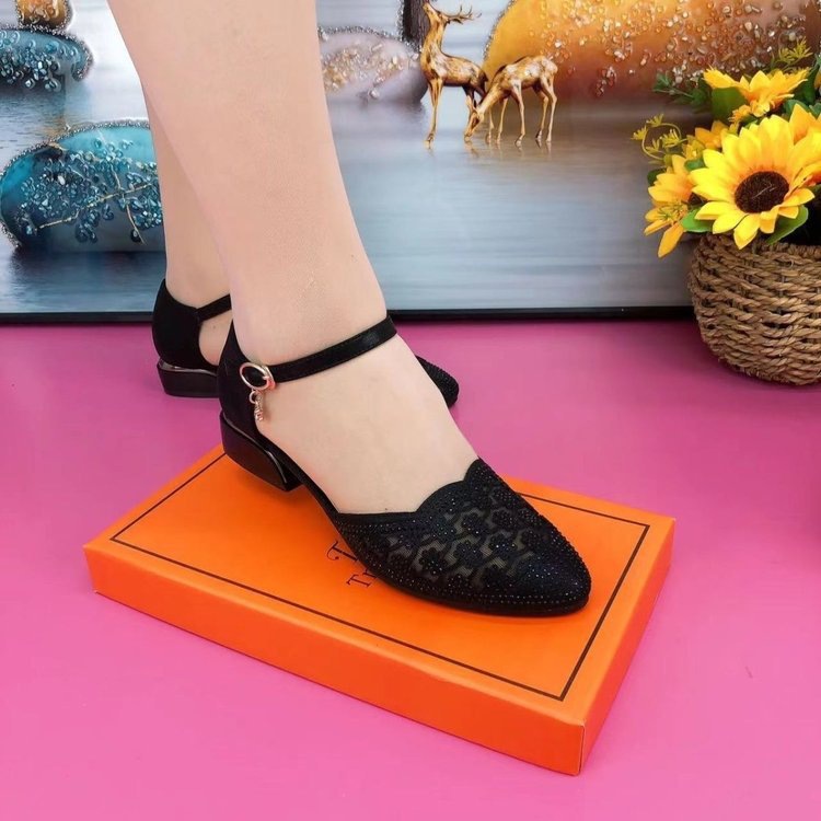 샌들 여성 여름 새로운 바오터우 중발 신발 중년 여성 라인스톤 메시 여성 신발 빈 싱글 레이어 신발 엄마 신발스토어 가기