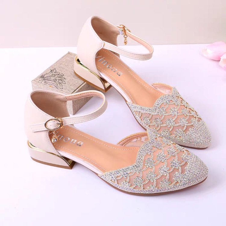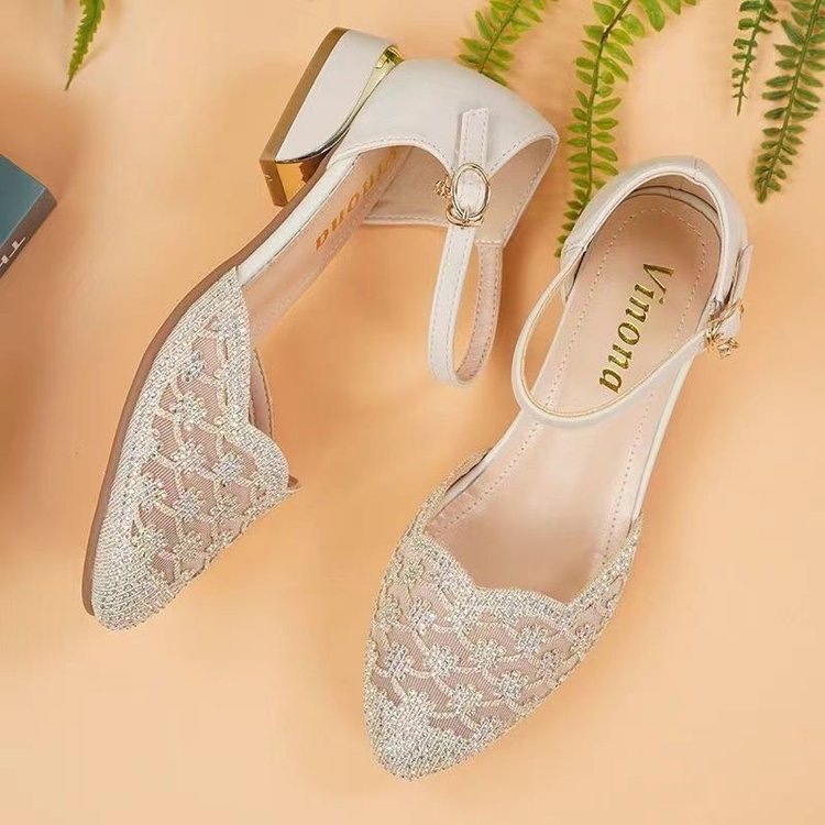 샌들 여성 여름 새로운 바오터우 중발 신발 중년 여성 라인스톤 메시 여성 신발 빈 싱글 레이어 신발 엄마 신발