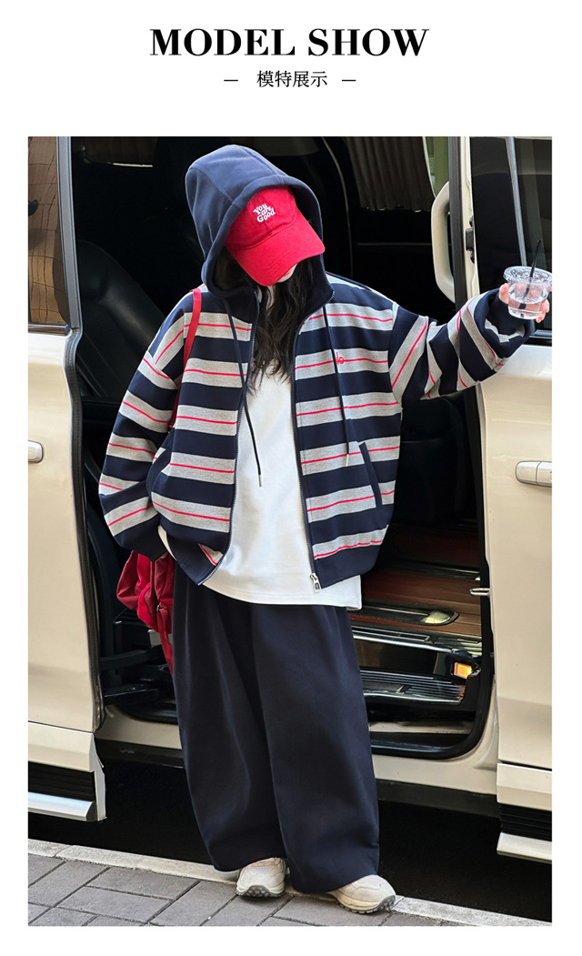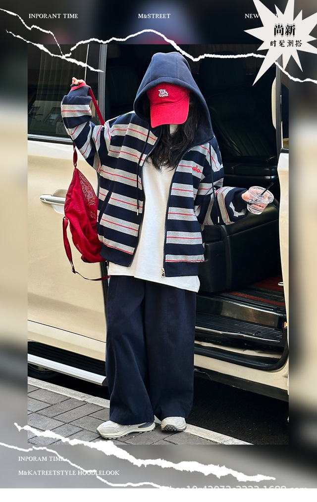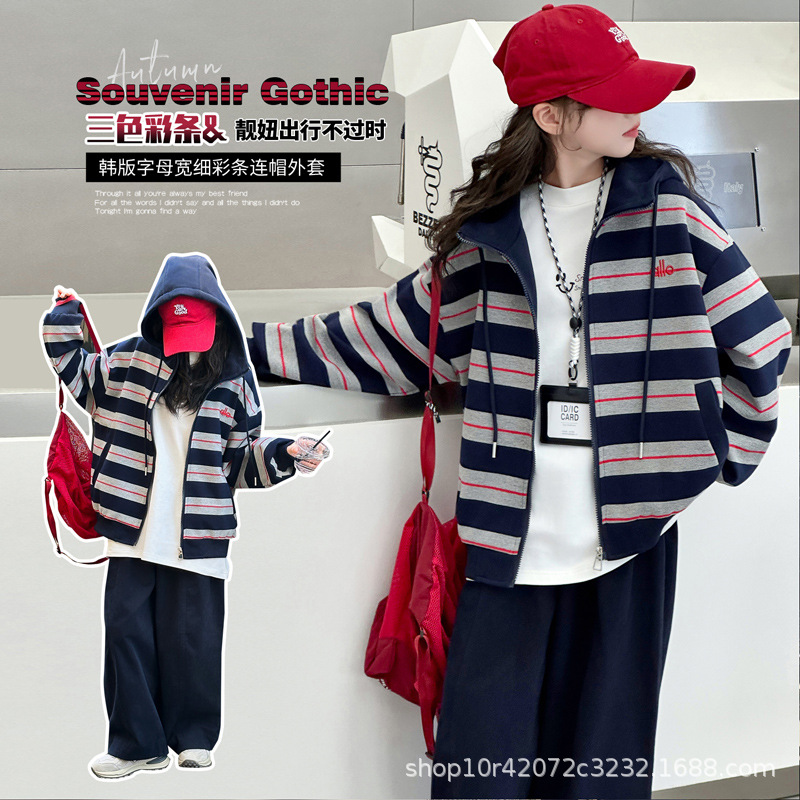 여아용 후드 스트라이프 재킷 가을옷 2025 신상 중학생 소녀 스포츠 스타일 가디건 스웨트셔츠 봄 가을스토어 가기