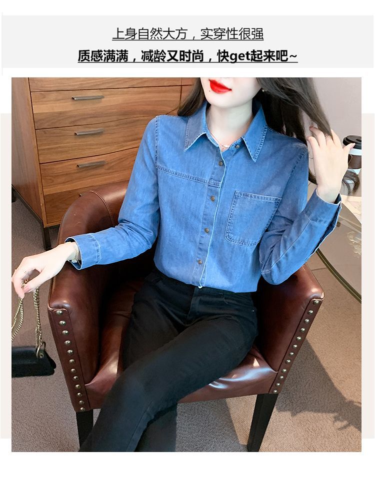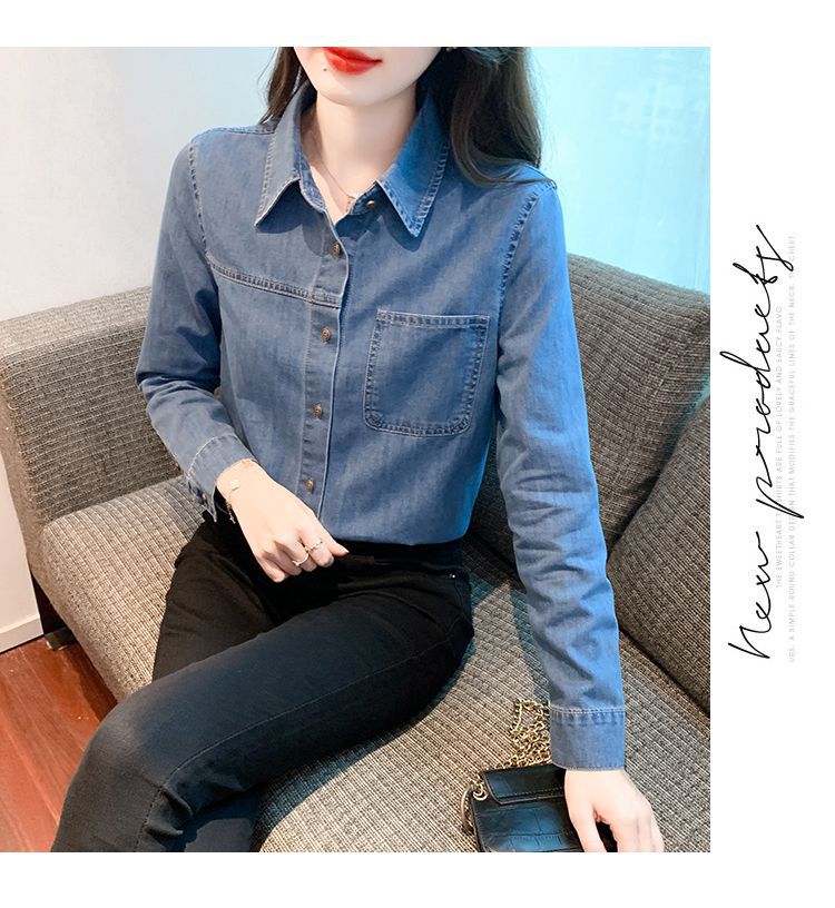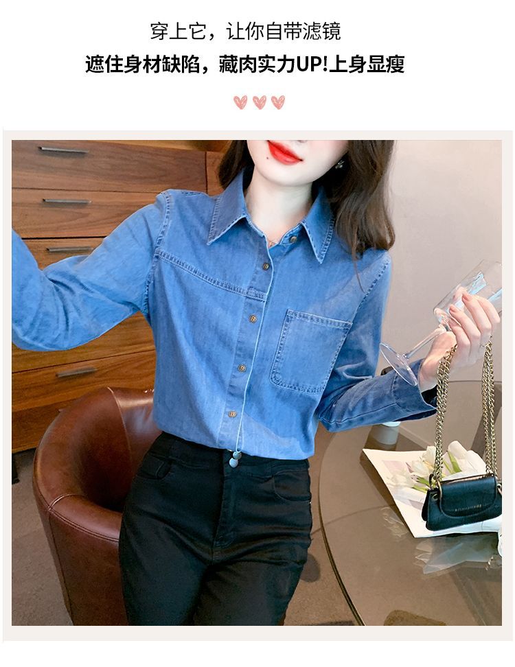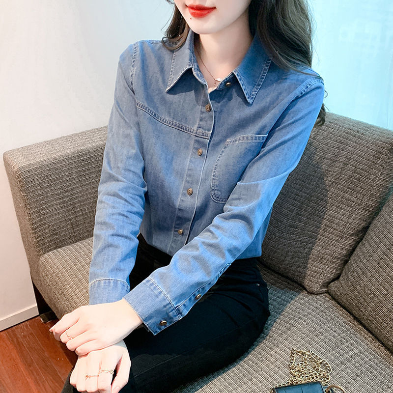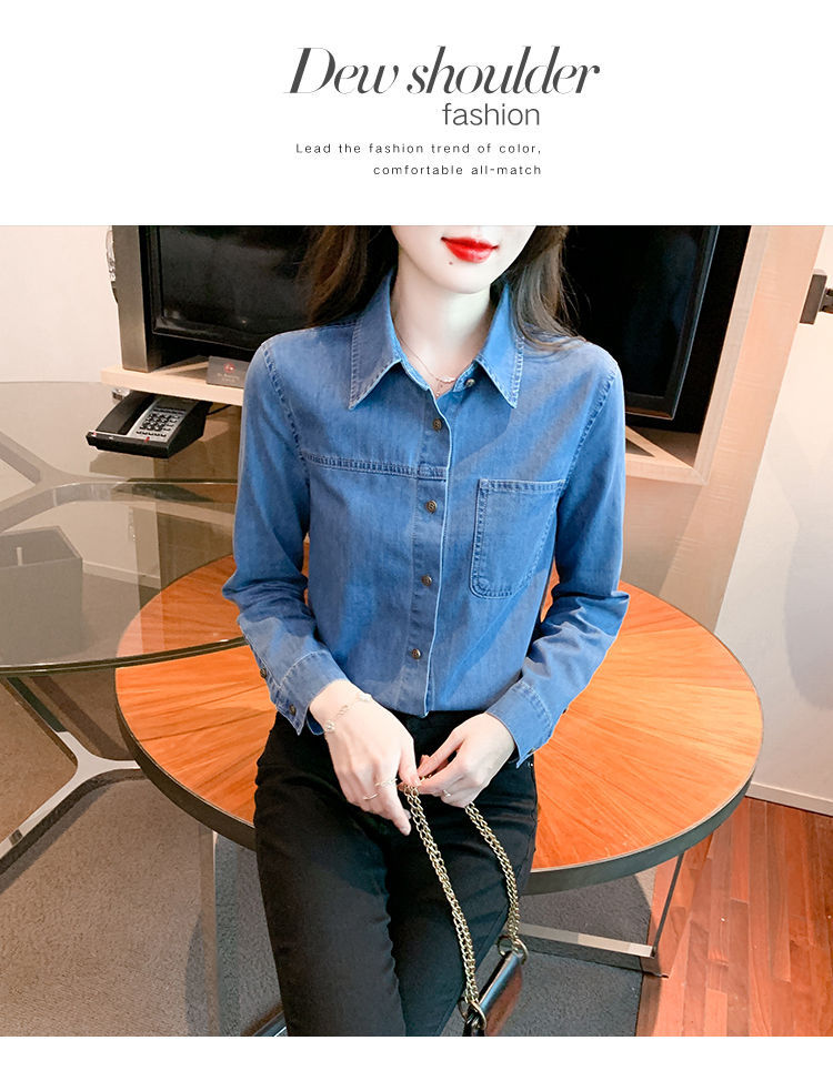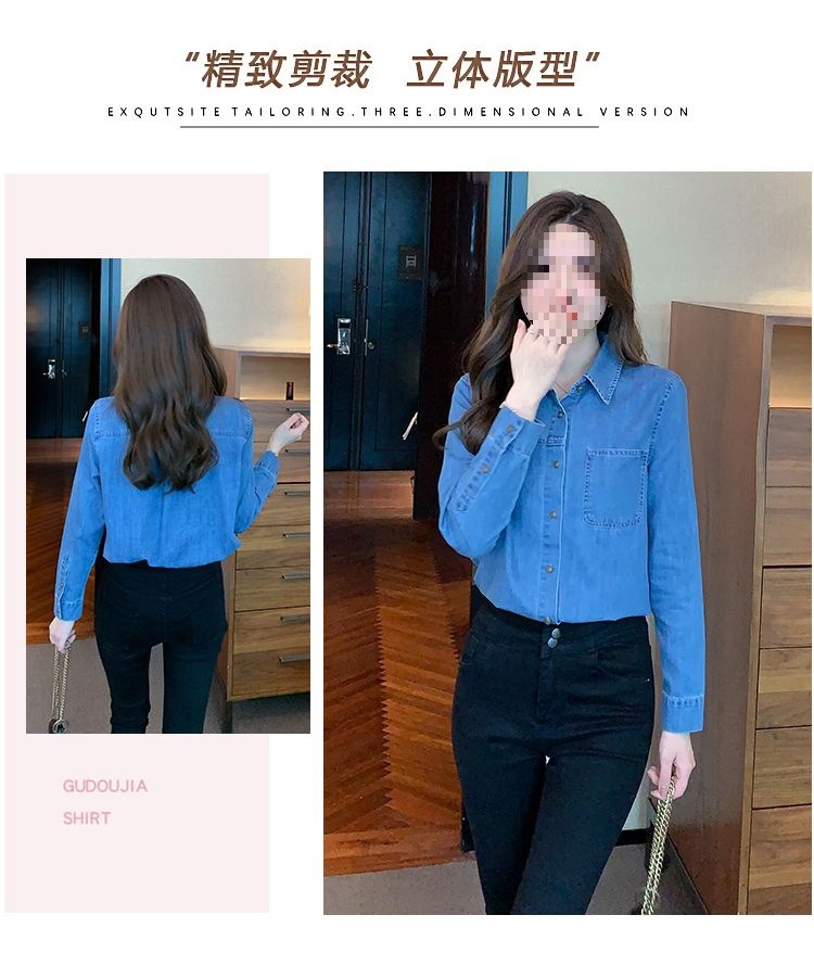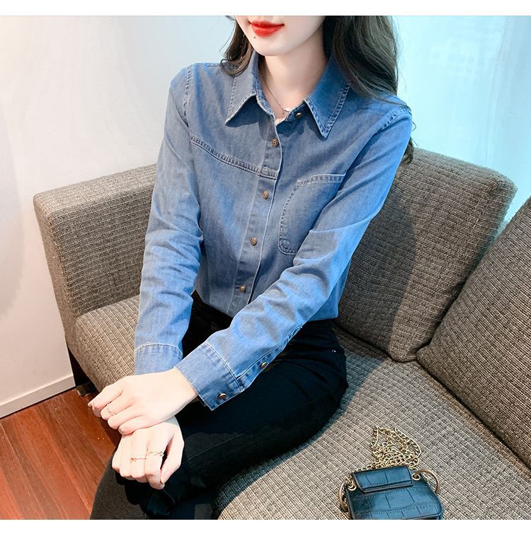 이른 가을 긴 소매 디자인 센스 틈새 데님 셔츠 여성의 봄과 가을 새로운 프랑스 달콤한 세련된 탑스토어 가기