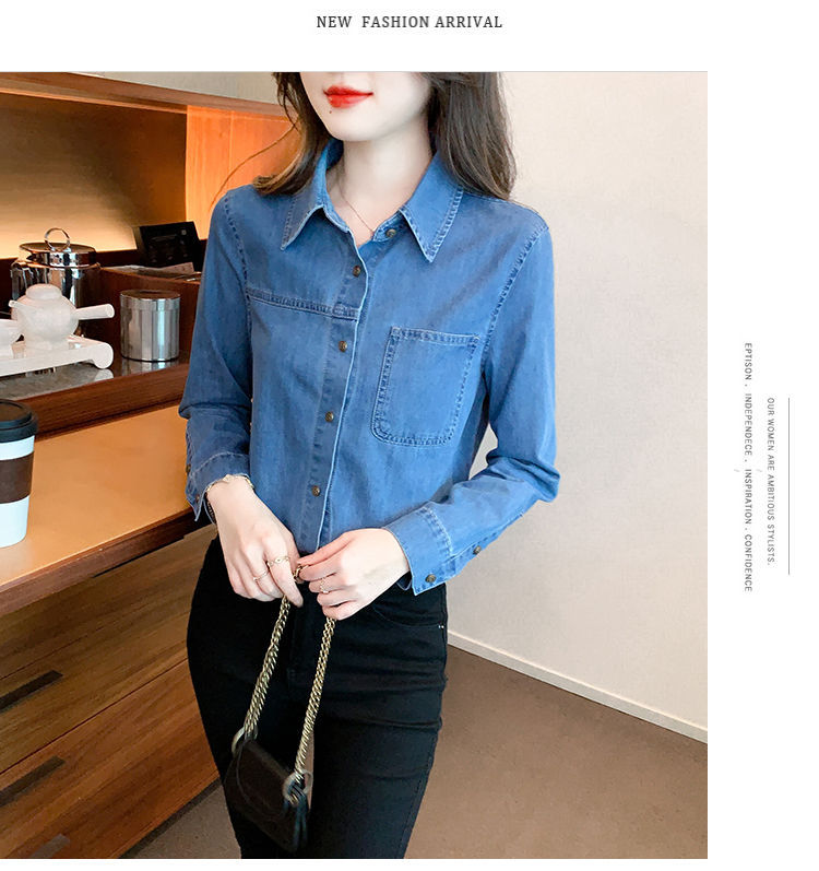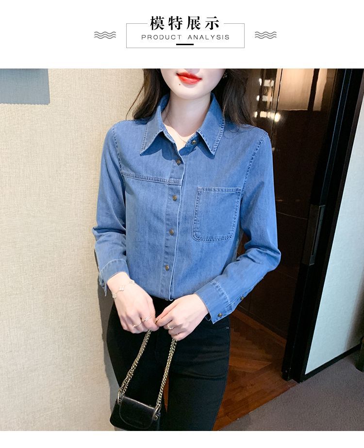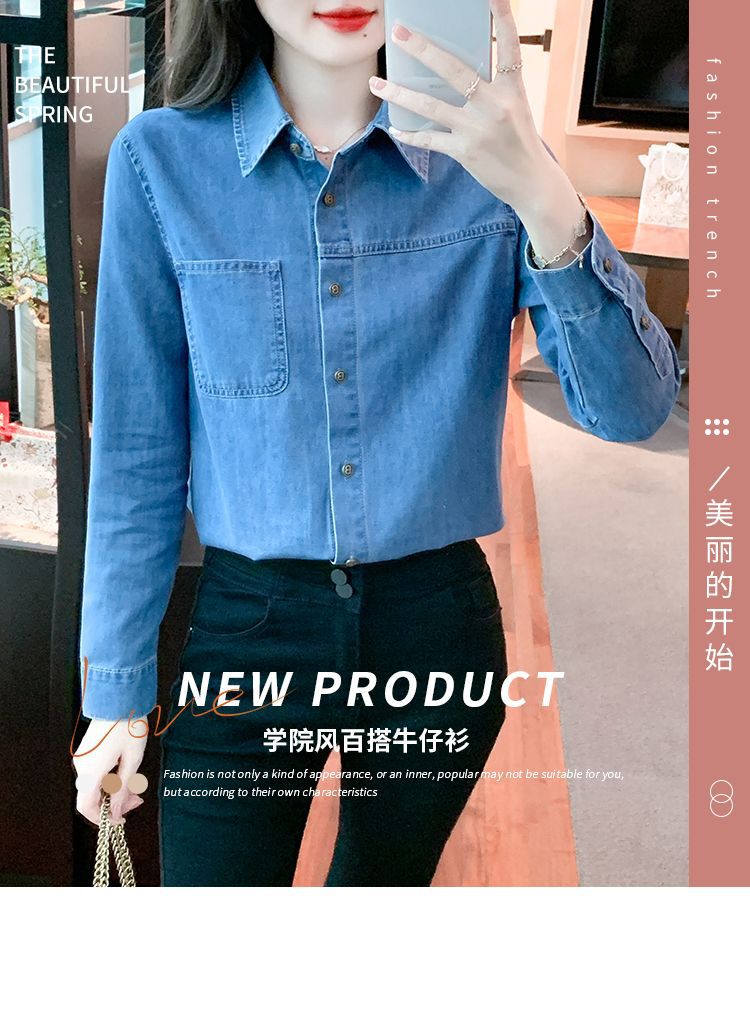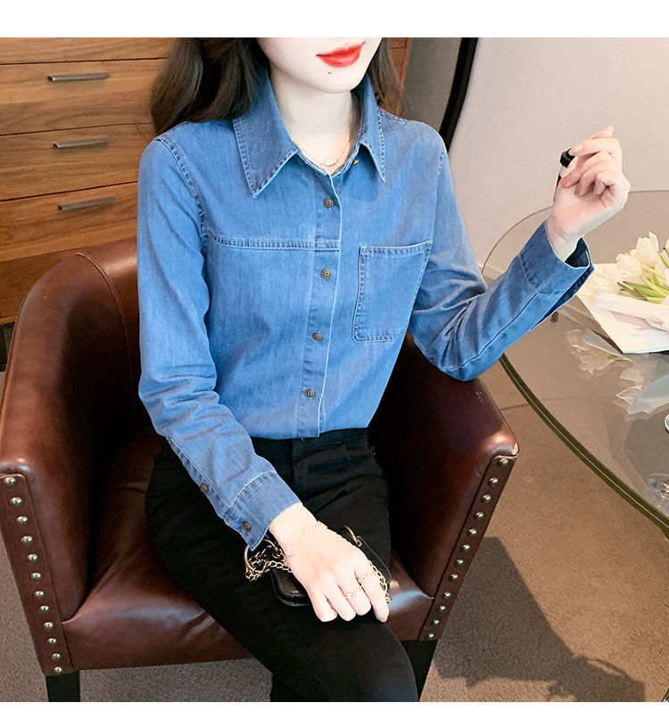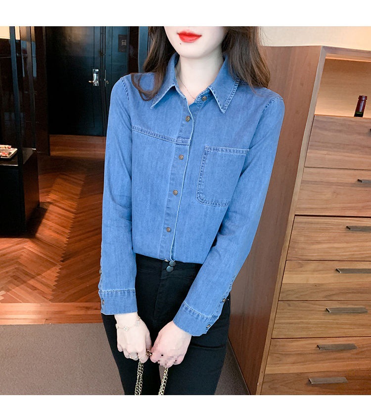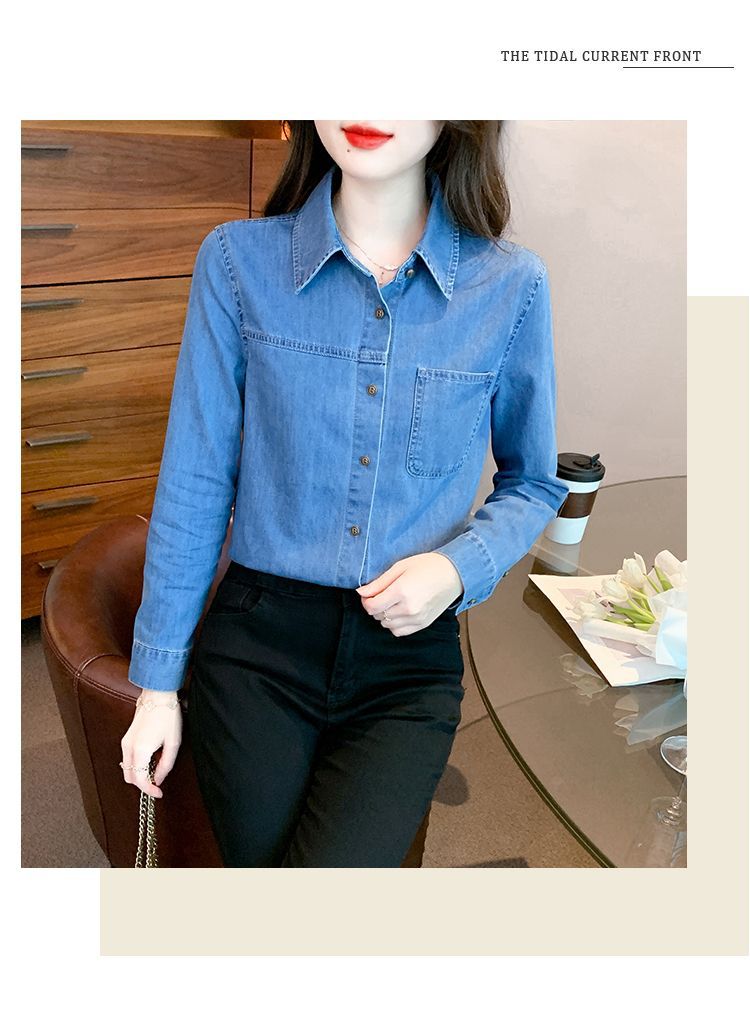 이른 가을 긴 소매 디자인 센스 틈새 데님 셔츠 여성의 봄과 가을 새로운 프랑스 달콤한 세련된 탑스토어 가기