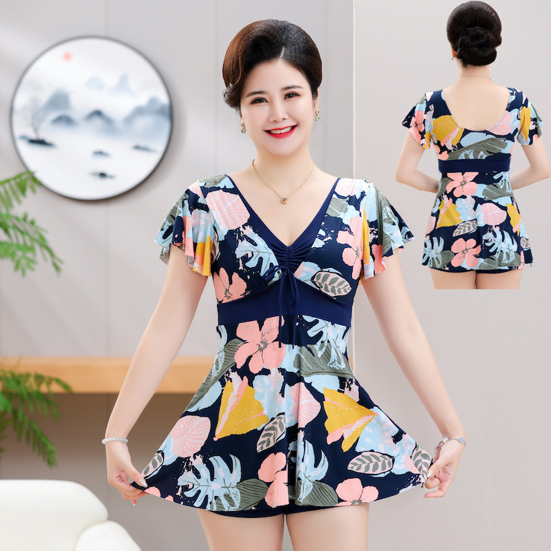 중년 · 노인 수영복 여성 배꼽 덮음 슬리밍 보수 수영복 젊은 어머니의 온천 플러스 사이즈 분할 수영복스토어 가기