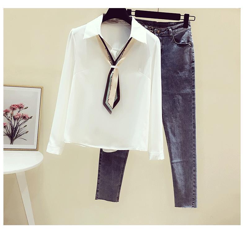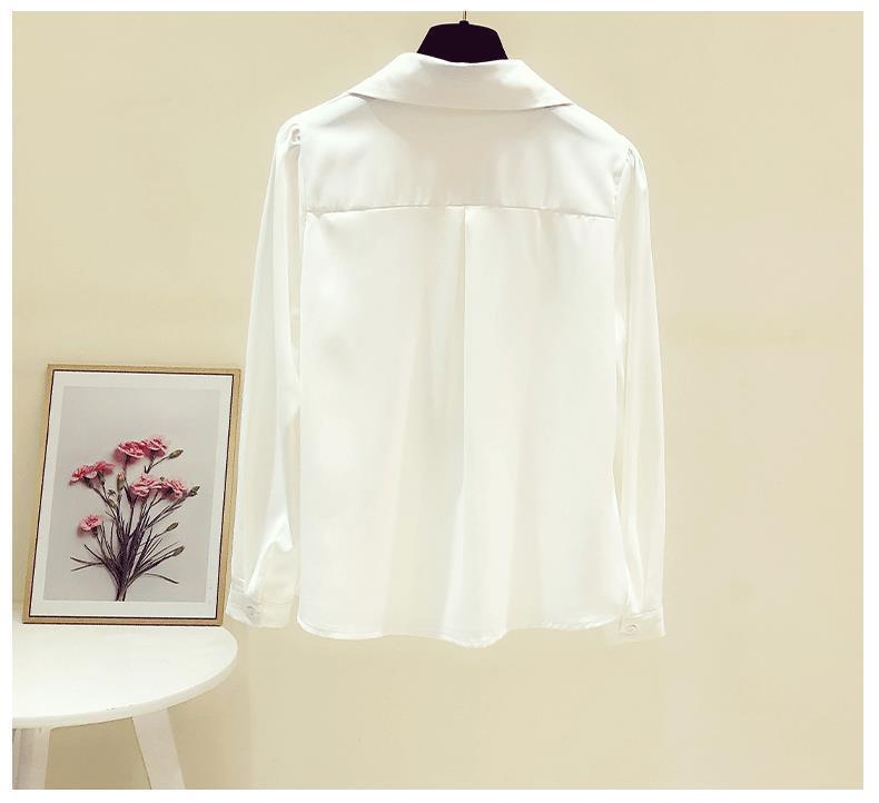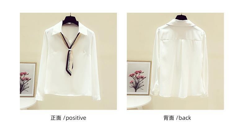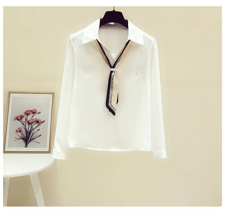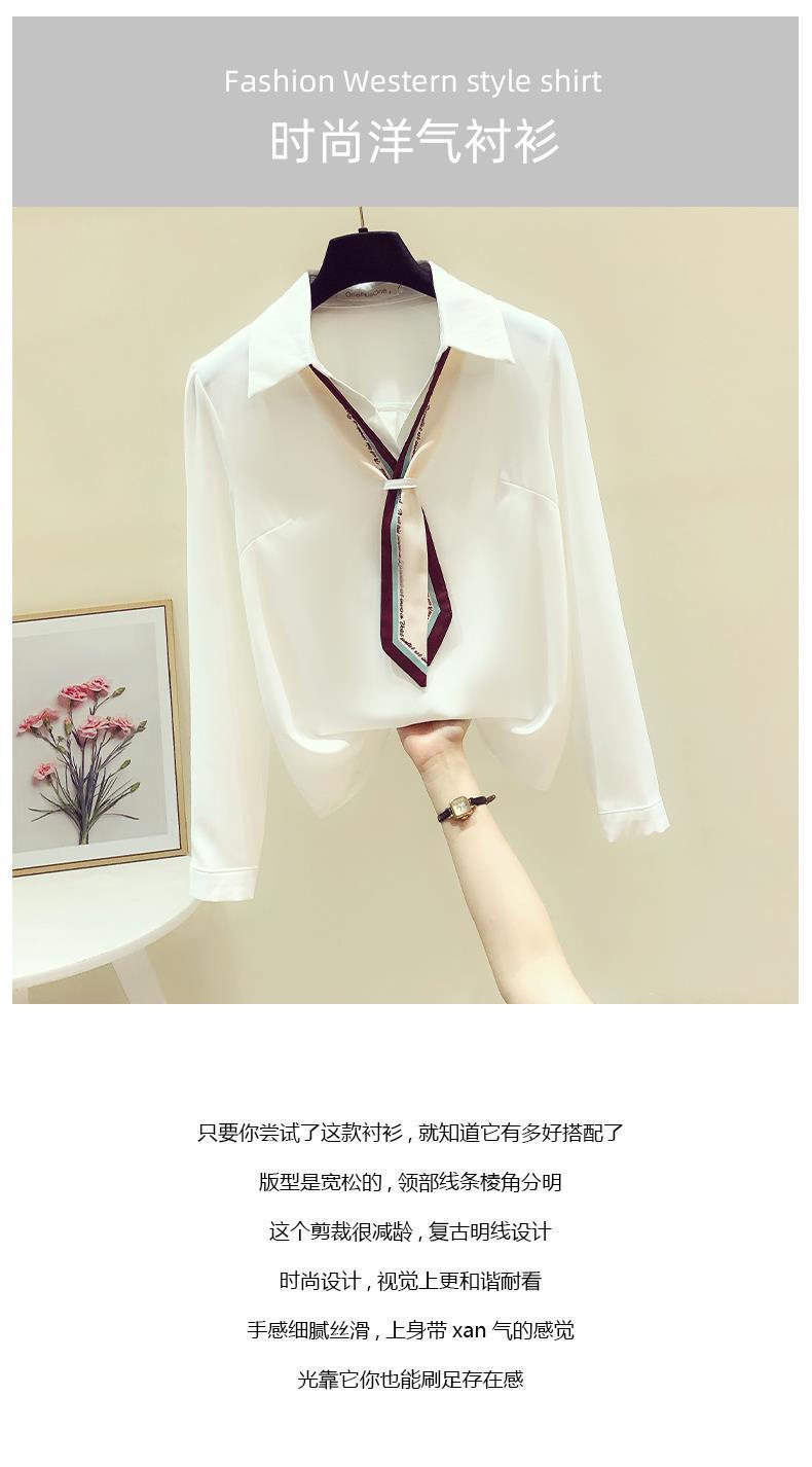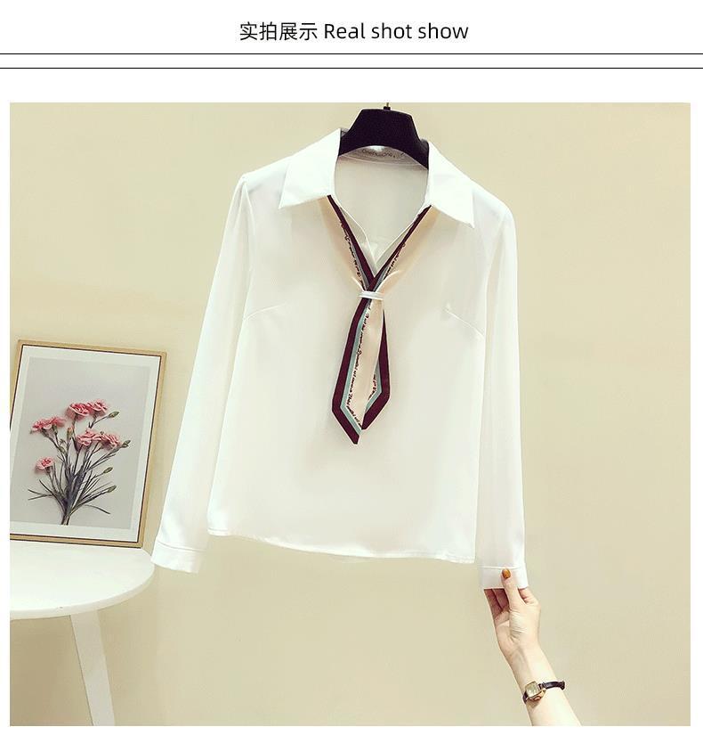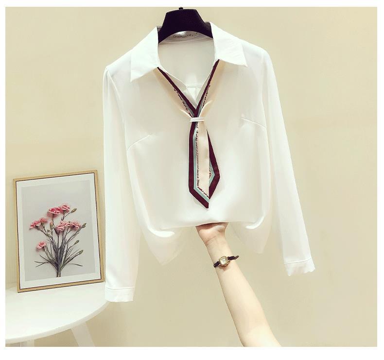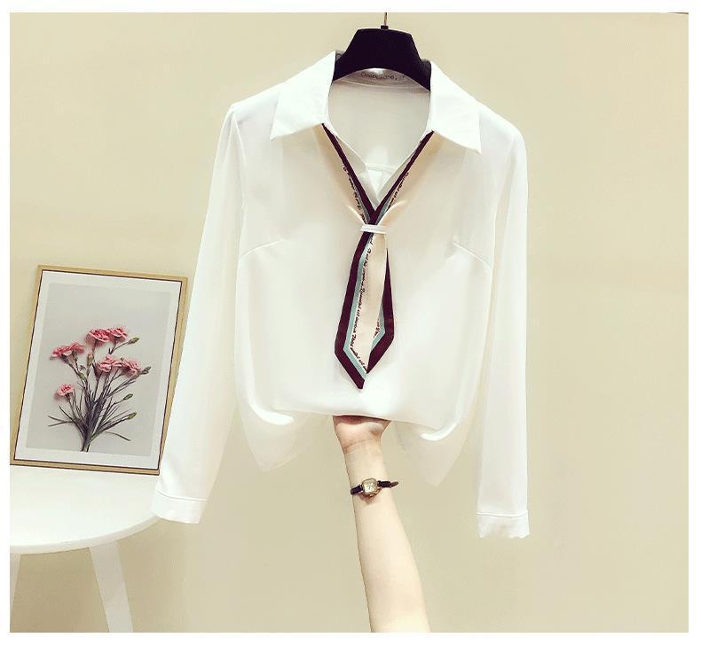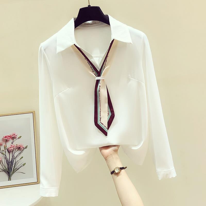 프랑스 가을 새로운 스타일의 리본 흰색 쉬폰 긴 소매 셔츠 여성 디자인 감각 틈새 전문 세련된 탑스토어 가기