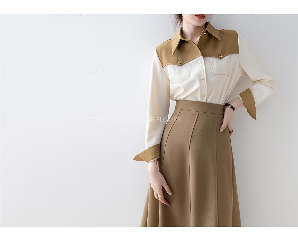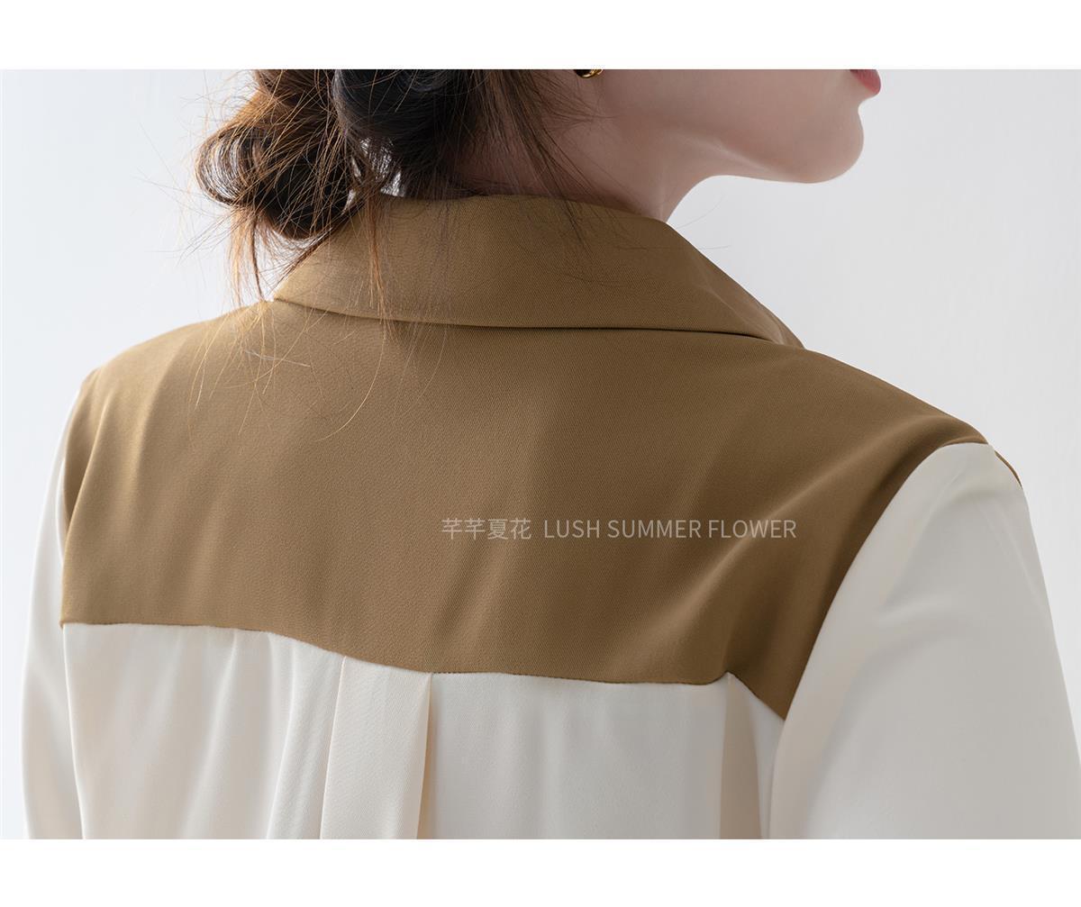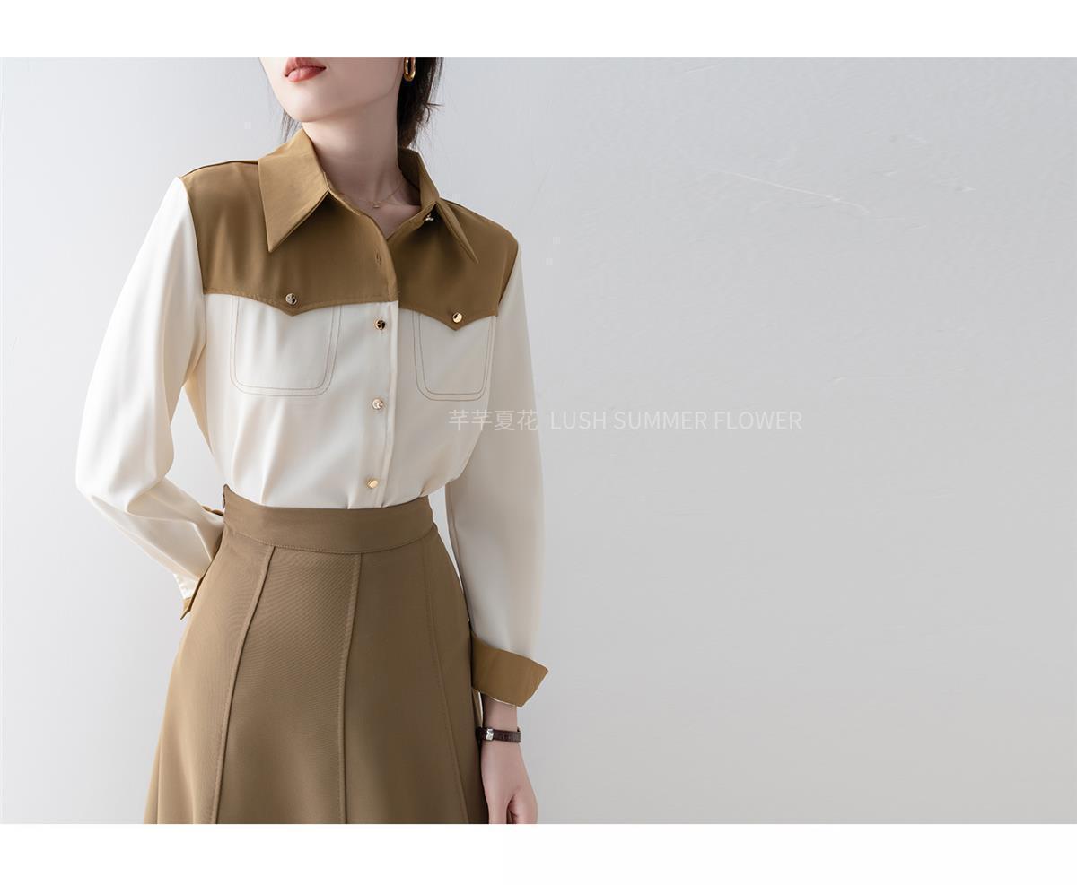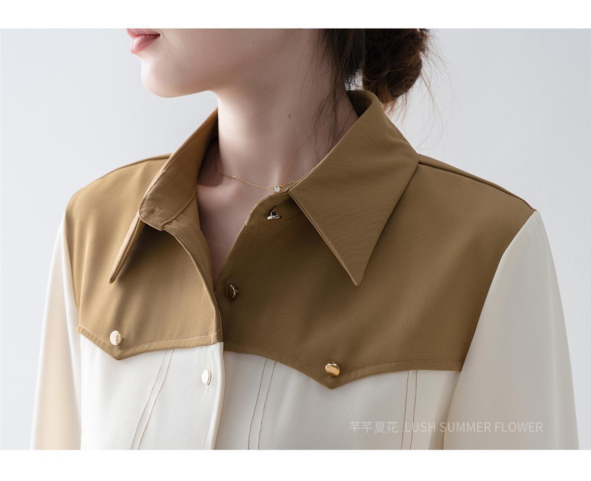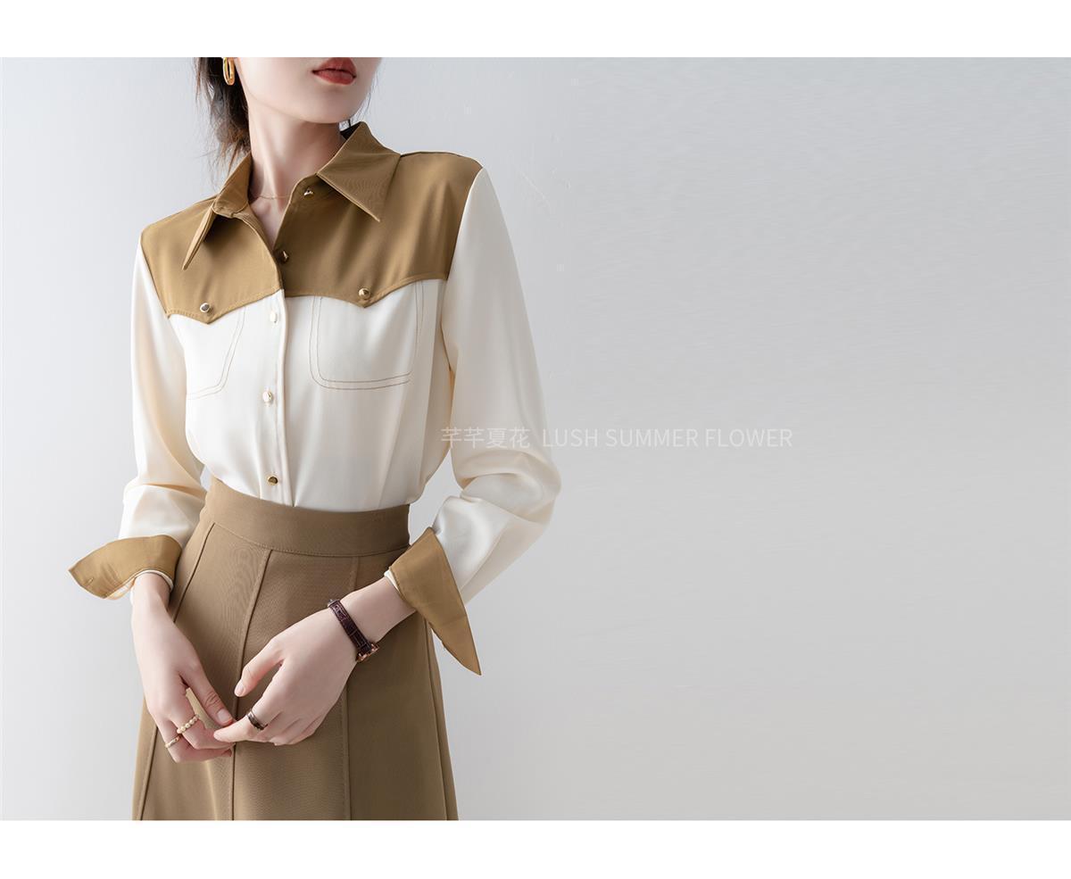 콘트라스트 컬러 스티칭 폴로 칼라 셔츠 년 새해 가을 여성 프랑스 스타일 작은 셔츠 비즈니스 착용 통근 긴 소매 셔츠