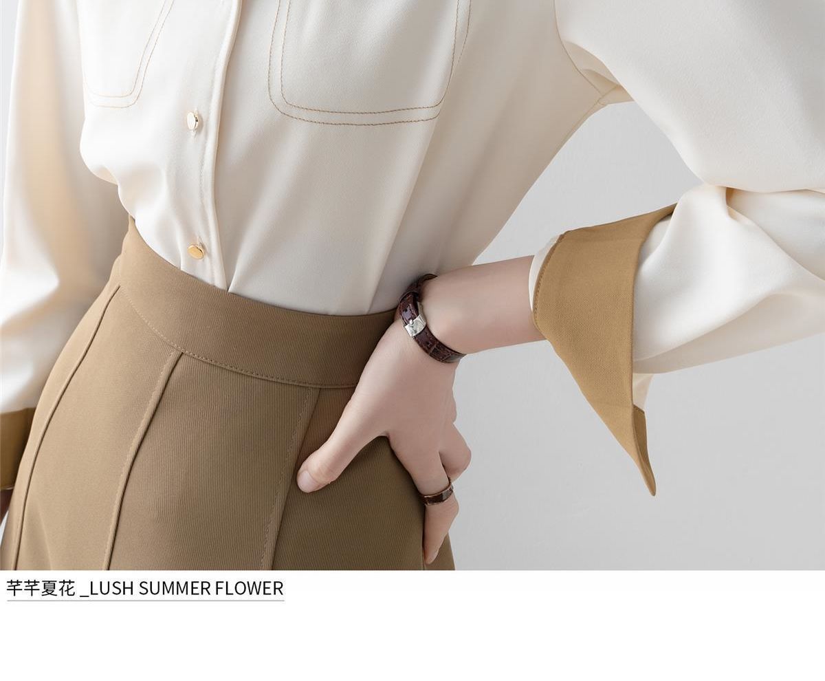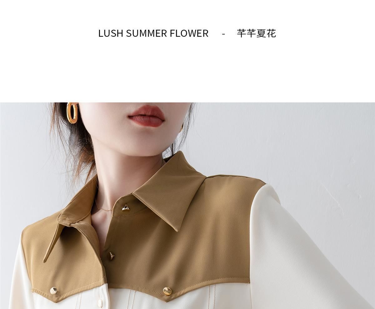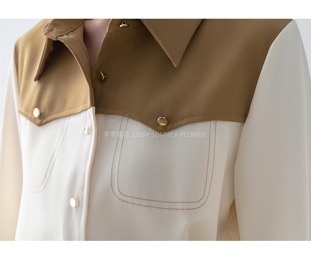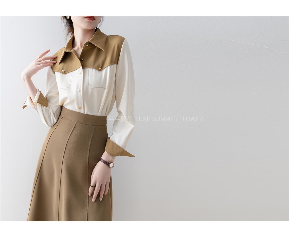 콘트라스트 컬러 스티칭 폴로 칼라 셔츠 년 새해 가을 여성 프랑스 스타일 작은 셔츠 비즈니스 착용 통근 긴 소매 셔츠