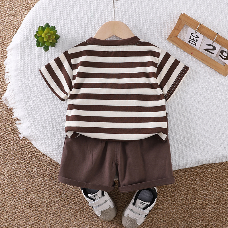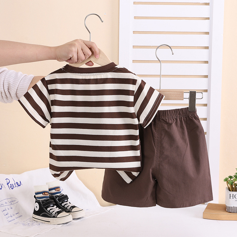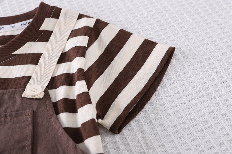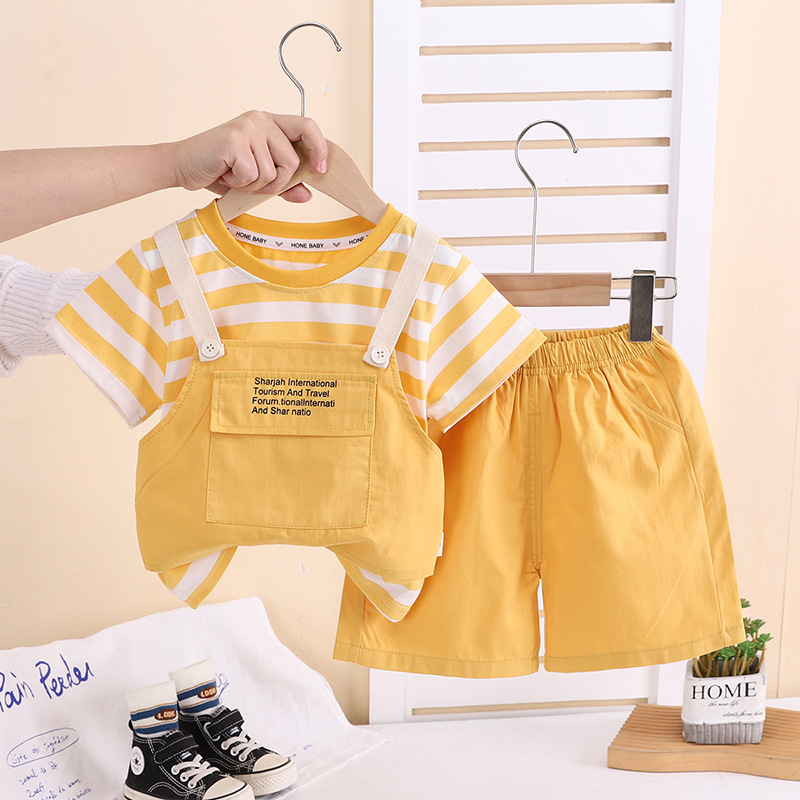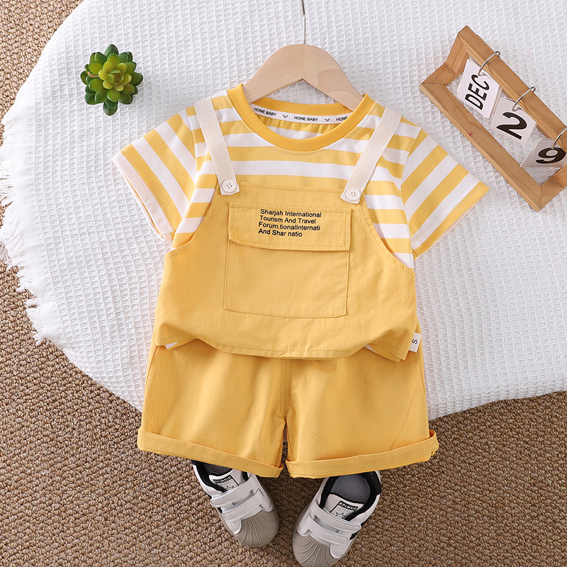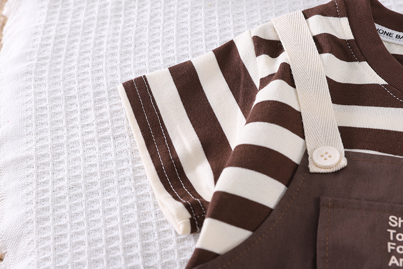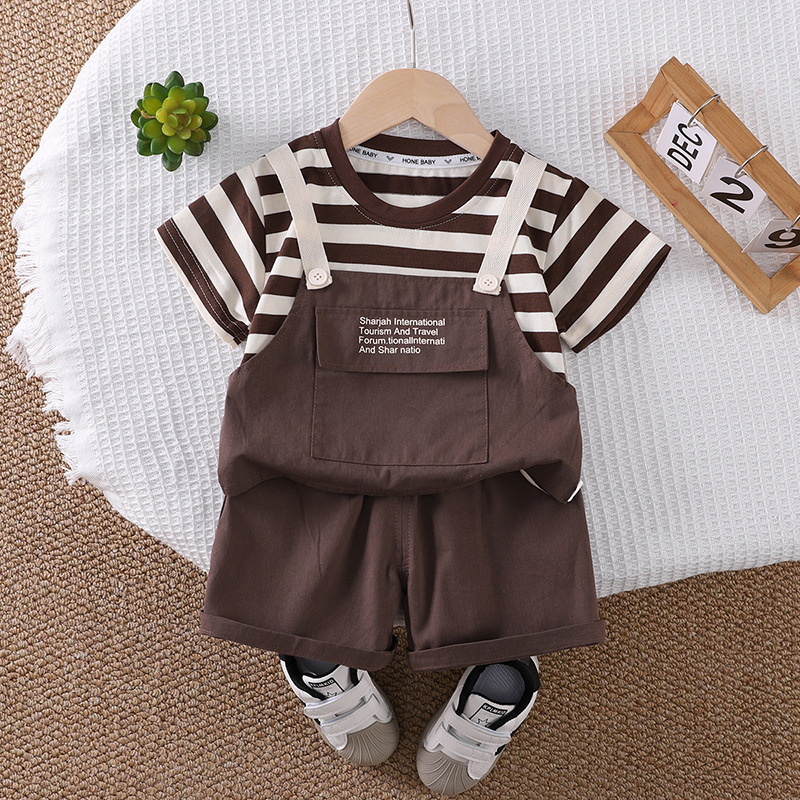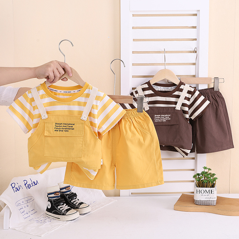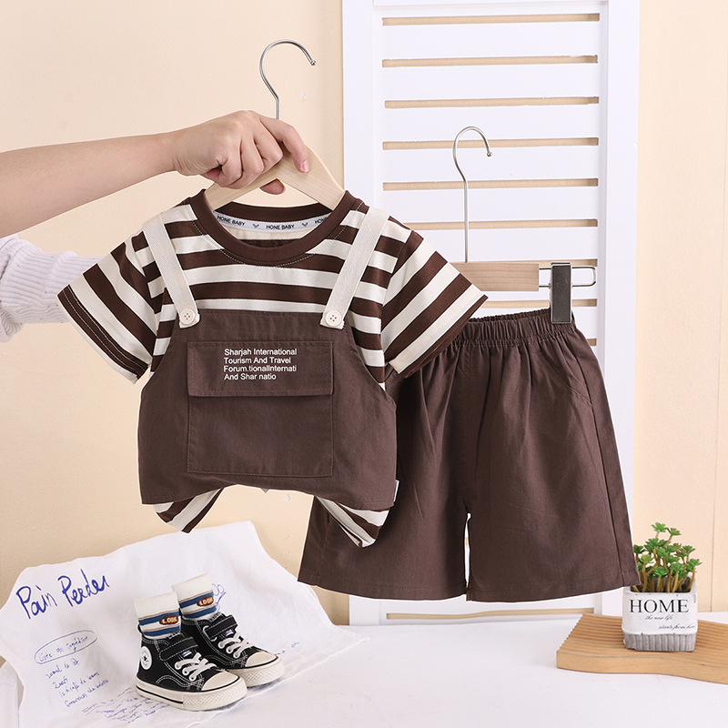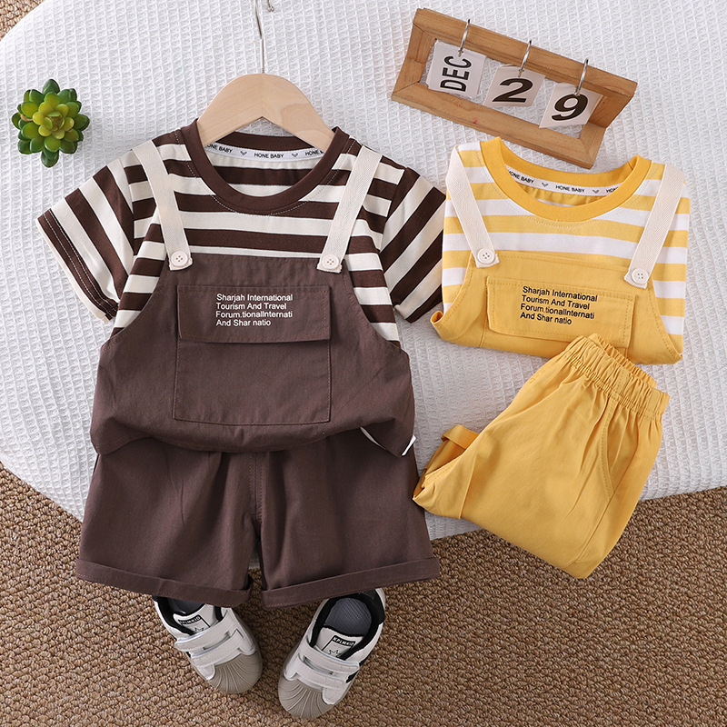 소년 소녀 스트랩 세트 어린이 서양식 중소 어린이 아기 여름 줄무늬 반팔 투피스 유행 옷