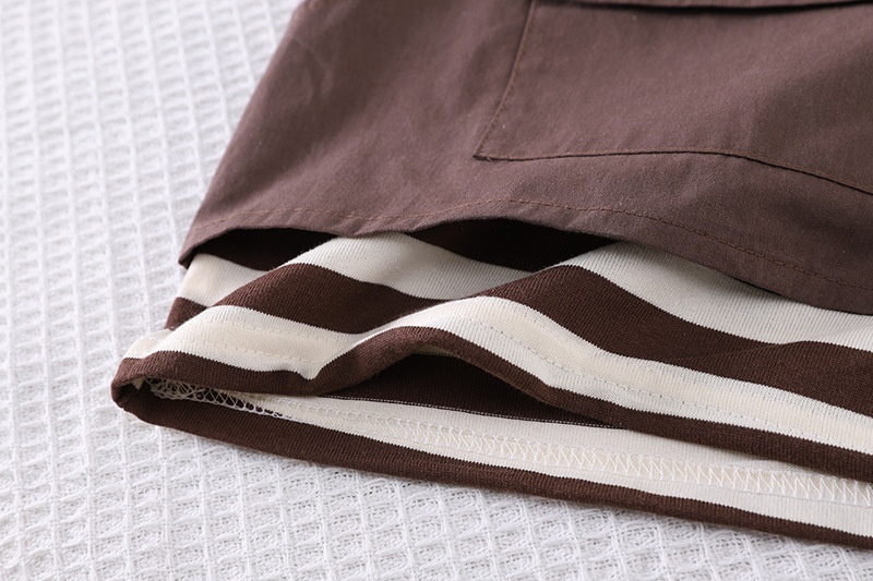• 브라운 XBH 스트라이프 라지 포켓 반팔 슈트