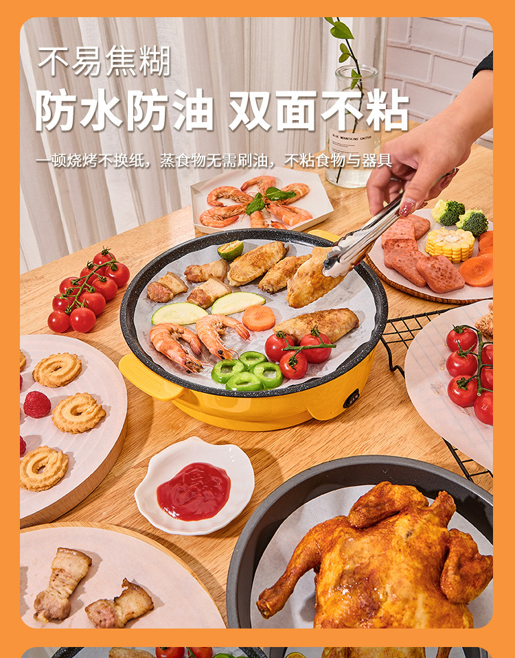 ✅두꺼운 둥근 바베큐 종이 비 스틱 고온 저항하는 바베큐 종이 오일 가정용 베이킹 종이 식품 양면 실리콘 오일