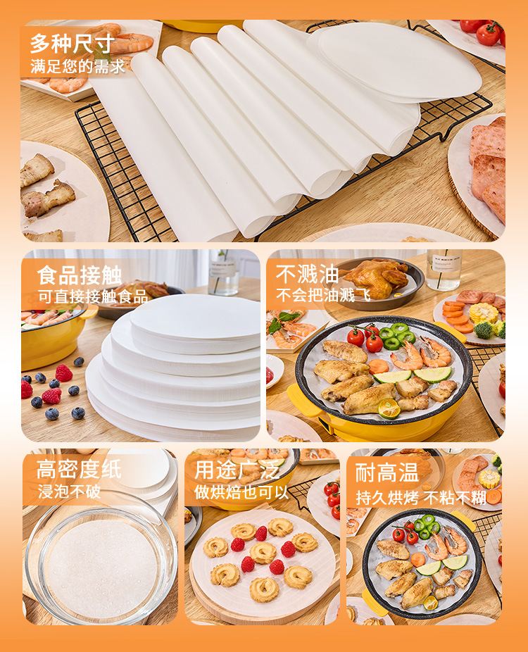 ✅두꺼운 둥근 바베큐 종이 비 스틱 고온 저항하는 바베큐 종이 오일 가정용 베이킹 종이 식품 양면 실리콘 오일스토어 가기