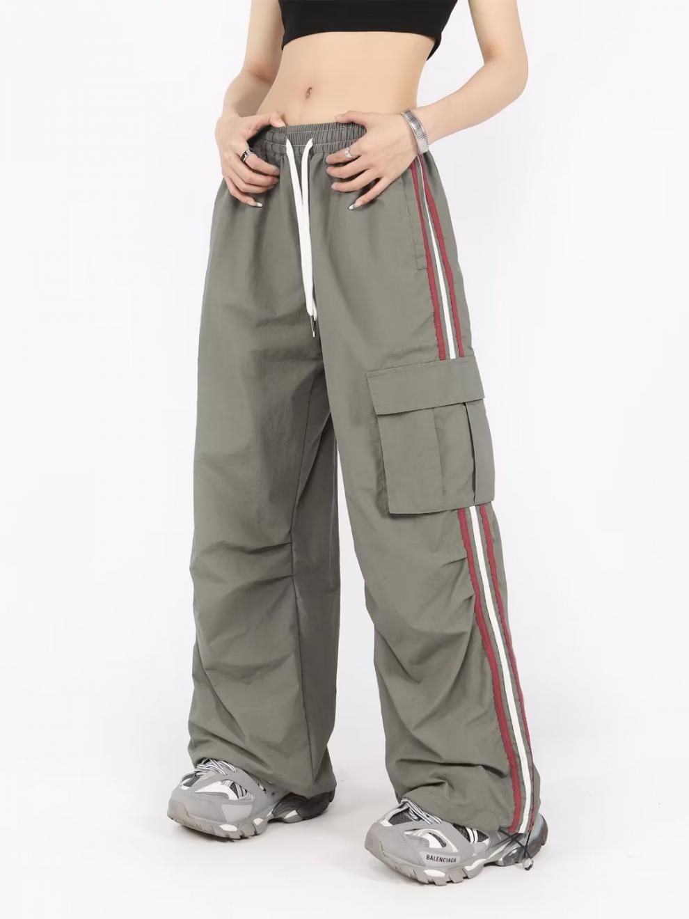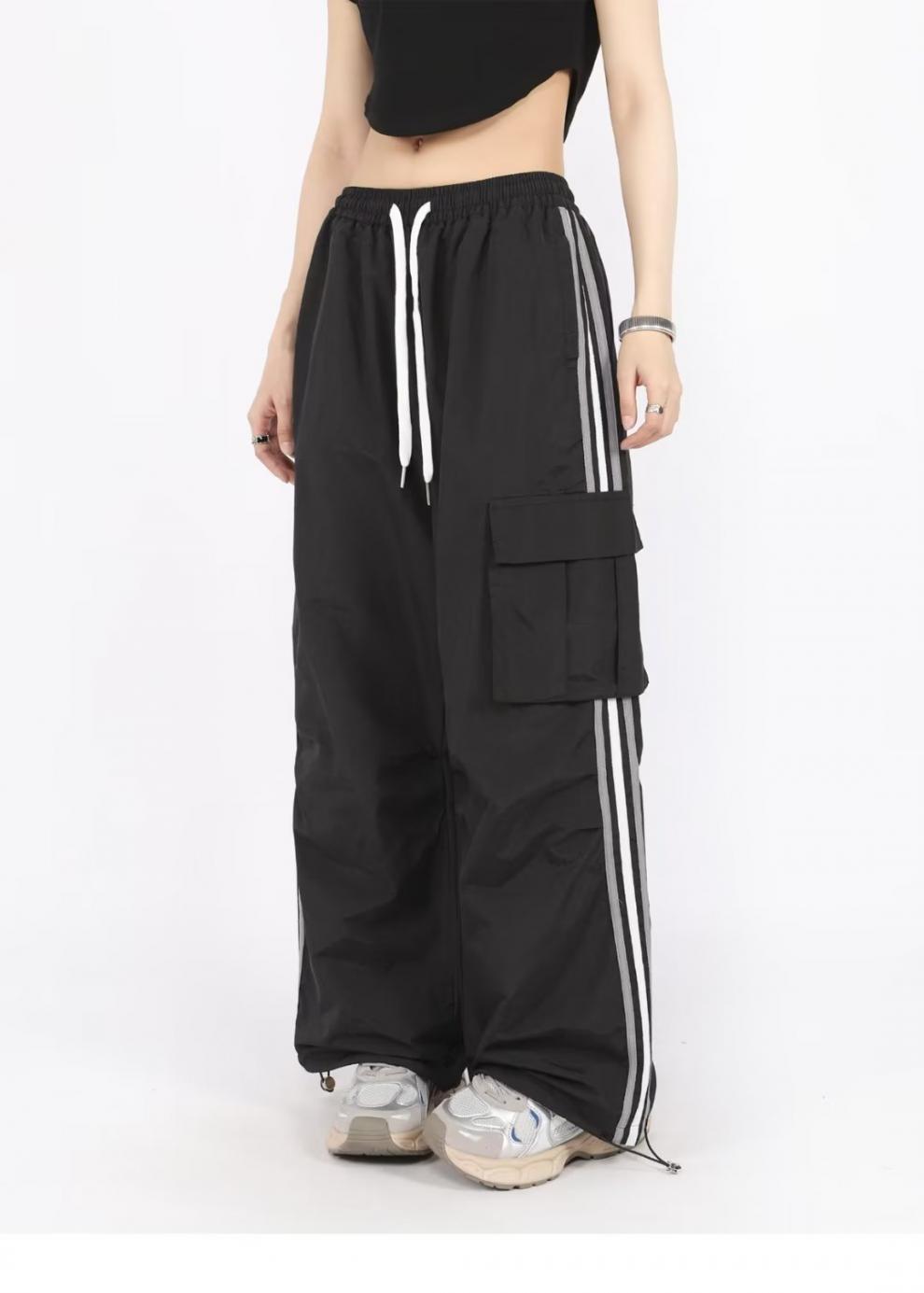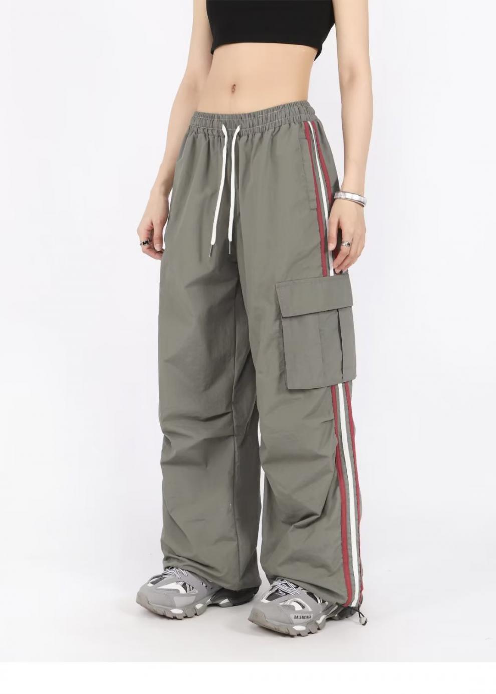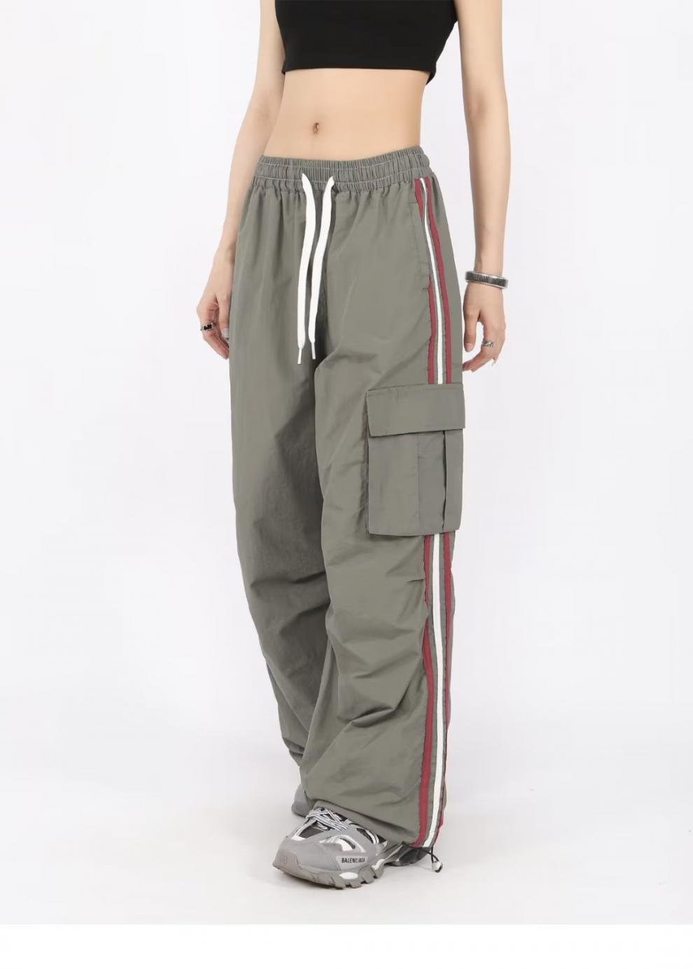 아메리칸 스타일 오버홀 여성 여름 느슨한 스트레이트 와이드 레그 캐주얼 바지 레트로 컬러 스트라이프 스포츠 충전 바지 트렌디스토어 가기