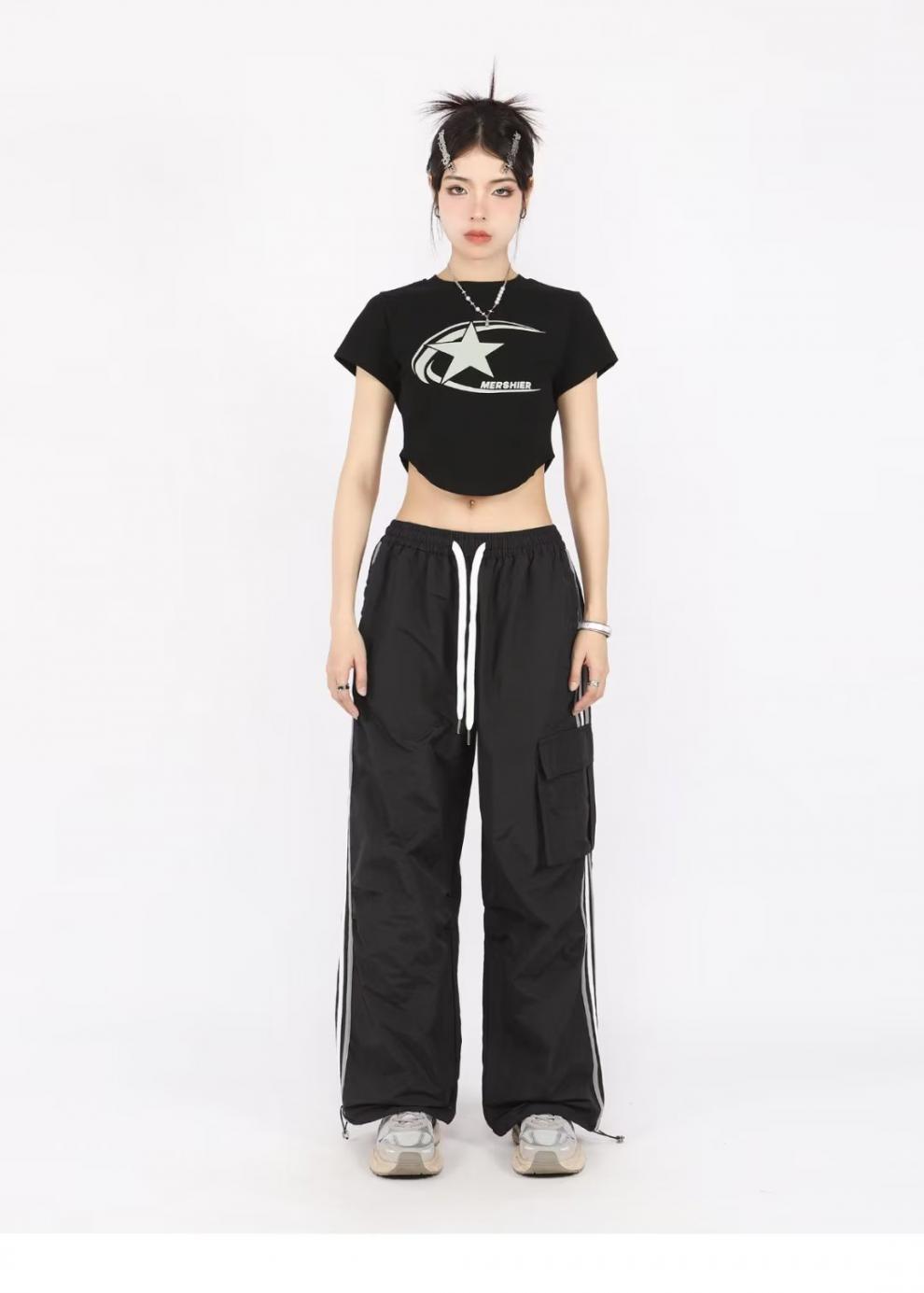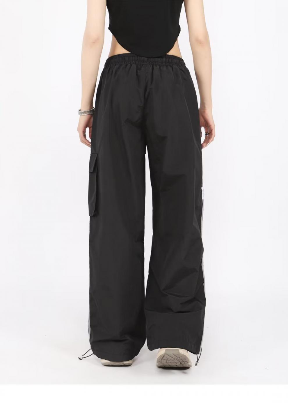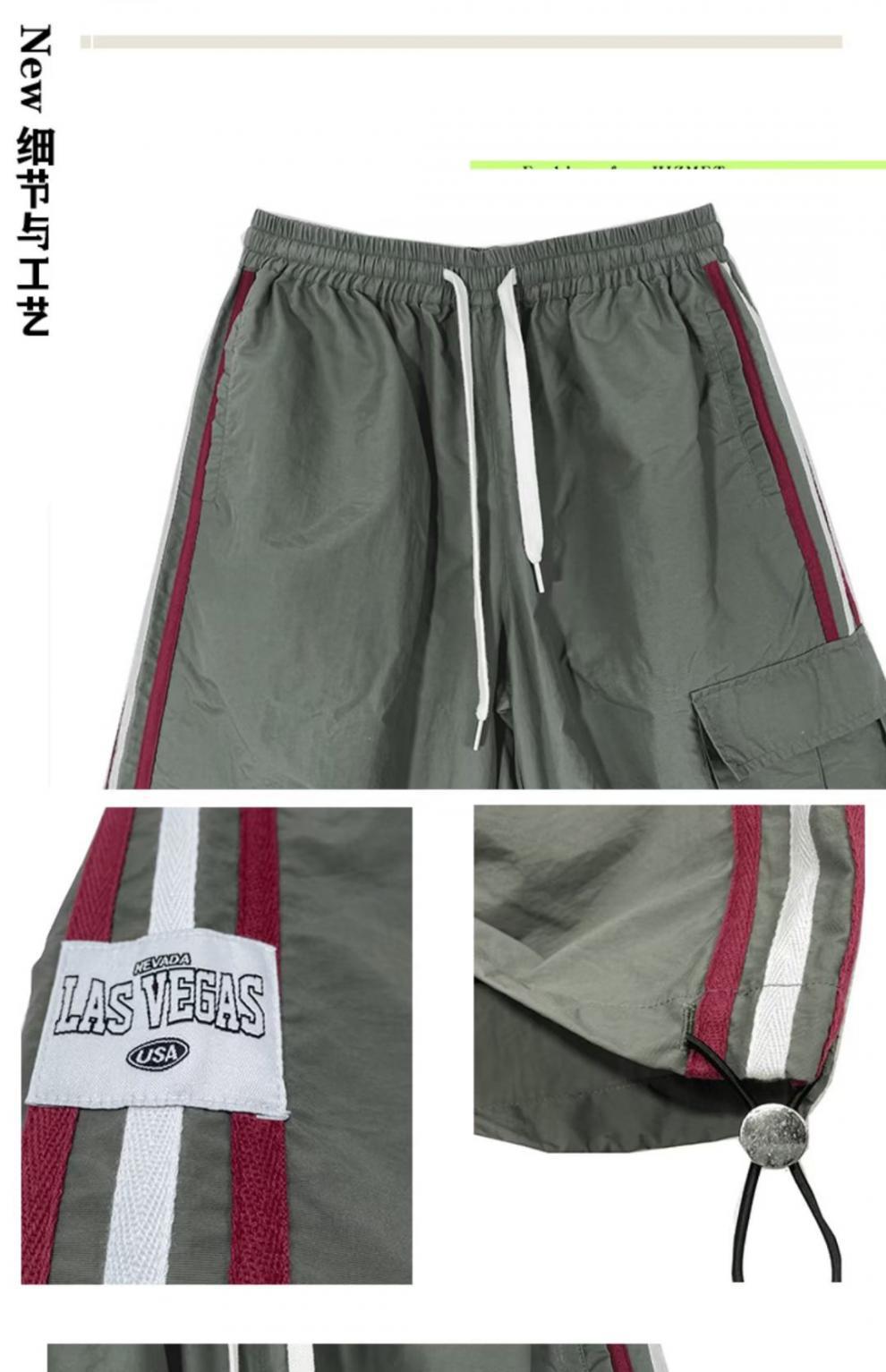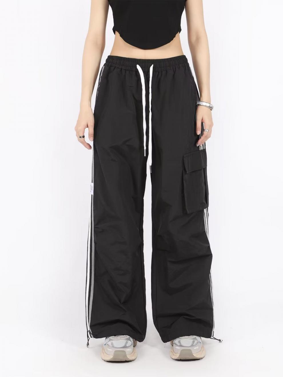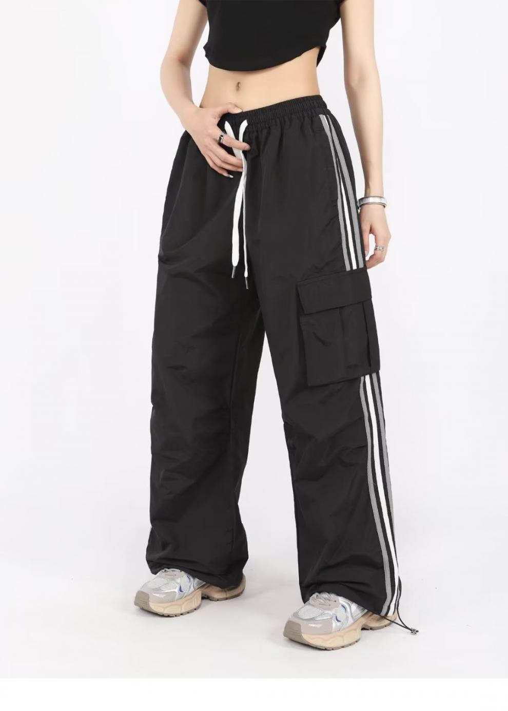 아메리칸 스타일 오버홀 여성 여름 느슨한 스트레이트 와이드 레그 캐주얼 바지 레트로 컬러 스트라이프 스포츠 충전 바지 트렌디스토어 가기