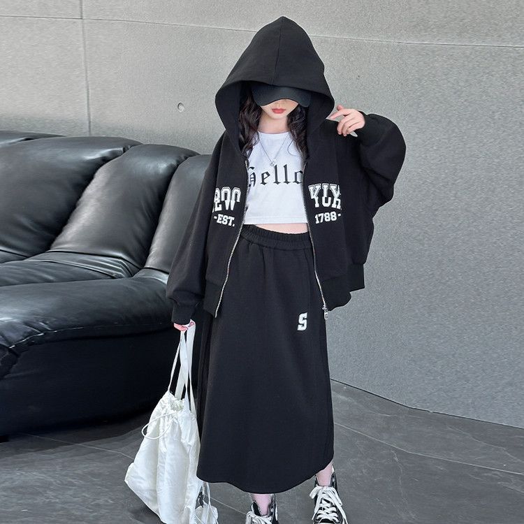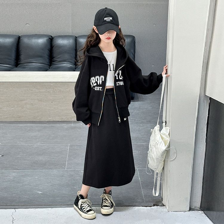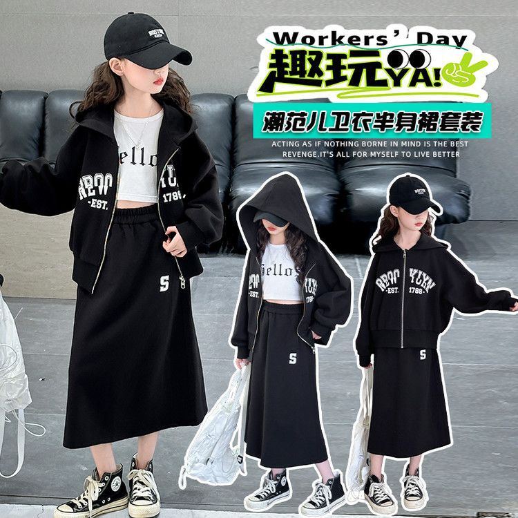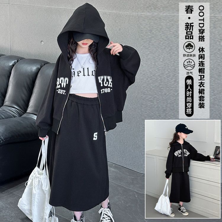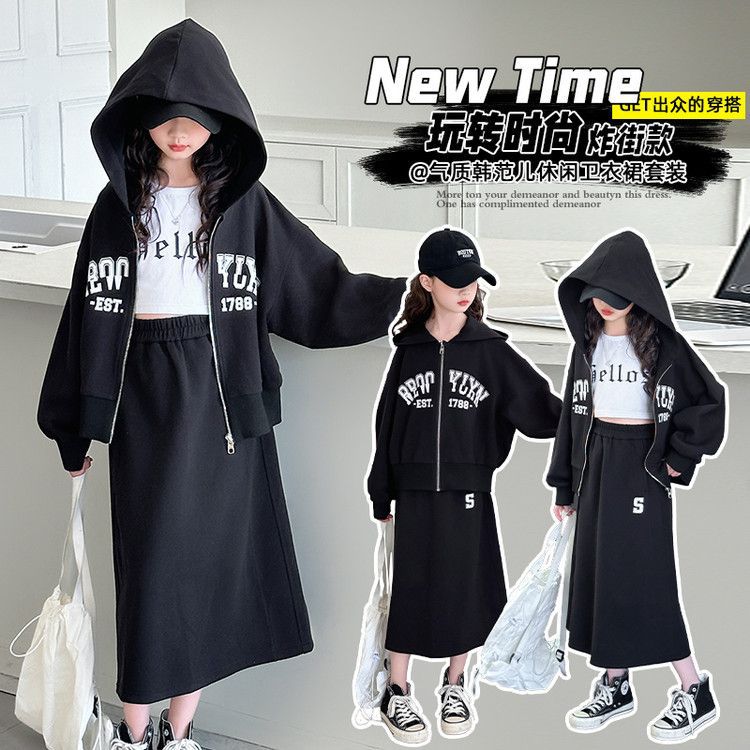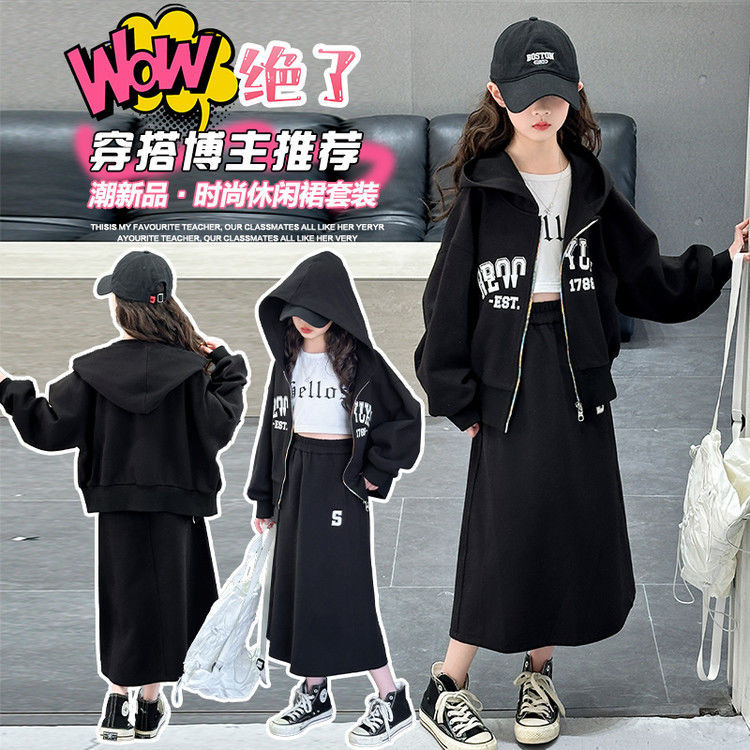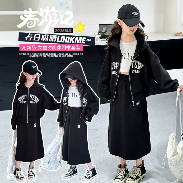 소녀 2025 봄과 가을 새로운 세트 소녀 달콤한 패션 스웨터 스커트 인터넷 인기 투피스 큰 어린이 봄 원피스스토어 가기