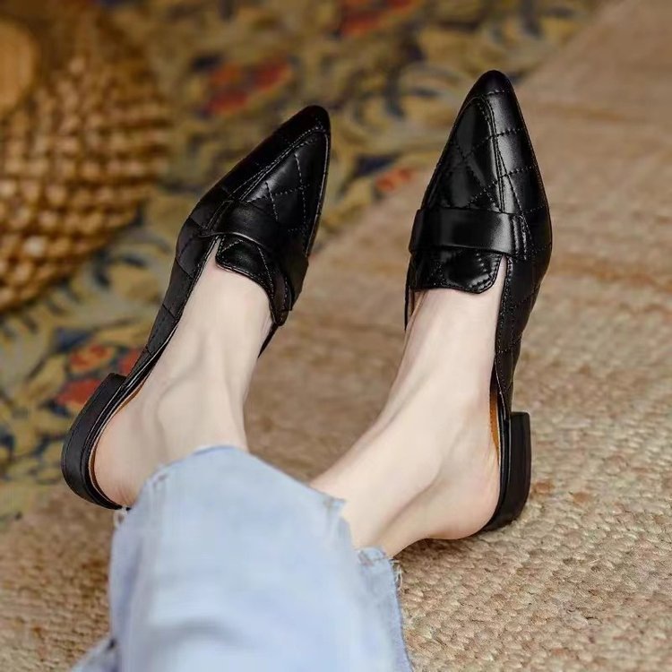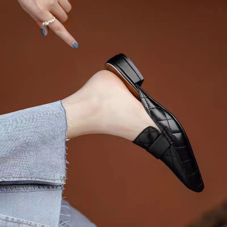Baotou 하프 슬리퍼 여성 아우터웨어 2025 봄과 여름 새로운 포인팅 할로우 힐 청키 힐 니크 뮬러 샌들스토어 가기