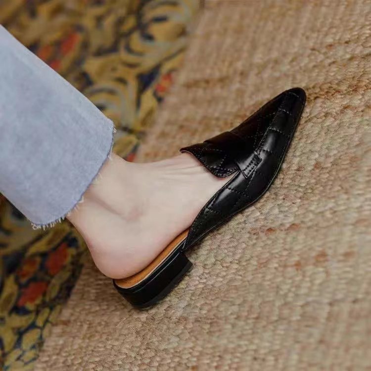 Baotou 하프 슬리퍼 여성 아우터웨어 2025 봄과 여름 새로운 포인팅 할로우 힐 청키 힐 니크 뮬러 샌들