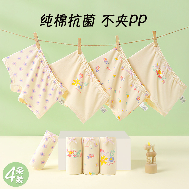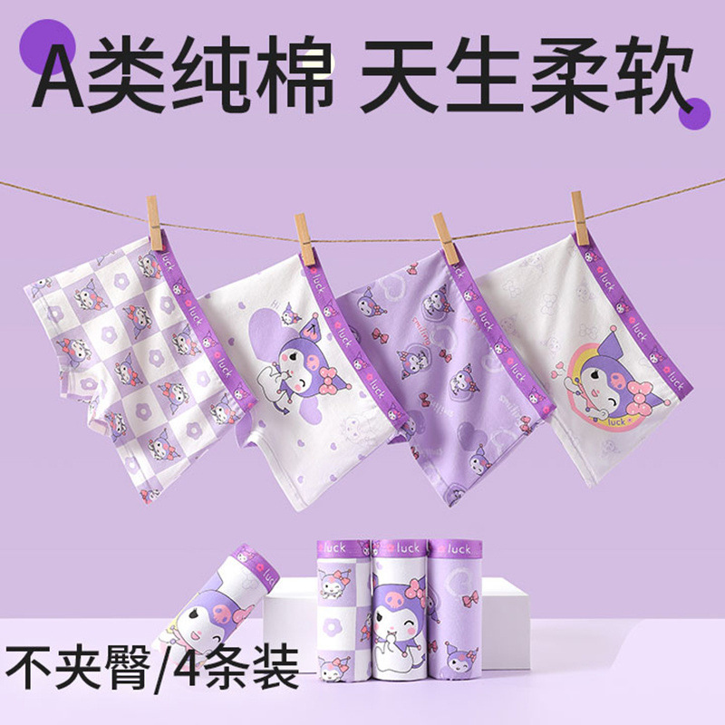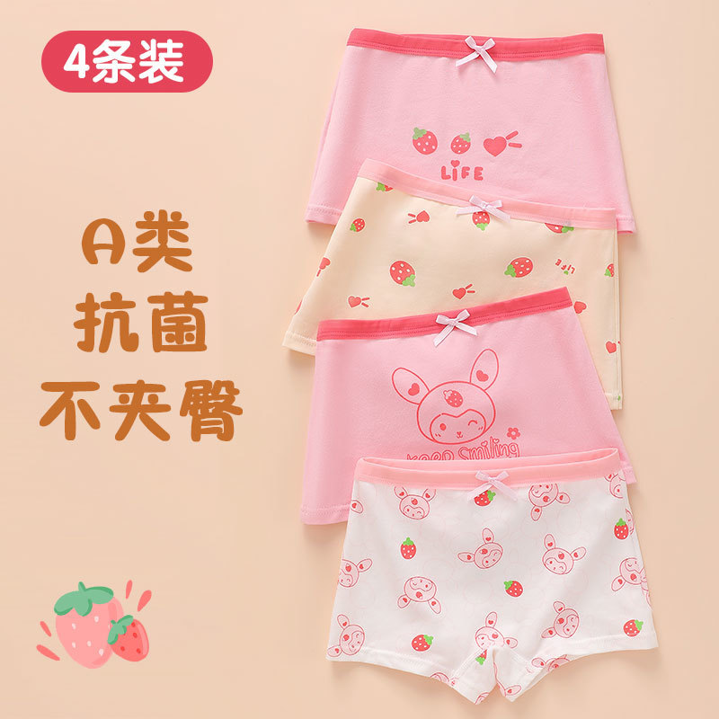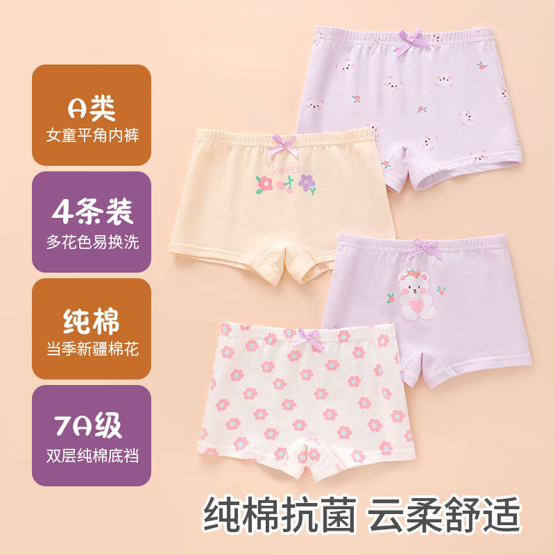 Kulomi Girl의 속옷 Cotton Girl's Children's Baby's Boxer 반바지 Four Corner Middle and Big Children's No Butt스토어 가기