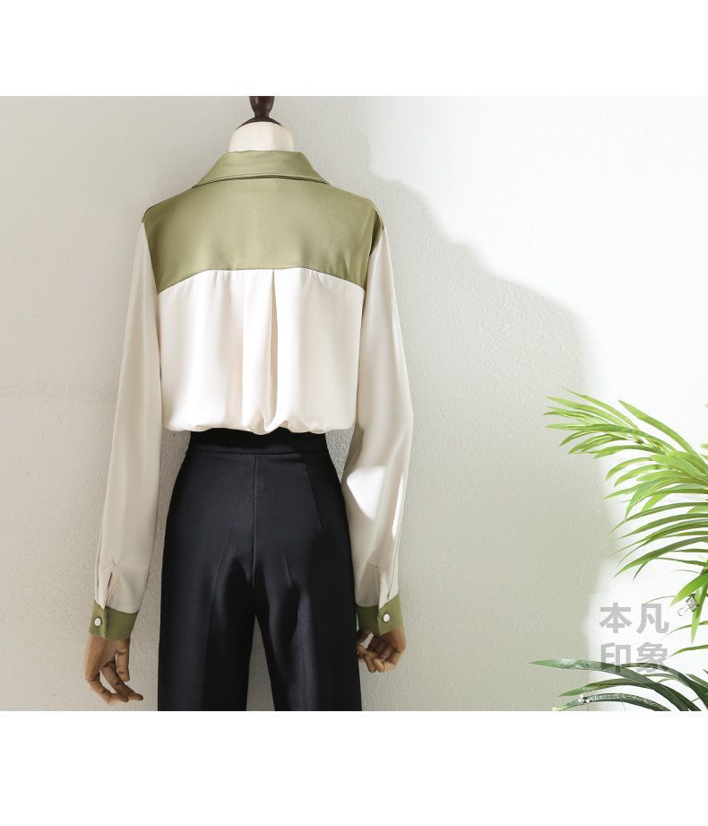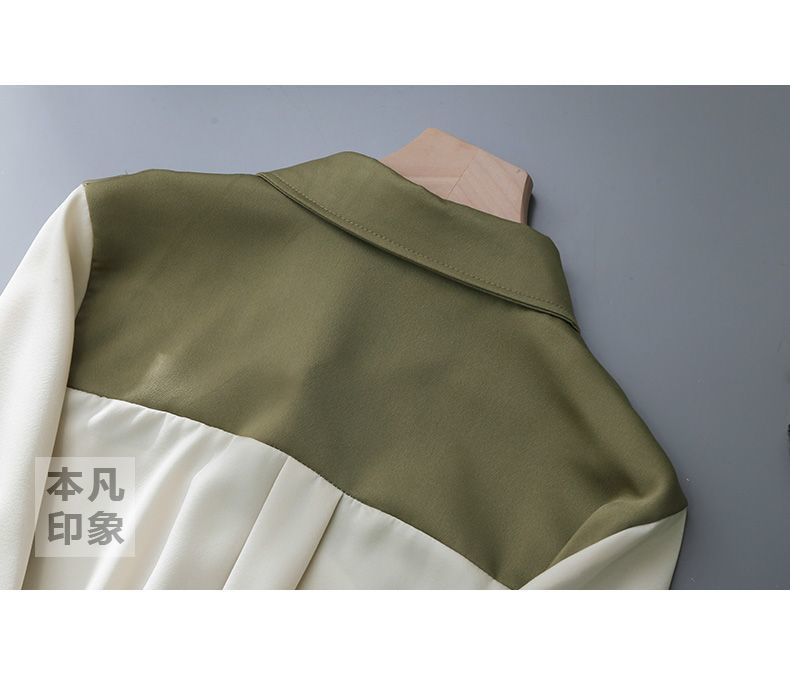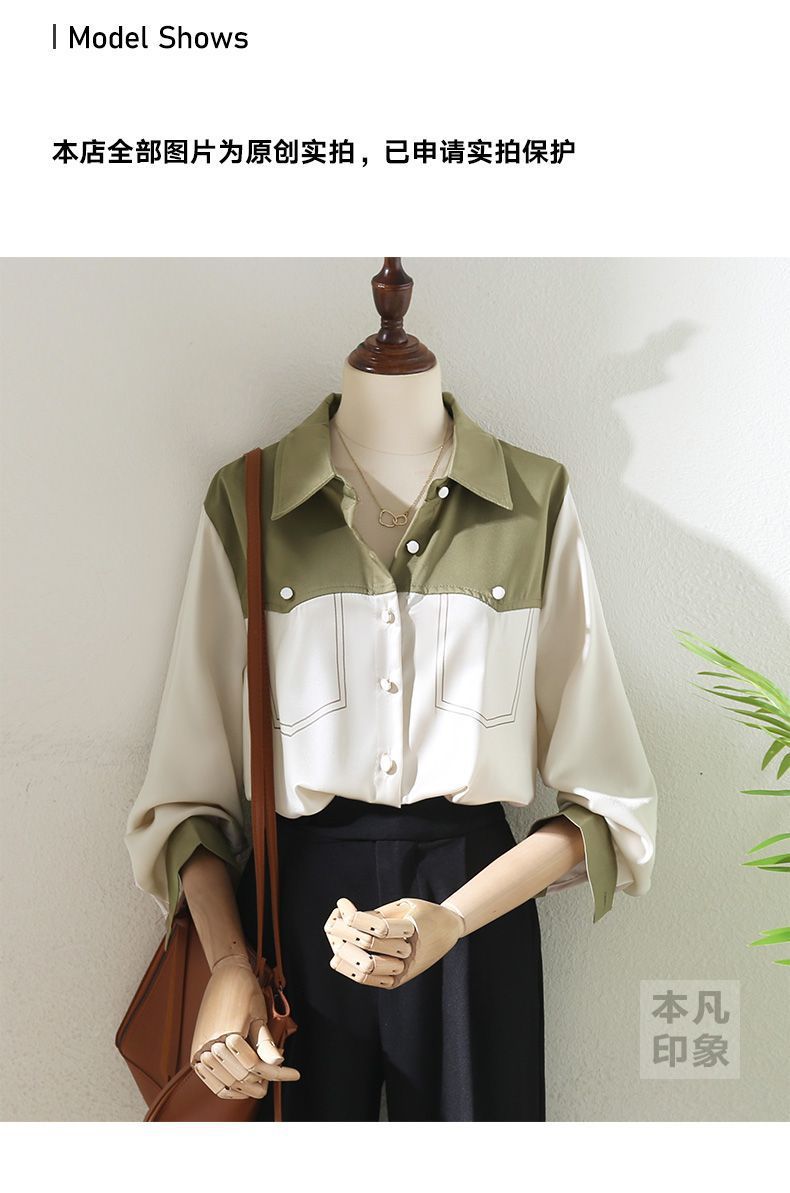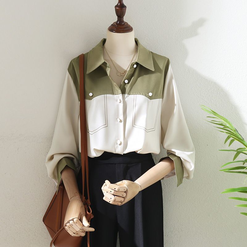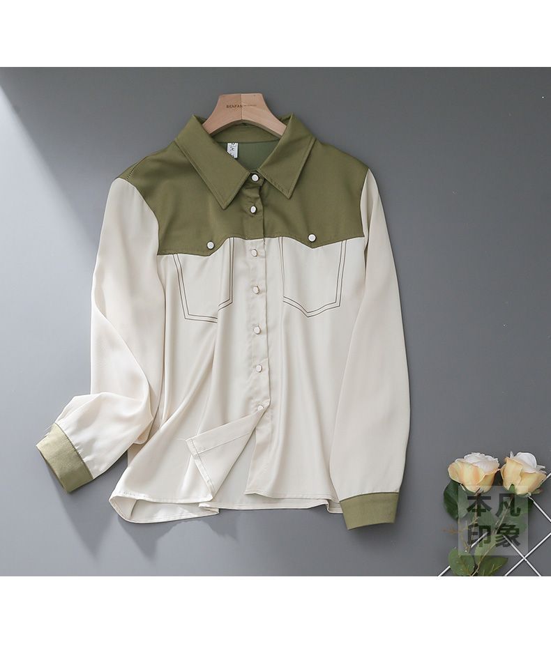 콘트라스트 컬러 스티칭 랩 칼라 셔츠 여성의 봄과 여름 새로운 더블 포켓 디자인 센스 틈새 통근 세련된 톱스토어 가기