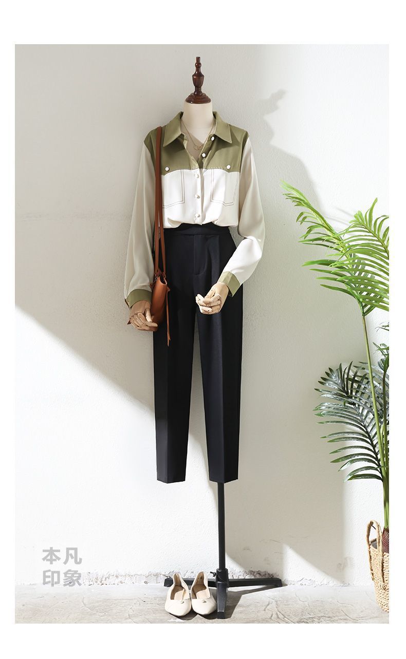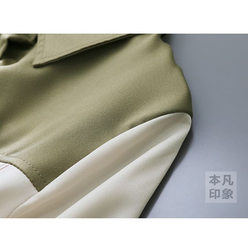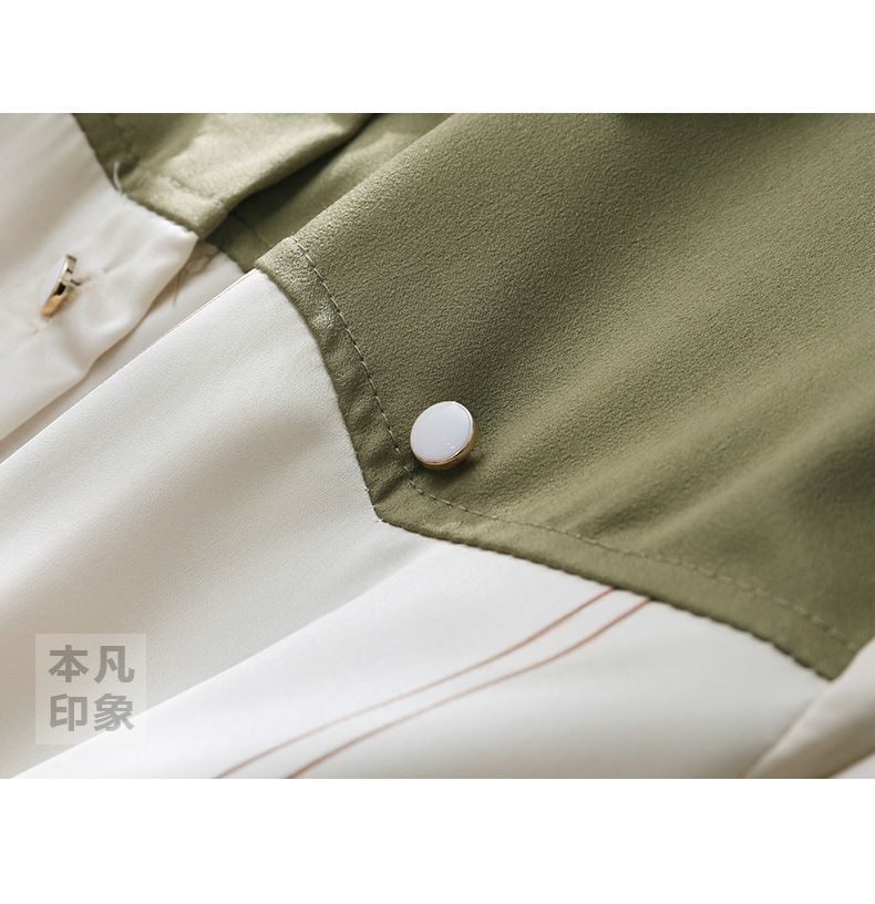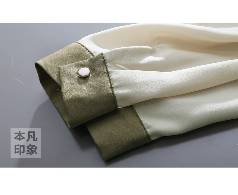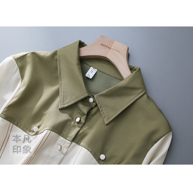 콘트라스트 컬러 스티칭 랩 칼라 셔츠 여성의 봄과 여름 새로운 더블 포켓 디자인 센스 틈새 통근 세련된 톱스토어 가기
