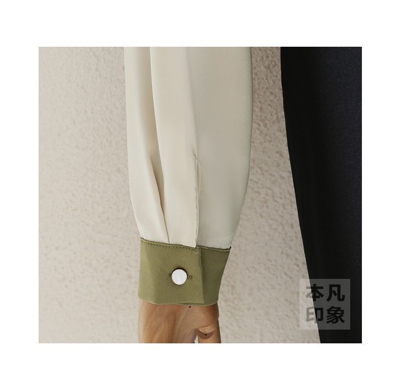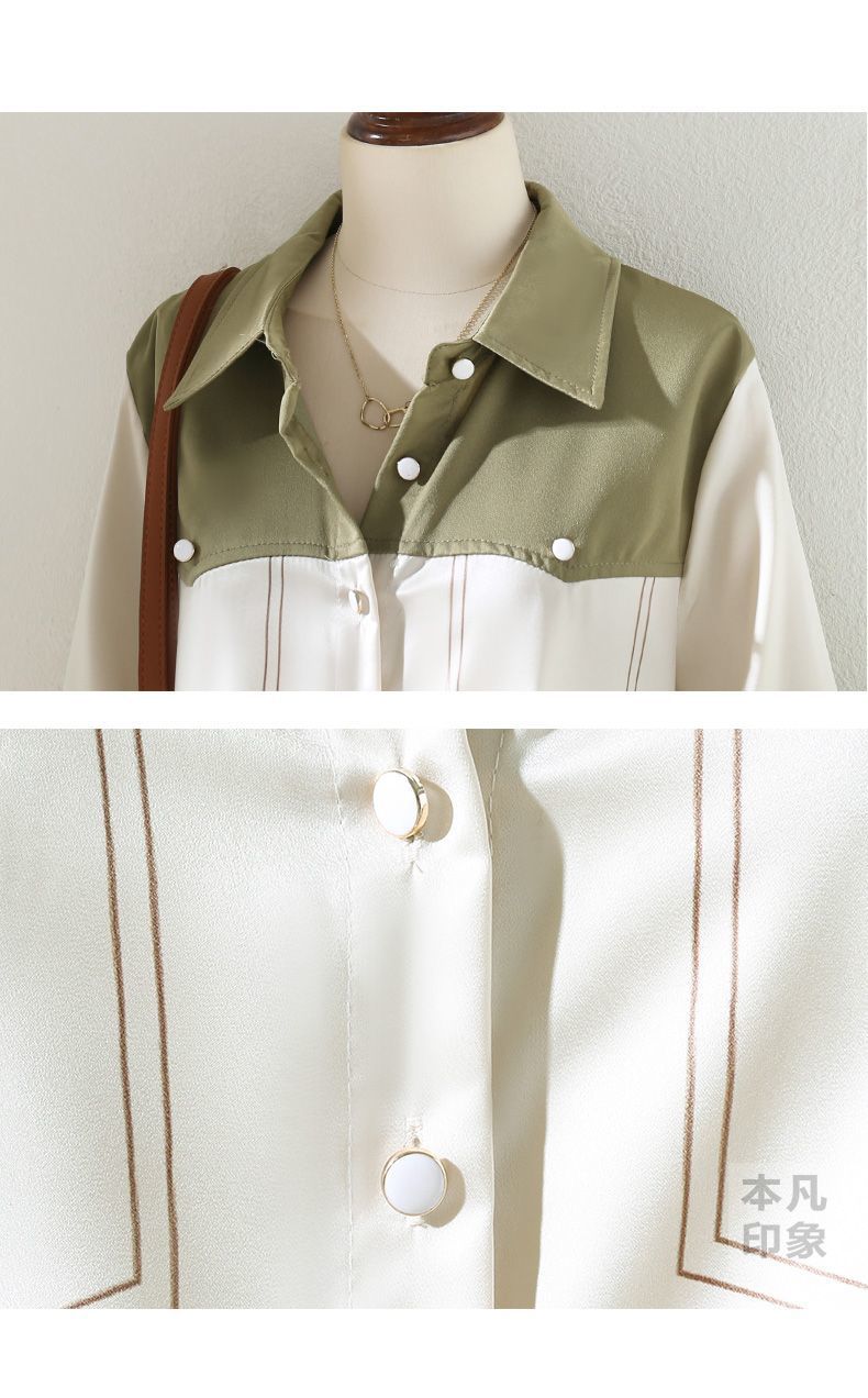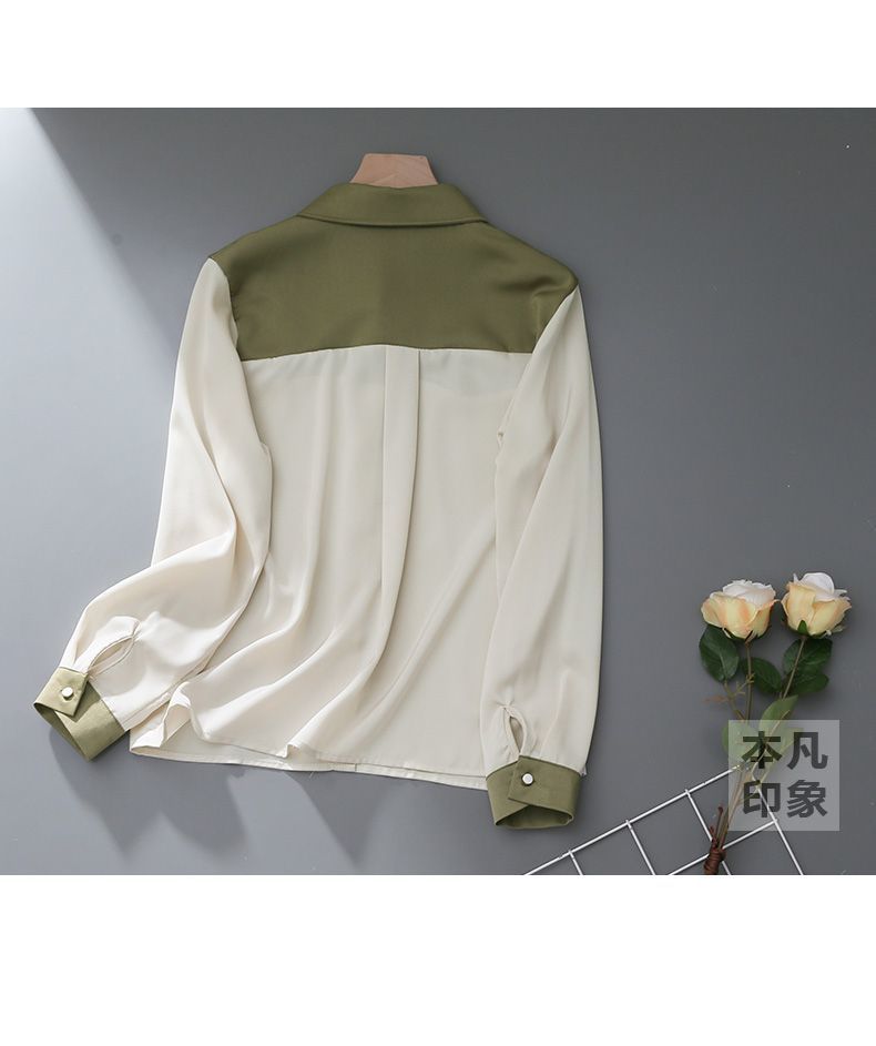 콘트라스트 컬러 스티칭 랩 칼라 셔츠 여성의 봄과 여름 새로운 더블 포켓 디자인 센스 틈새 통근 세련된 톱