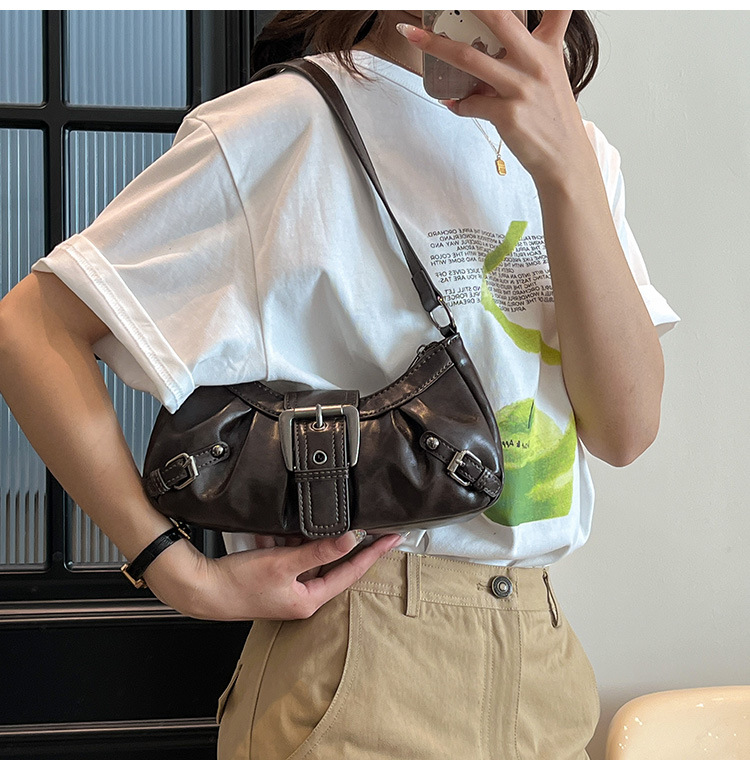 간단하고 트렌디 한 새로운 주름 2025 봄 솔리드 컬러 질감 대용량 캐주얼 언더암 숄더 작은 스퀘어 여성용 가방스토어 가기