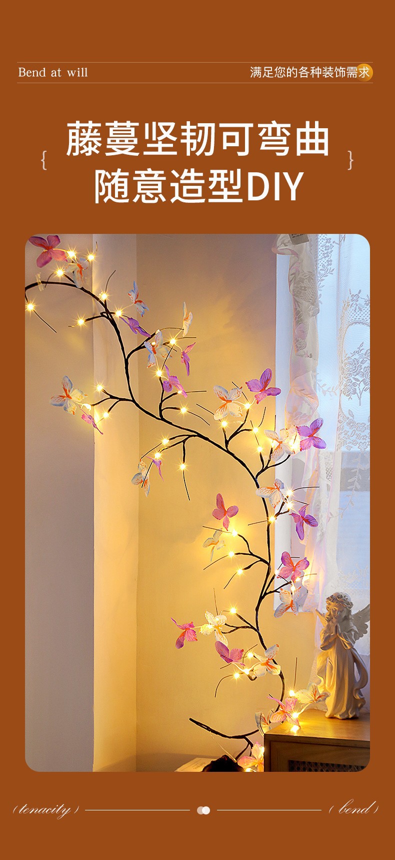 국경 LED 나비 나무 등나무 램프 구부릴 수있는 모양 복숭아 꽃 벚꽃 등나무 램프 메이플 리프 마카롱 로즈 램프스토어 가기