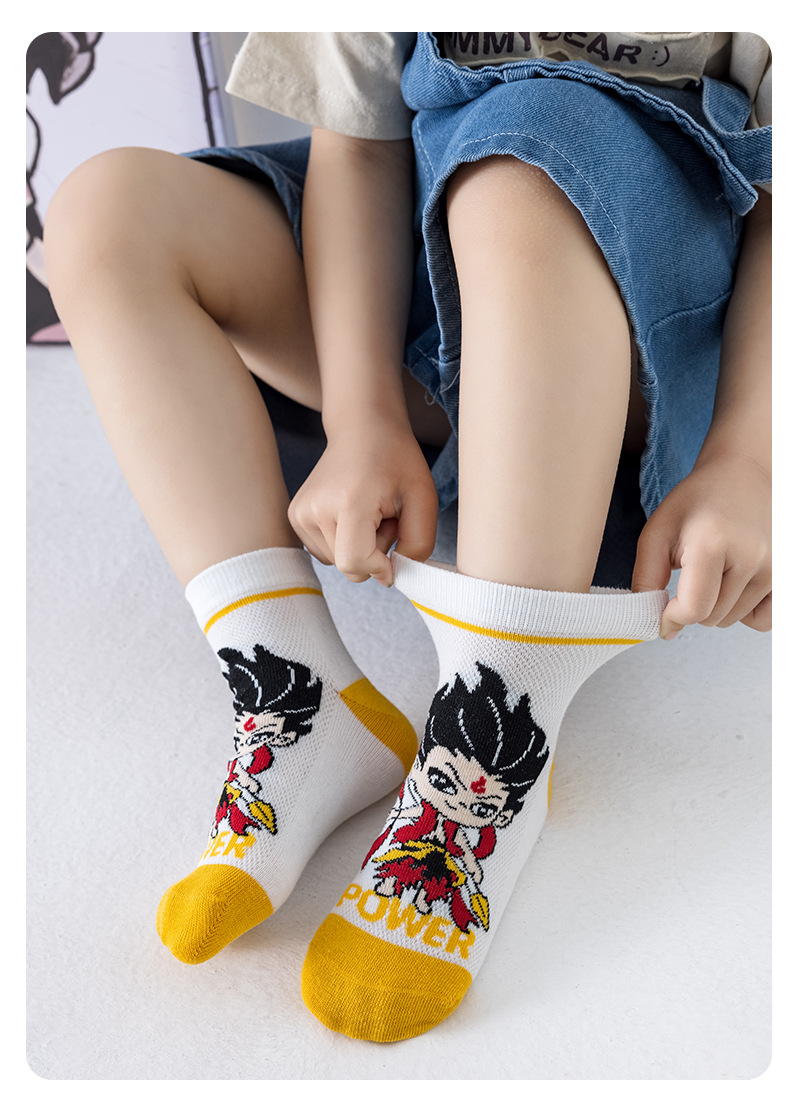어린이 양말 봄과 여름 얇은 소녀 중 큰 어린이 유행 양말 소년 메쉬 네자 통기성 만화 여름 미드 튜브 양말