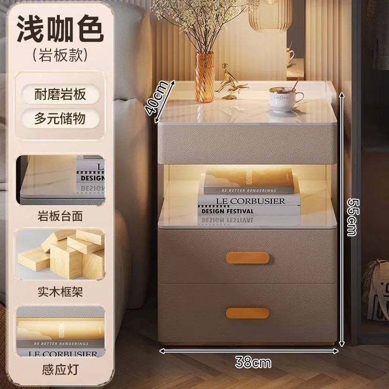 단단한 나무 스마트 침대 테이블 간단한 충전 현대 빛 럭셔리 다기능 높은 수준의 가정용 침실 바위 보드 침대 옆 캐비닛