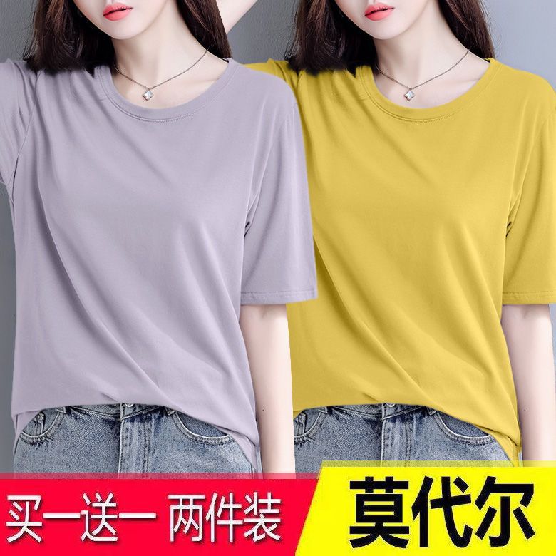 싱글/투피스 모달 반팔 티셔츠 여성용 여름 새 라운드 넥 티셔츠 느슨한 플러스 사이즈 슬리밍 솔리드 컬러 탑스토어 가기