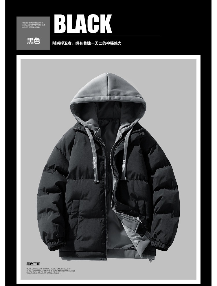 코튼 패딩 코트 남성 코트 가을과 겨울 후드 가짜 2 피스 두꺼운 따뜻한면 패딩 코트 애호가 느슨한 겨울 코트스토어 가기