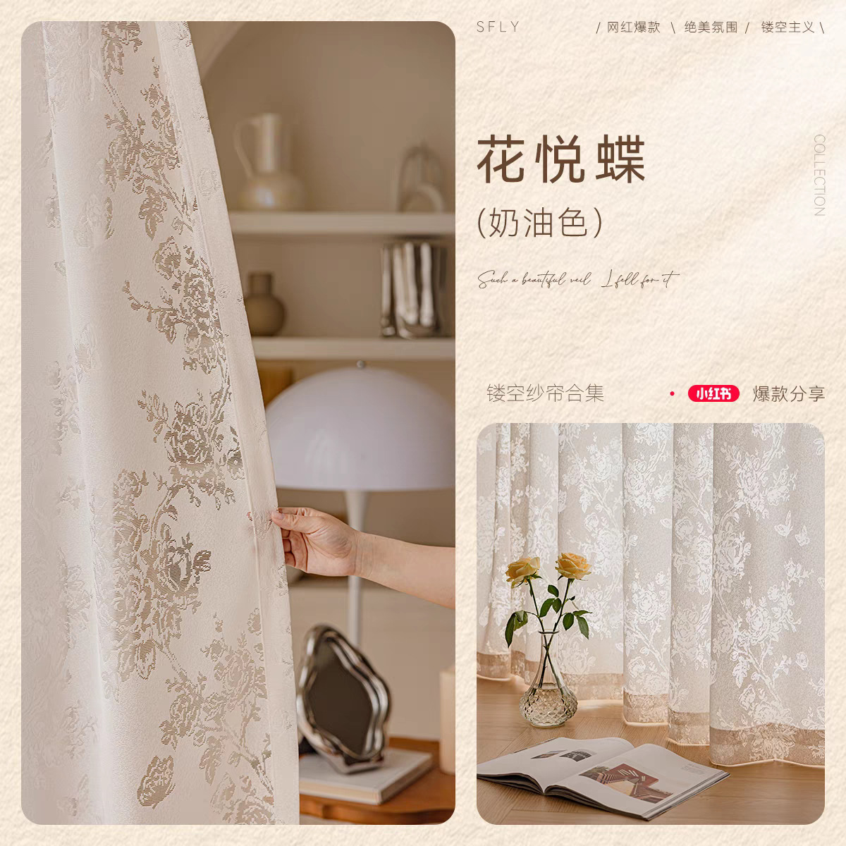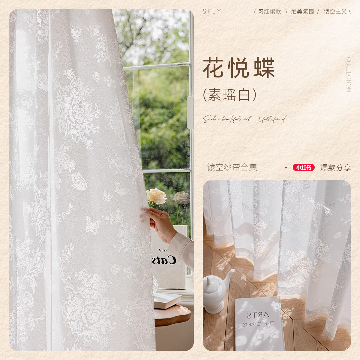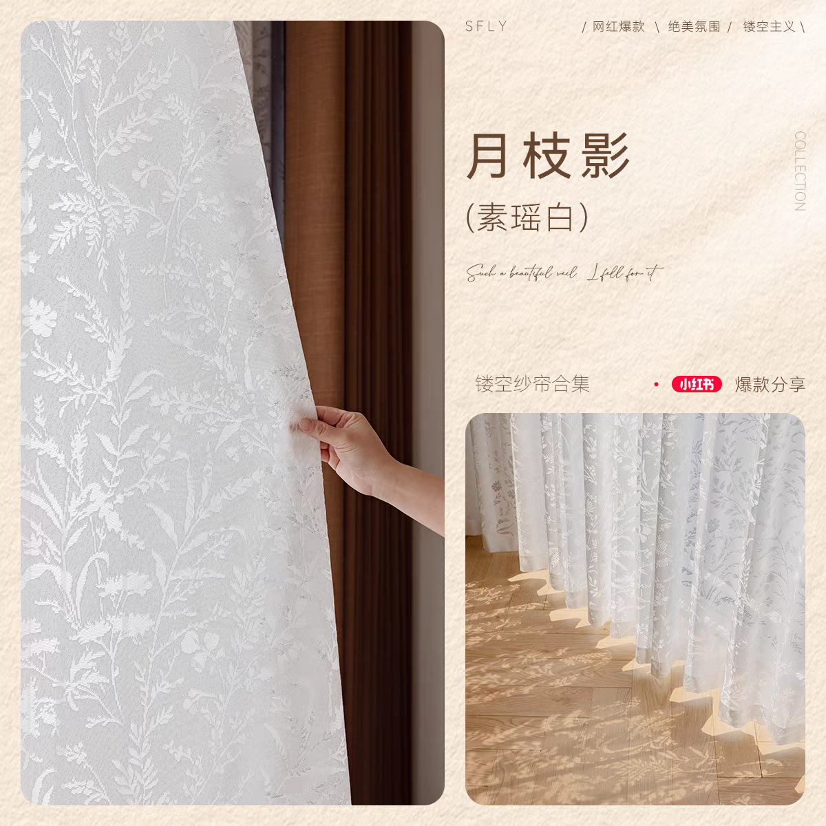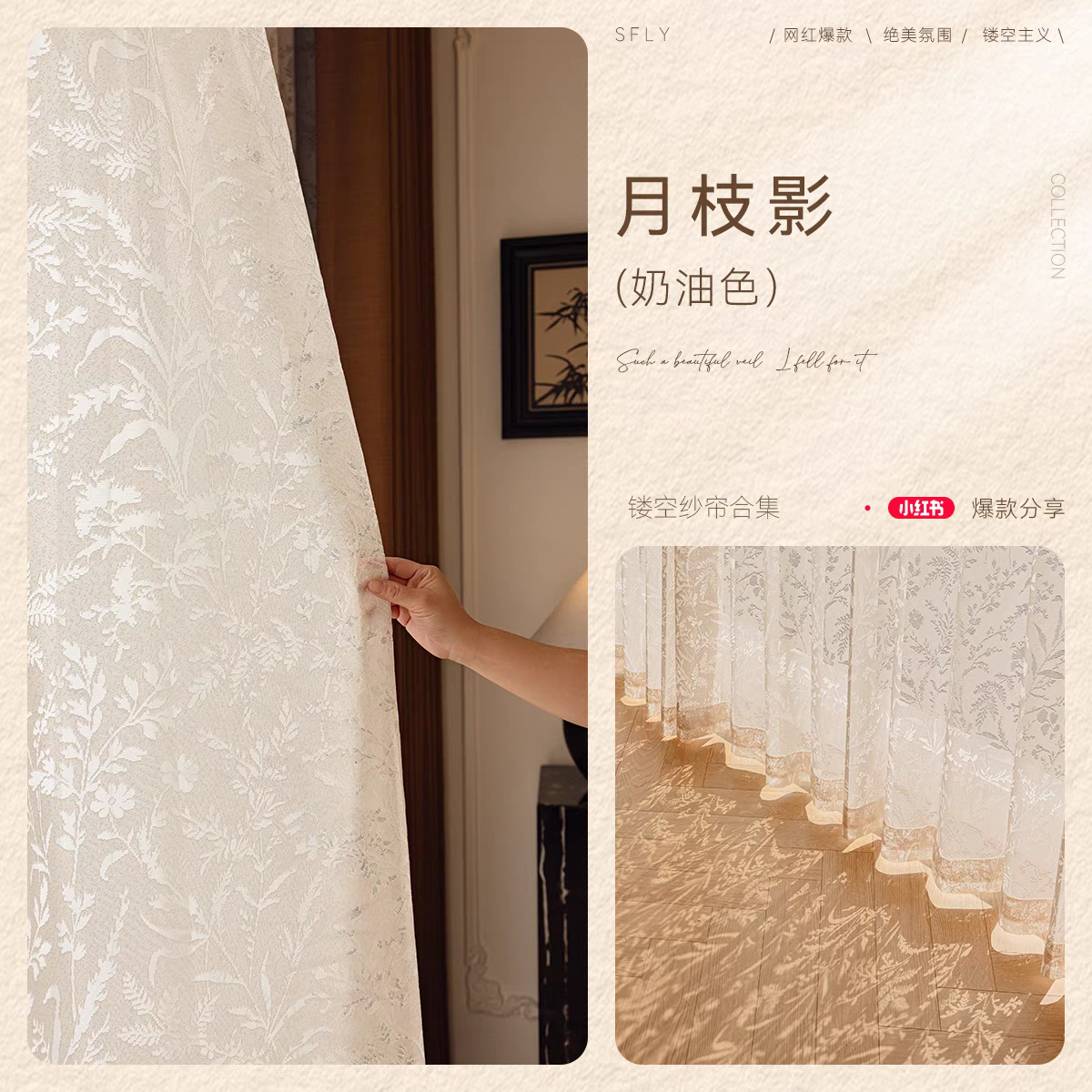 프랑스 낭만적 인 중공 거즈 커튼 투명한 구불 구불 한 달 지점 그림자 침실 발코니 거실 빛 고급 햇빛스토어 가기
